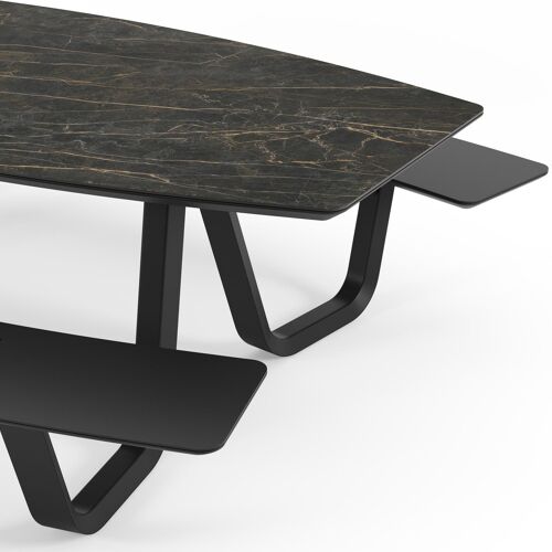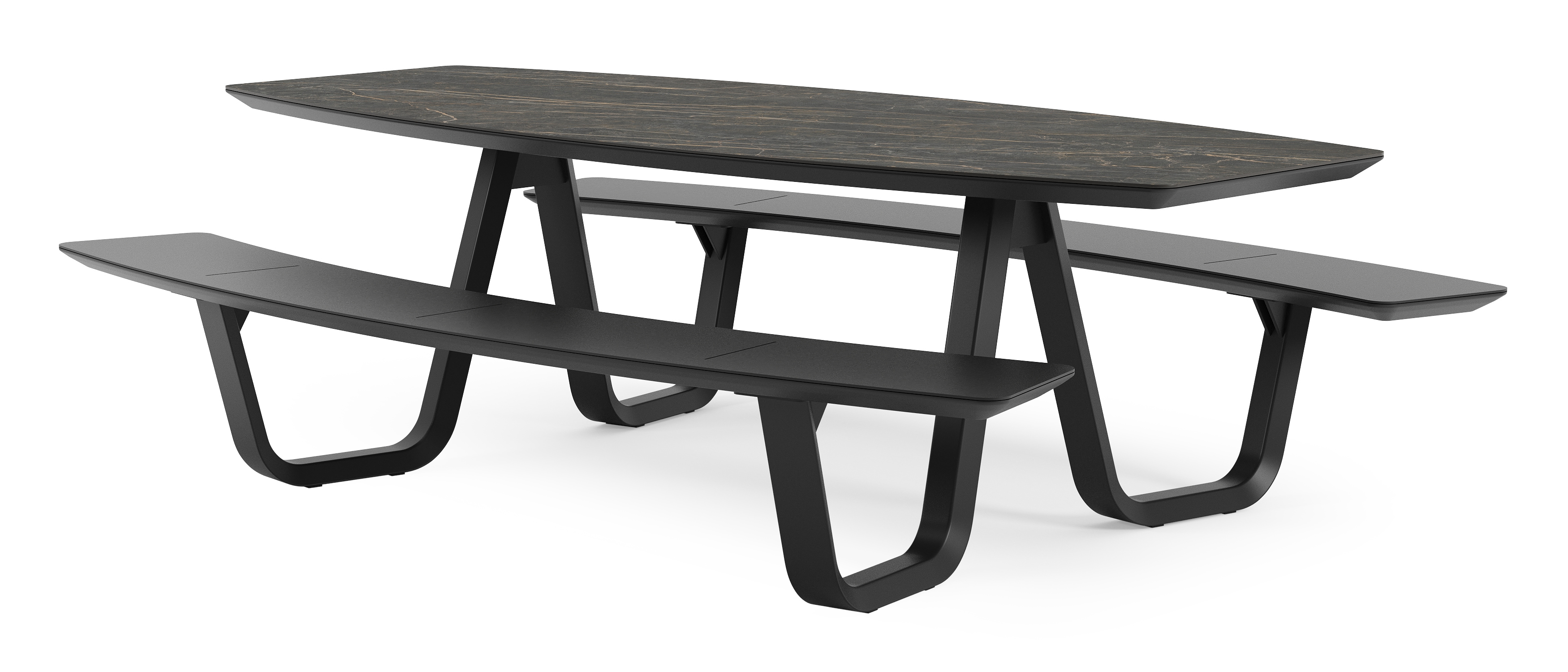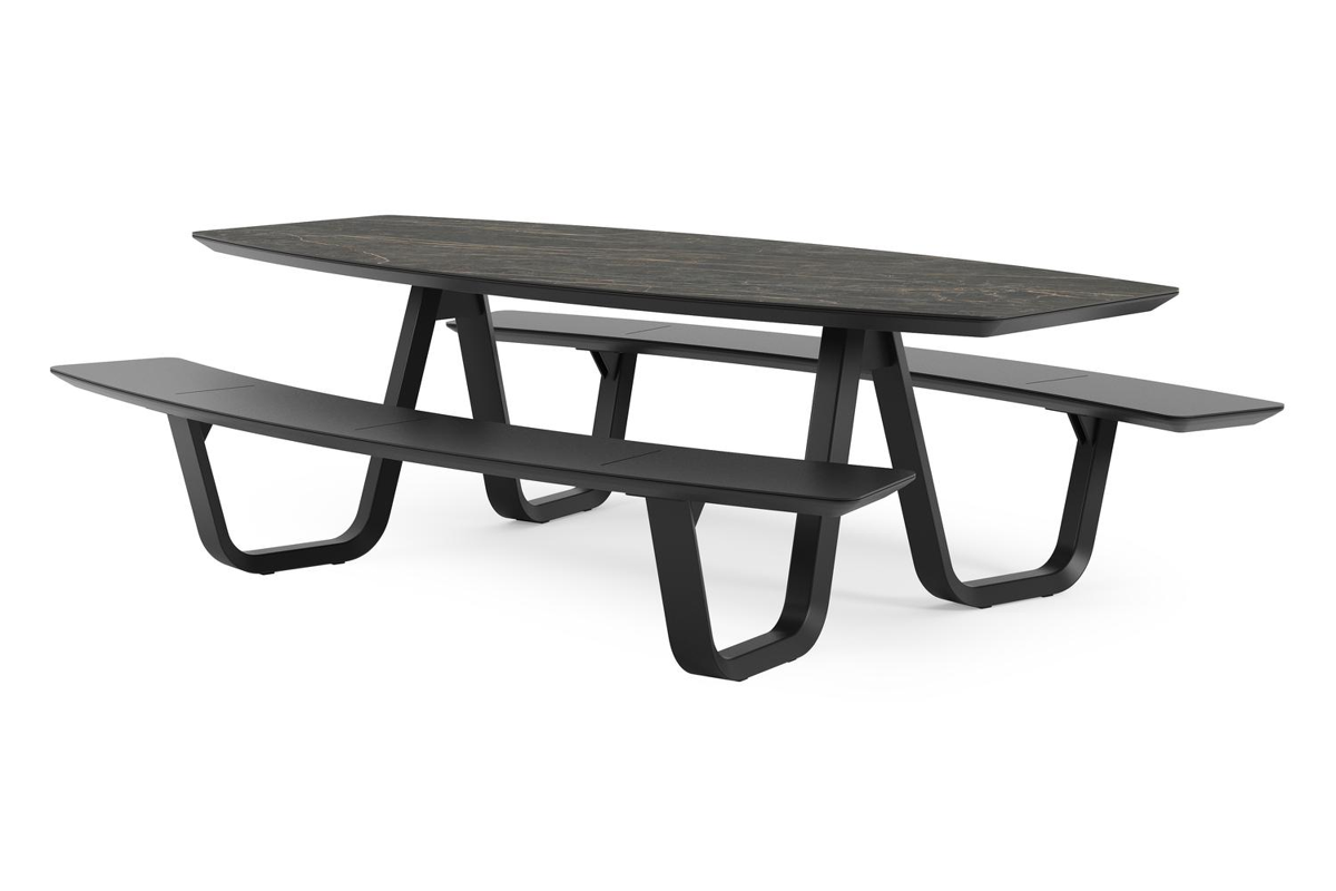 De Forno picknicktafel kenmerkt zich door zijn afgeronde vormen. Zowel het tafelblad als de banken hebben een bootvorm. De gebogen bank is makkelijk toegankelijk en voorziet plaats voor een groot gezelschap.