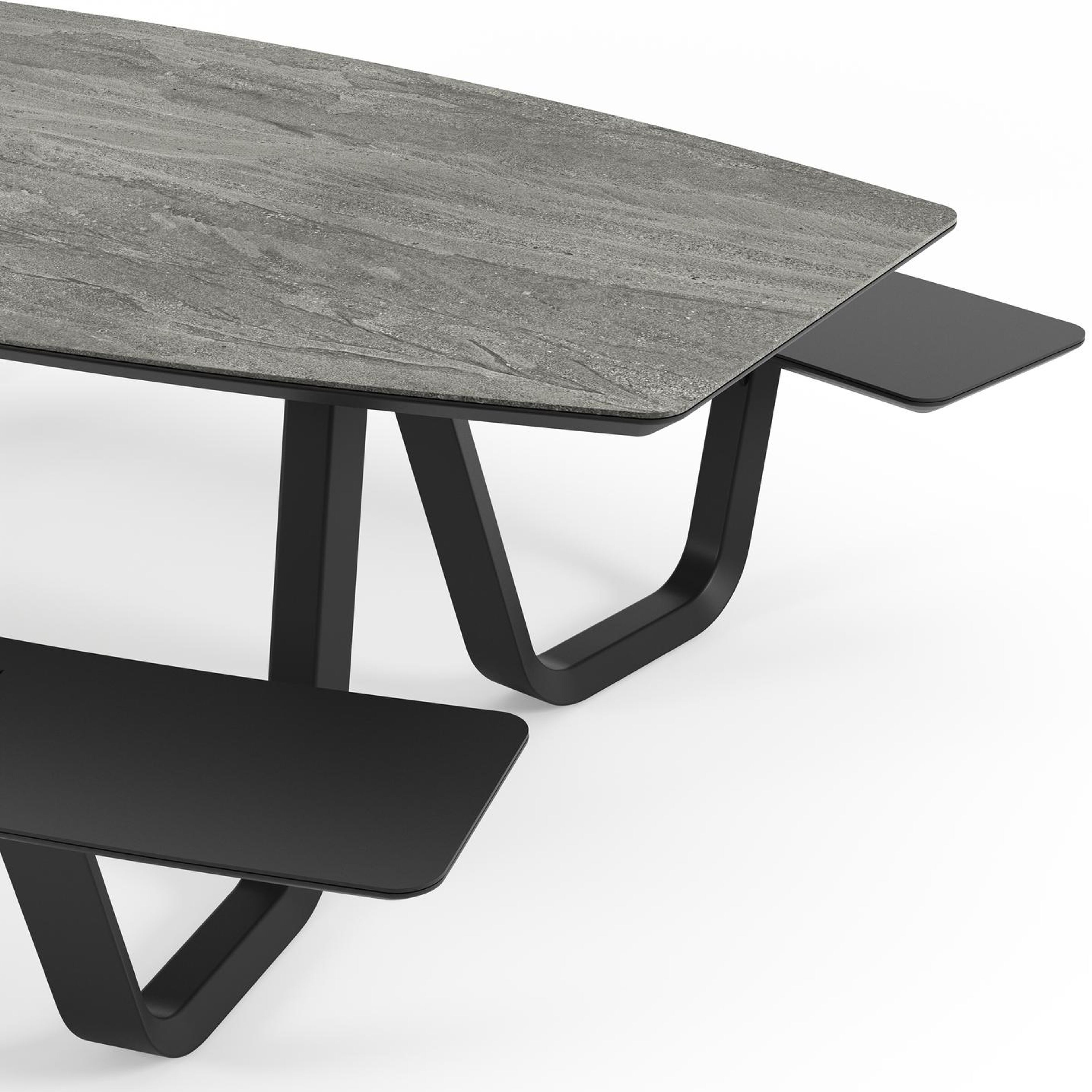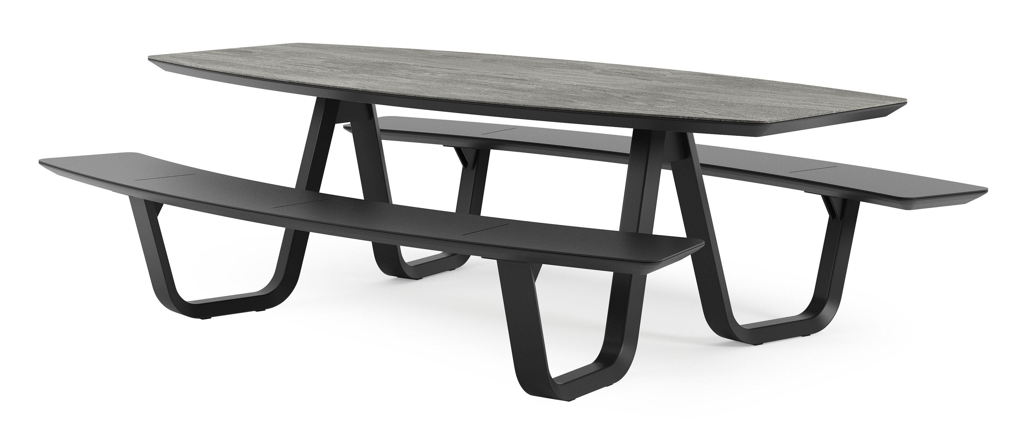 Forno picknicktafel bootvorm in zwart aluminium en volkeramiek aspen grey tafelblad - L 240 x B 181 x H 72 cm | Exterioo tuinmeubelen
