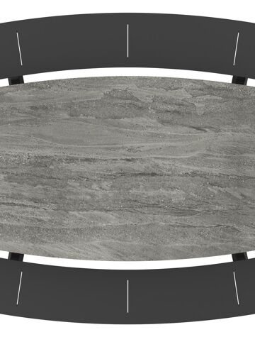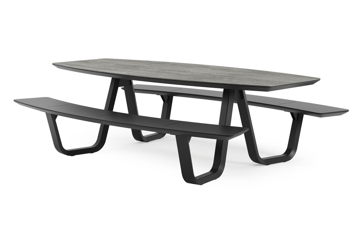 Forno picknicktafel bootvorm in zwart aluminium en volkeramiek aspen grey tafelblad - L 240 x B 181 x H 72 cm | Exterioo