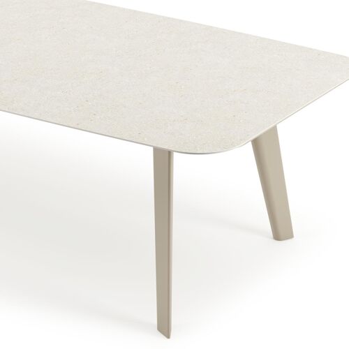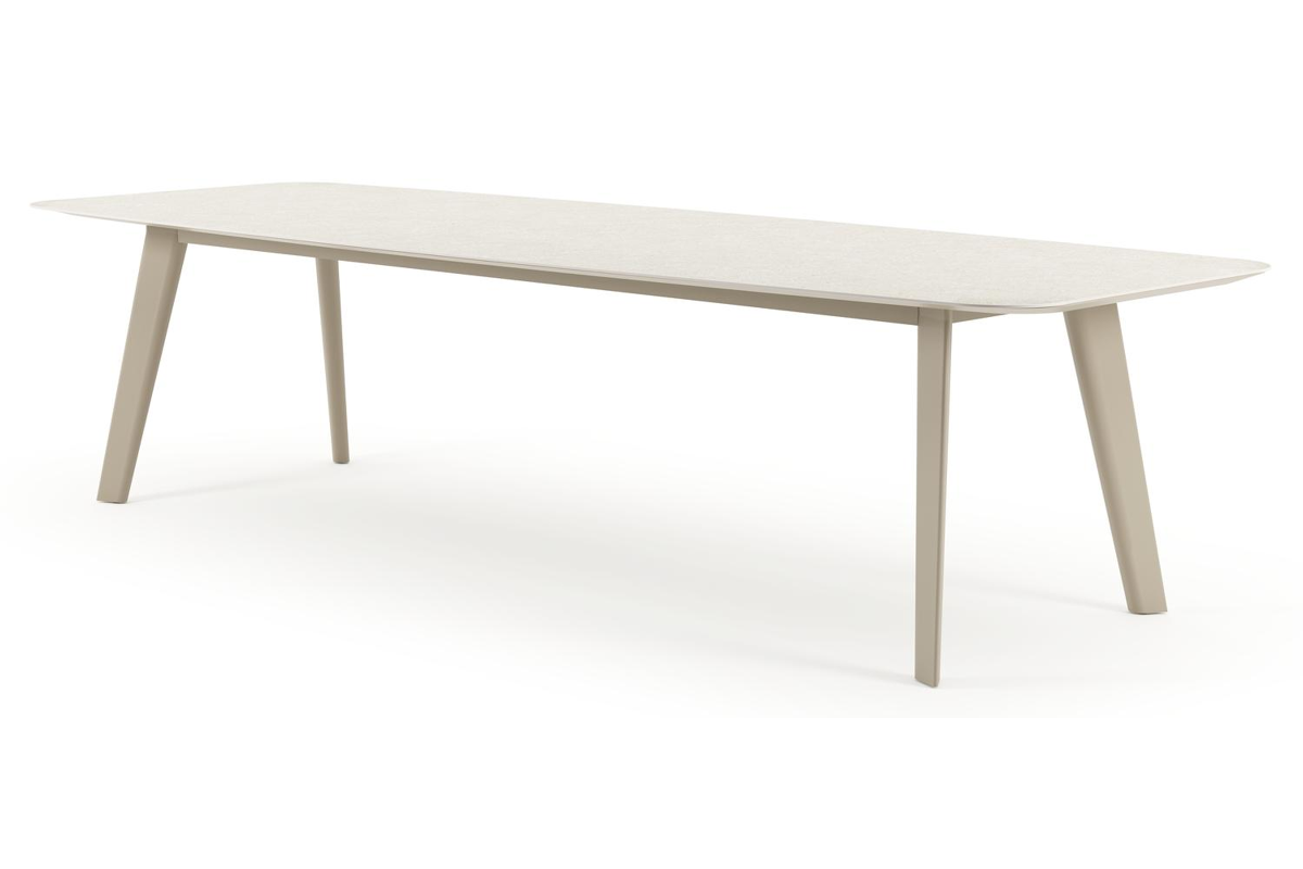 Lacirma tuintafel bootvorm in beige aluminium en volkeramiek Shilin L 315 x B 115 x H 73 cm | Exterioo