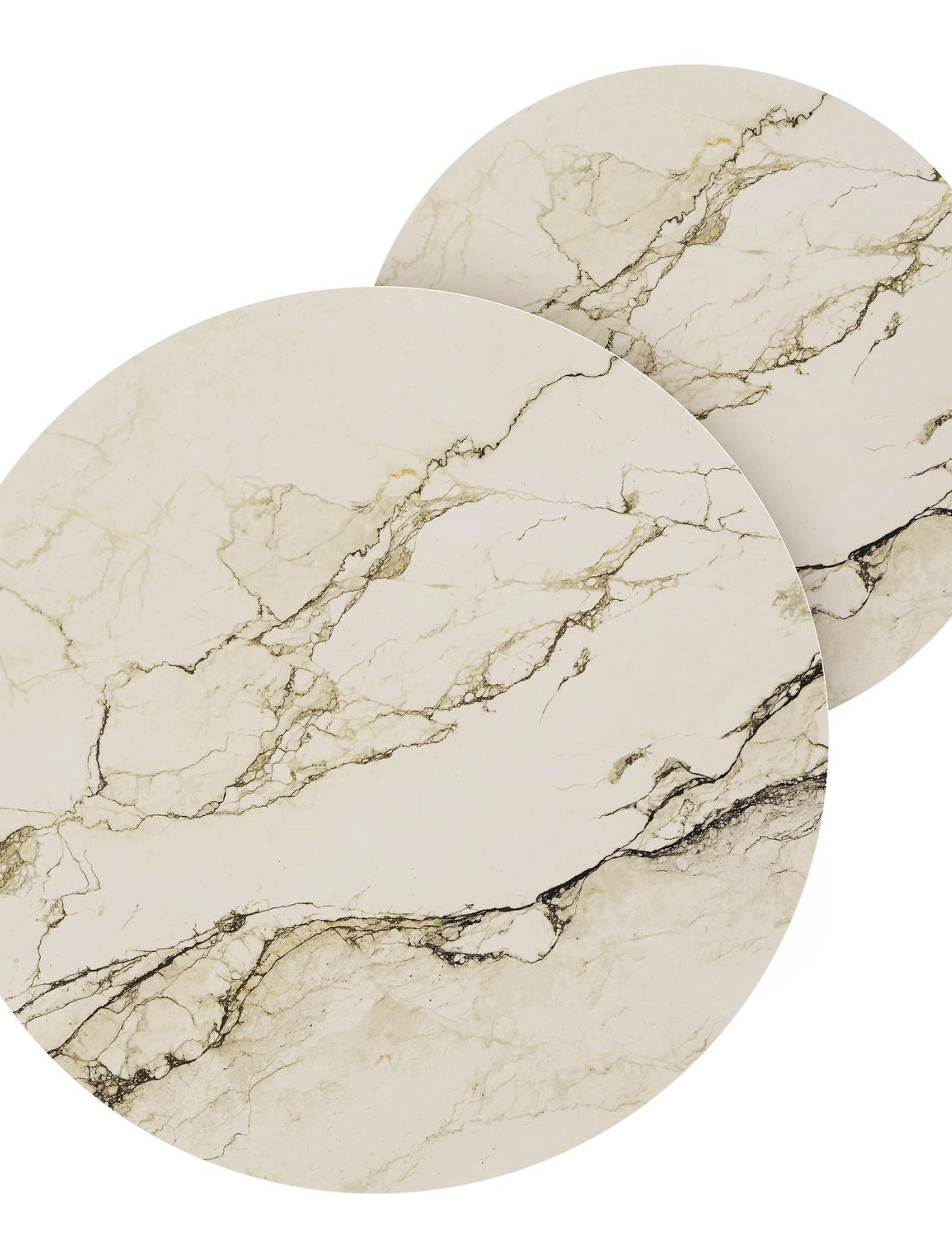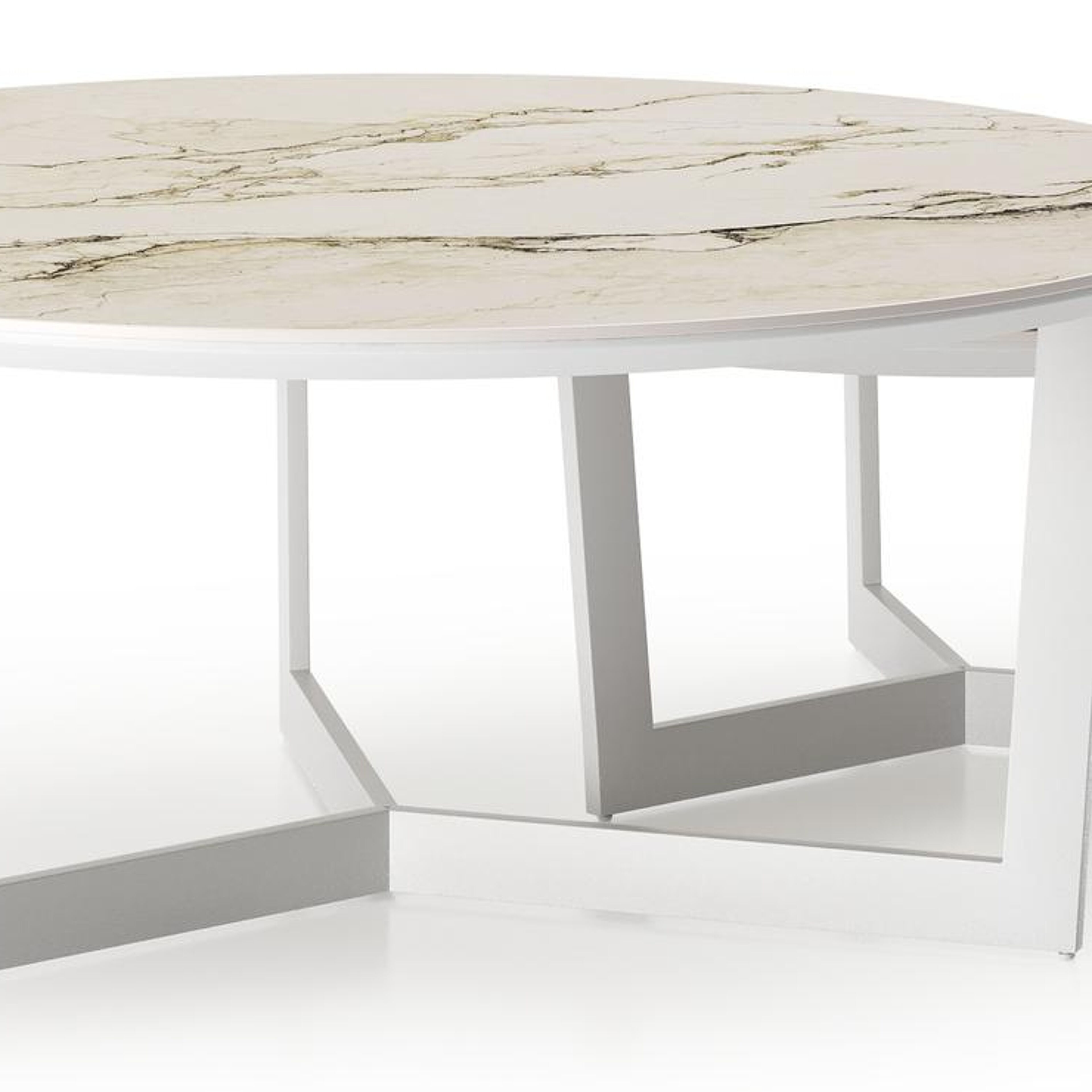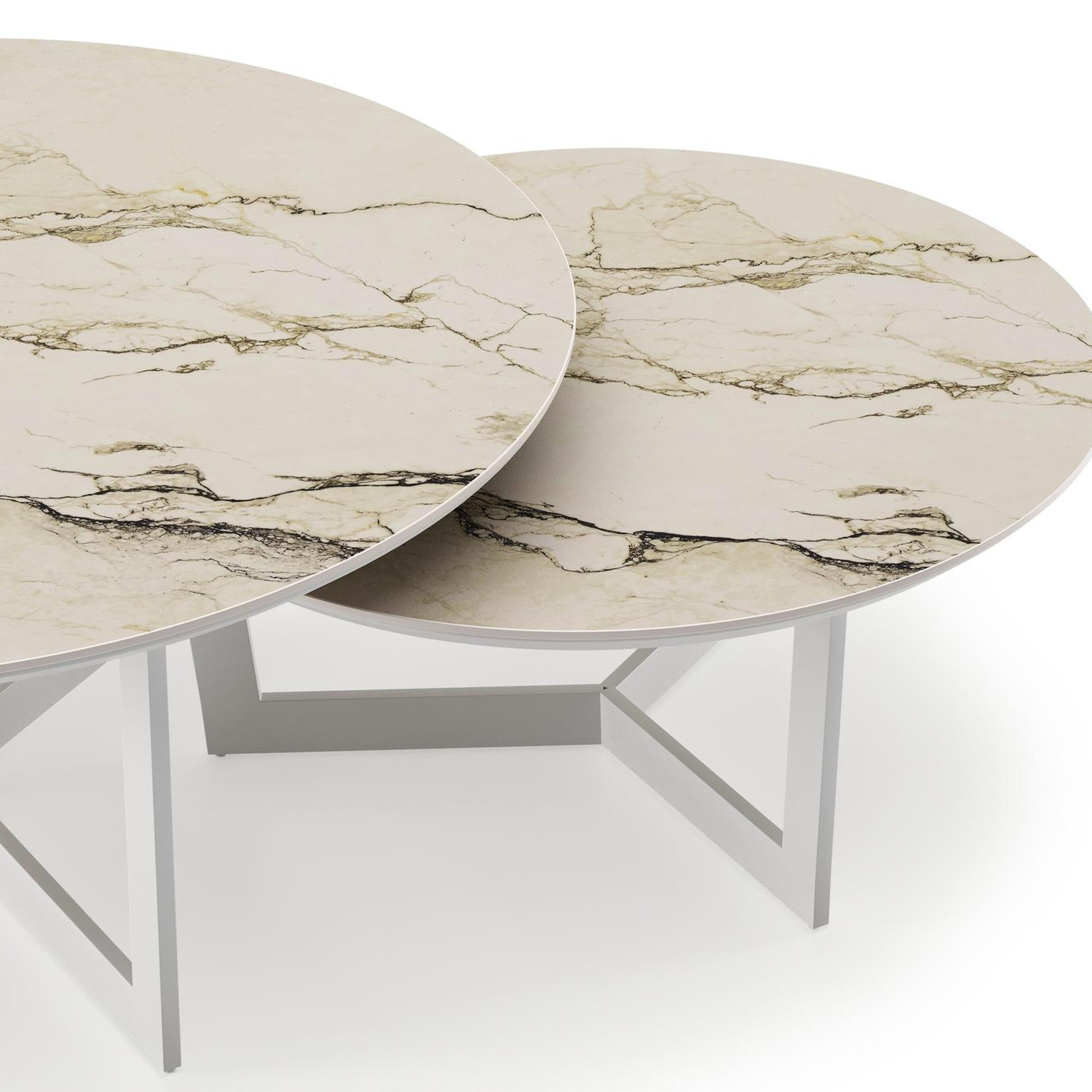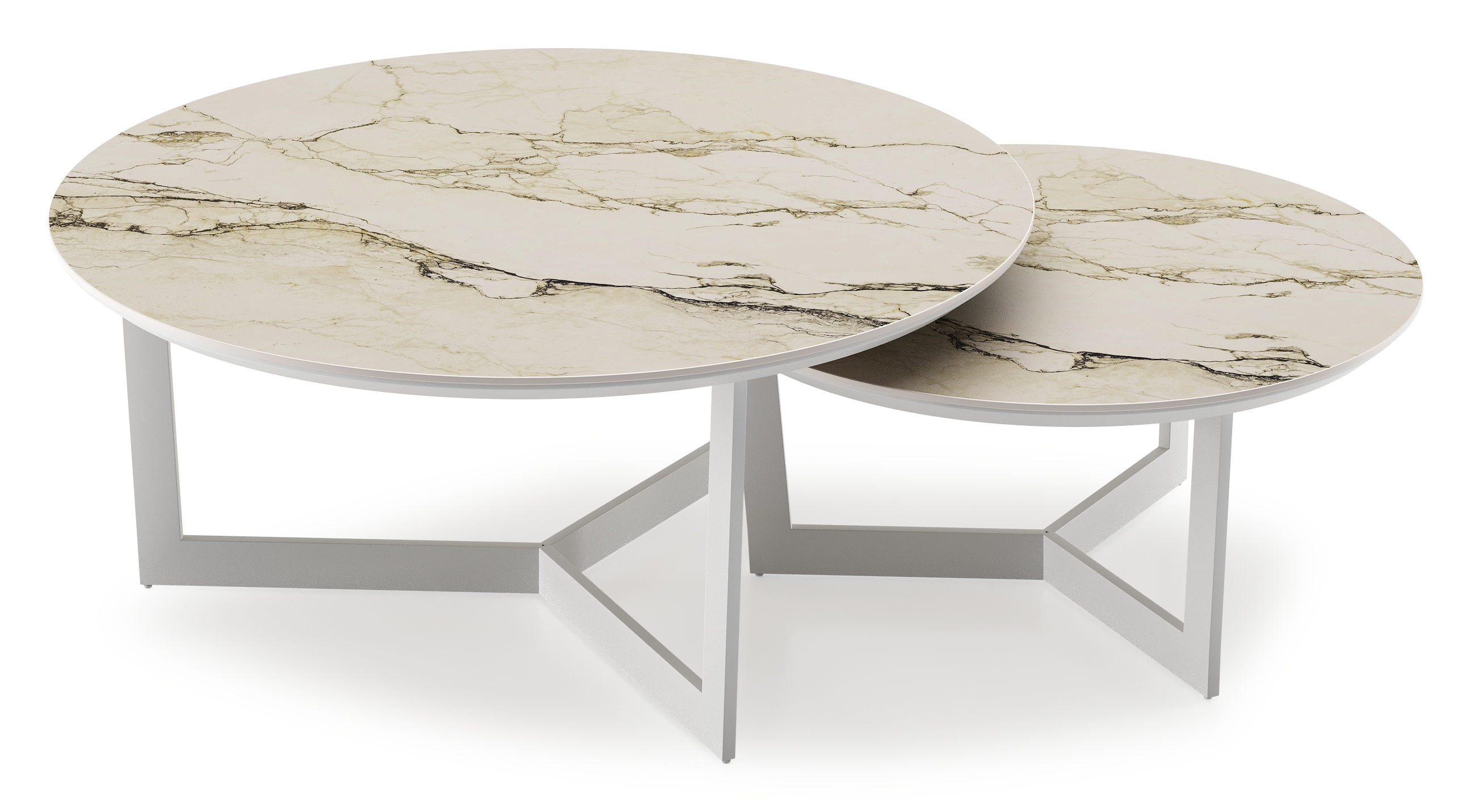 Lacrima loungetafels in wit aluminium en colorado dunes volkeramiek - Dia. 85/65 x H 35/30 cm | Exterioo tuinmeubelen