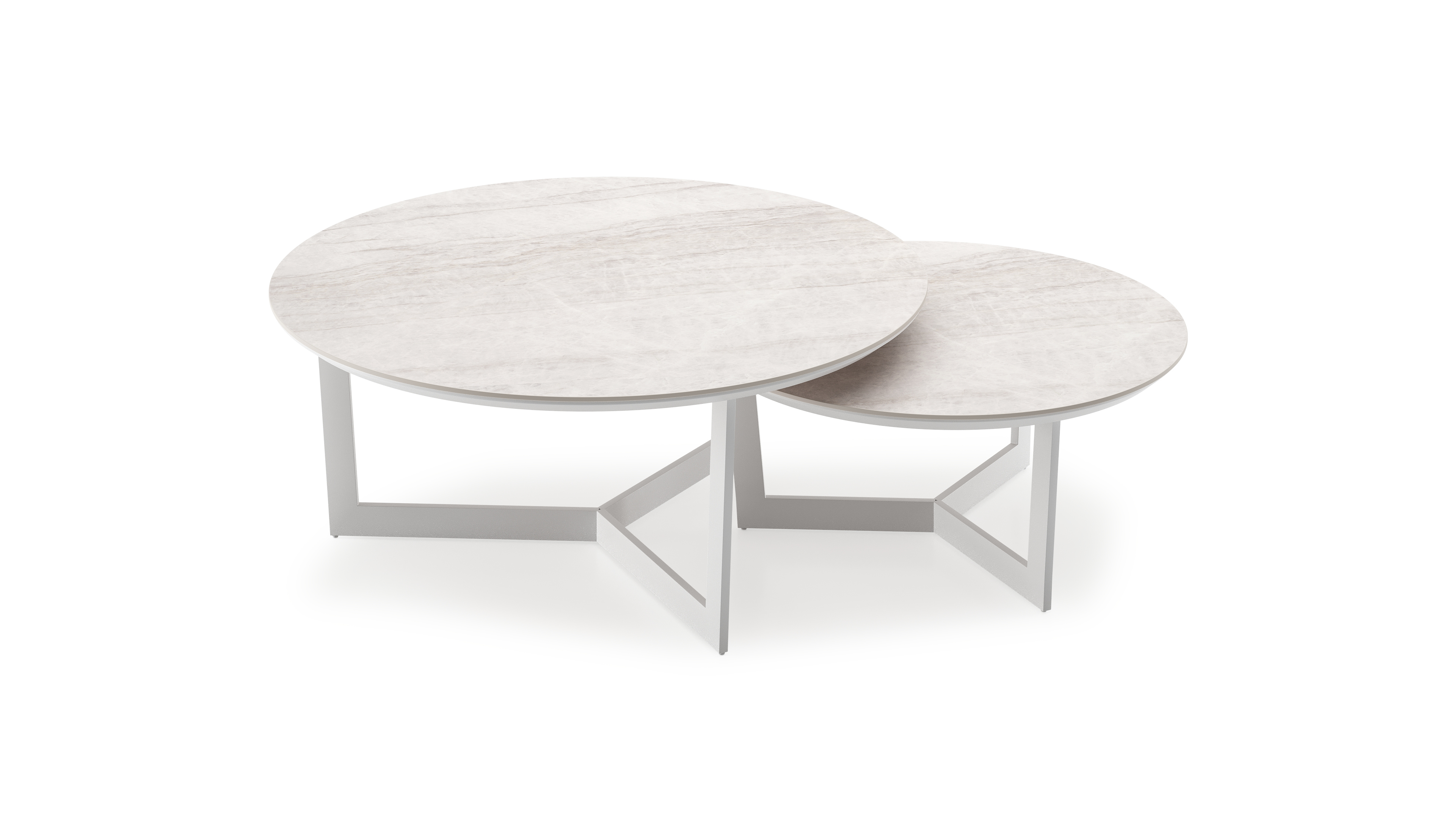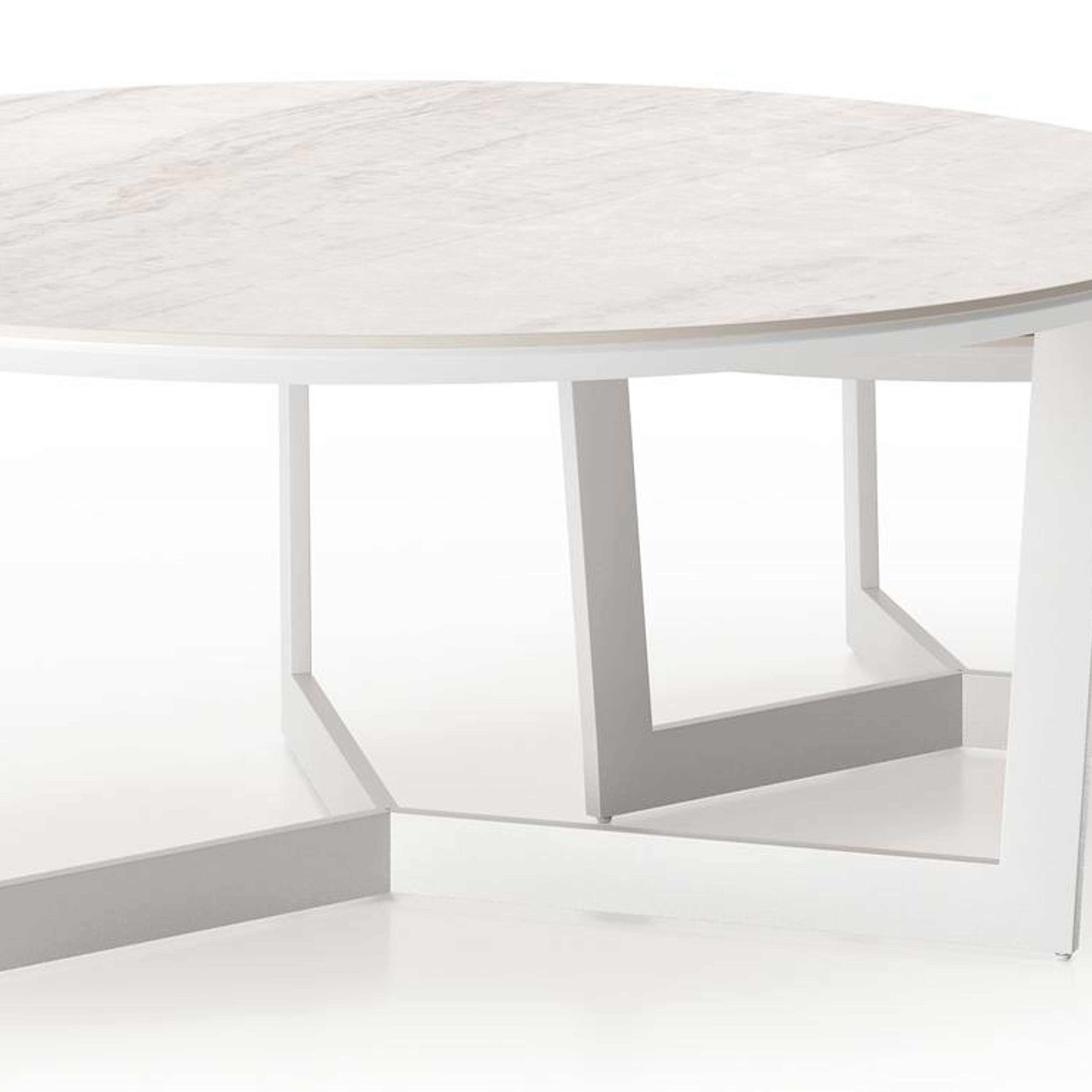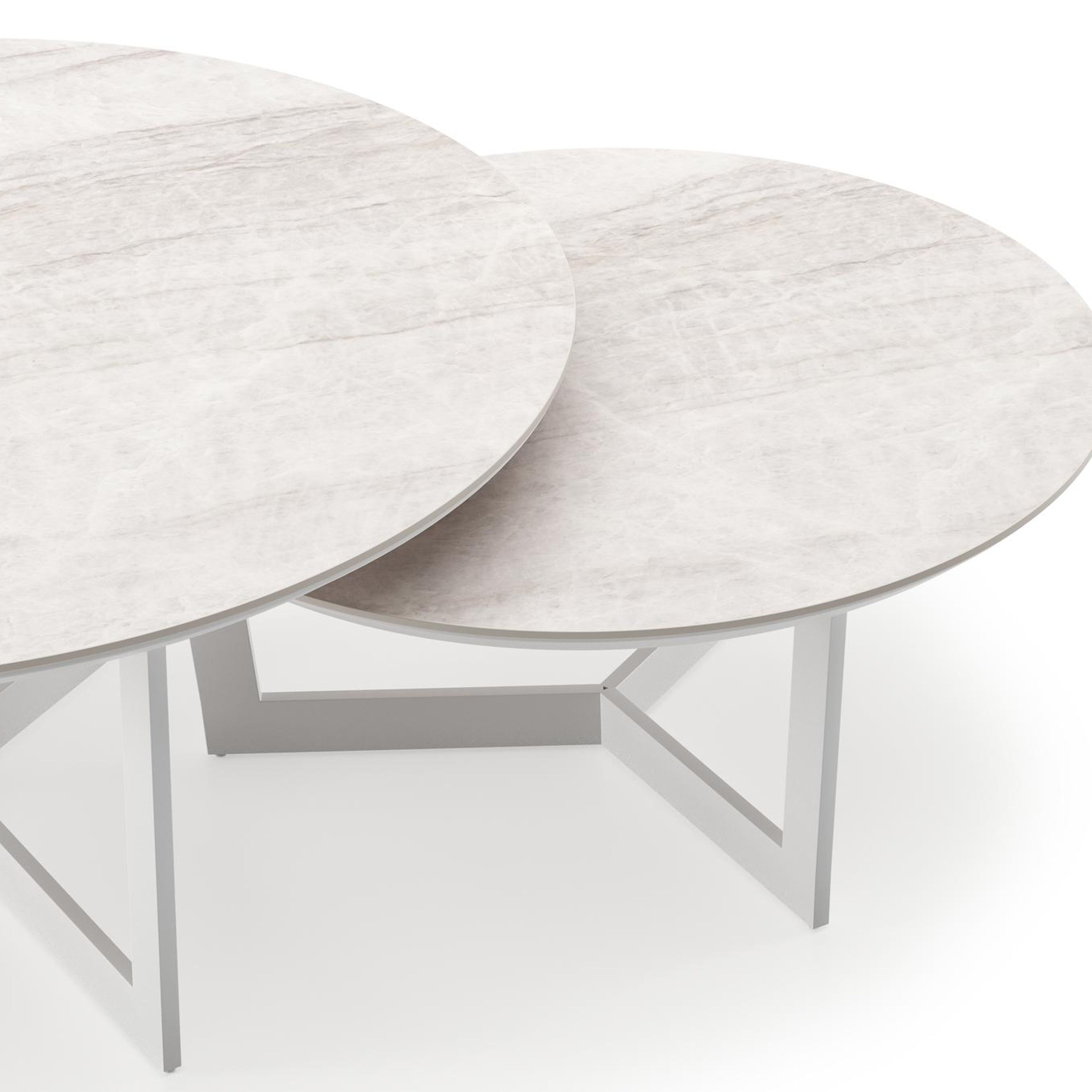 Lacrima set van 2 loungetafels rond in wit aluminium en volkeramiek Taj Mahal - Dia. 85 x H 35 cm | Exterioo tuinmeubelen