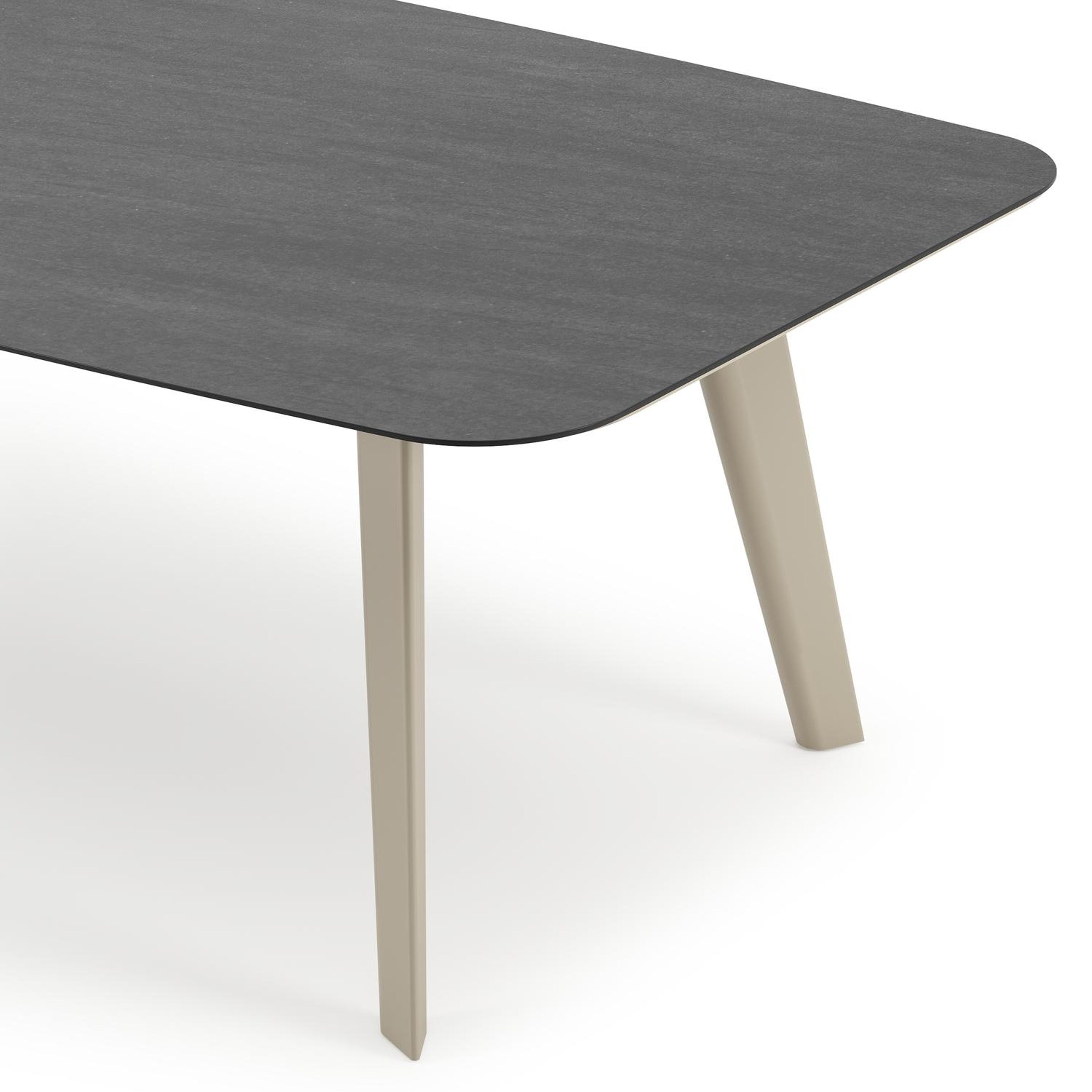Lacrima tuintafel bootvorm in beige aluminium en volkeramiek Basalt Black - L 255 x B 115 x H 74 cm | Exterioo tuinmeubelen