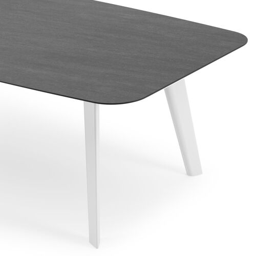 Lacrima tuintafel bootvorm in wit aluminium en volkeramiek Basalt Black - L 255 x B 115 x H 73 cm | Exterioo