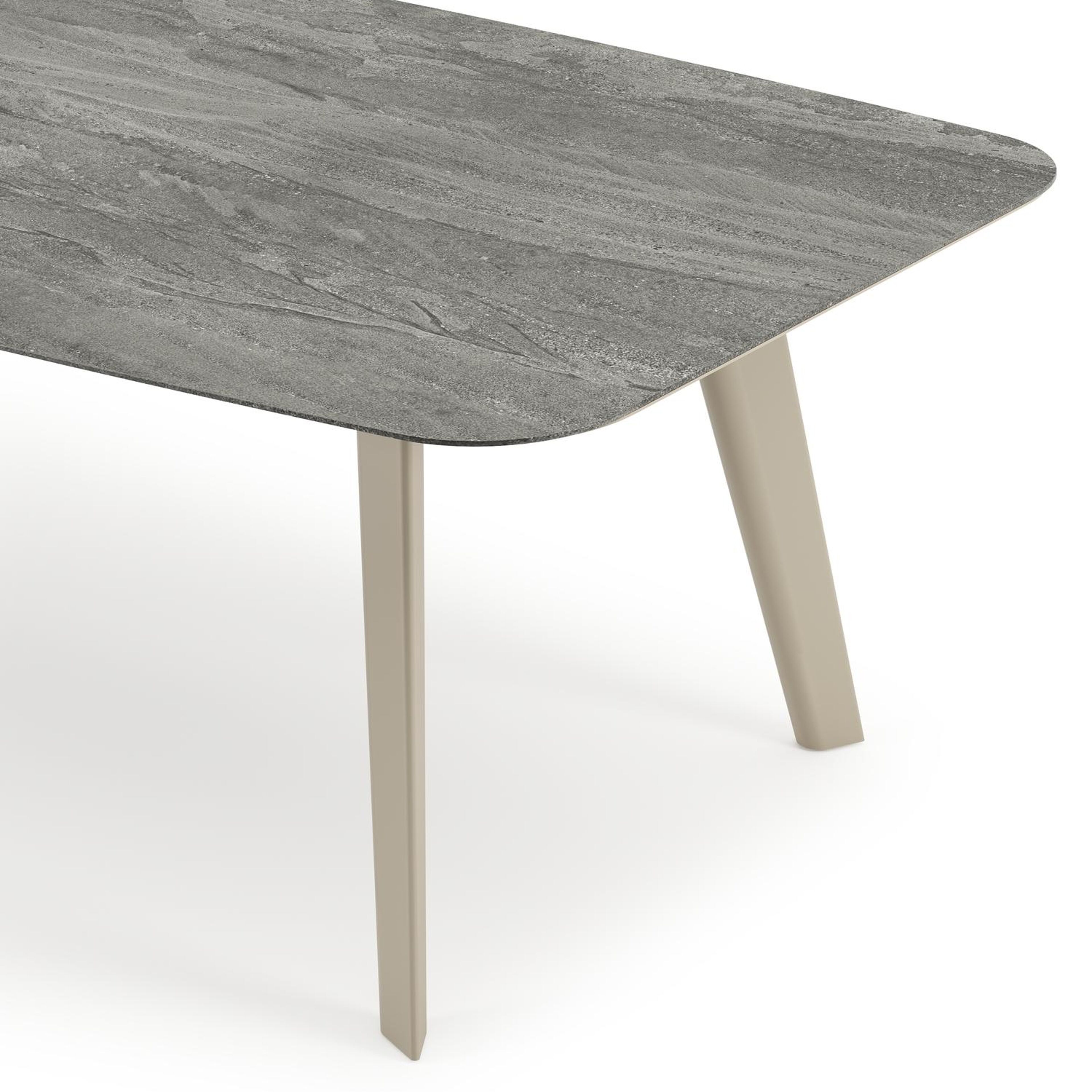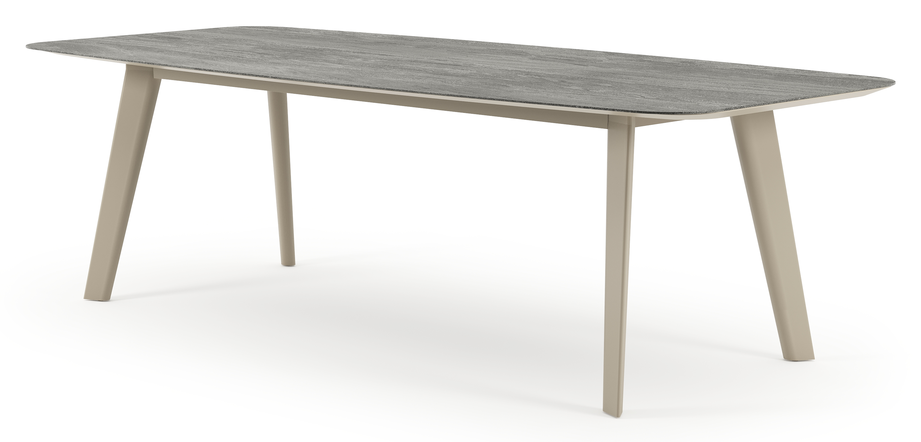 Lacrima tuintafel bootvorm in beige aluminium en volkeramiek Aspen Grey - L 255 x B 115 x H 74 cm | Exterioo tuinmeubelen