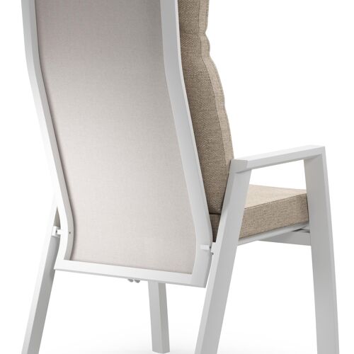 Leon tuinstoel in wit aluminium en beige textilene met kussen in Rustic Weather+ Softtouch | Exterioo
