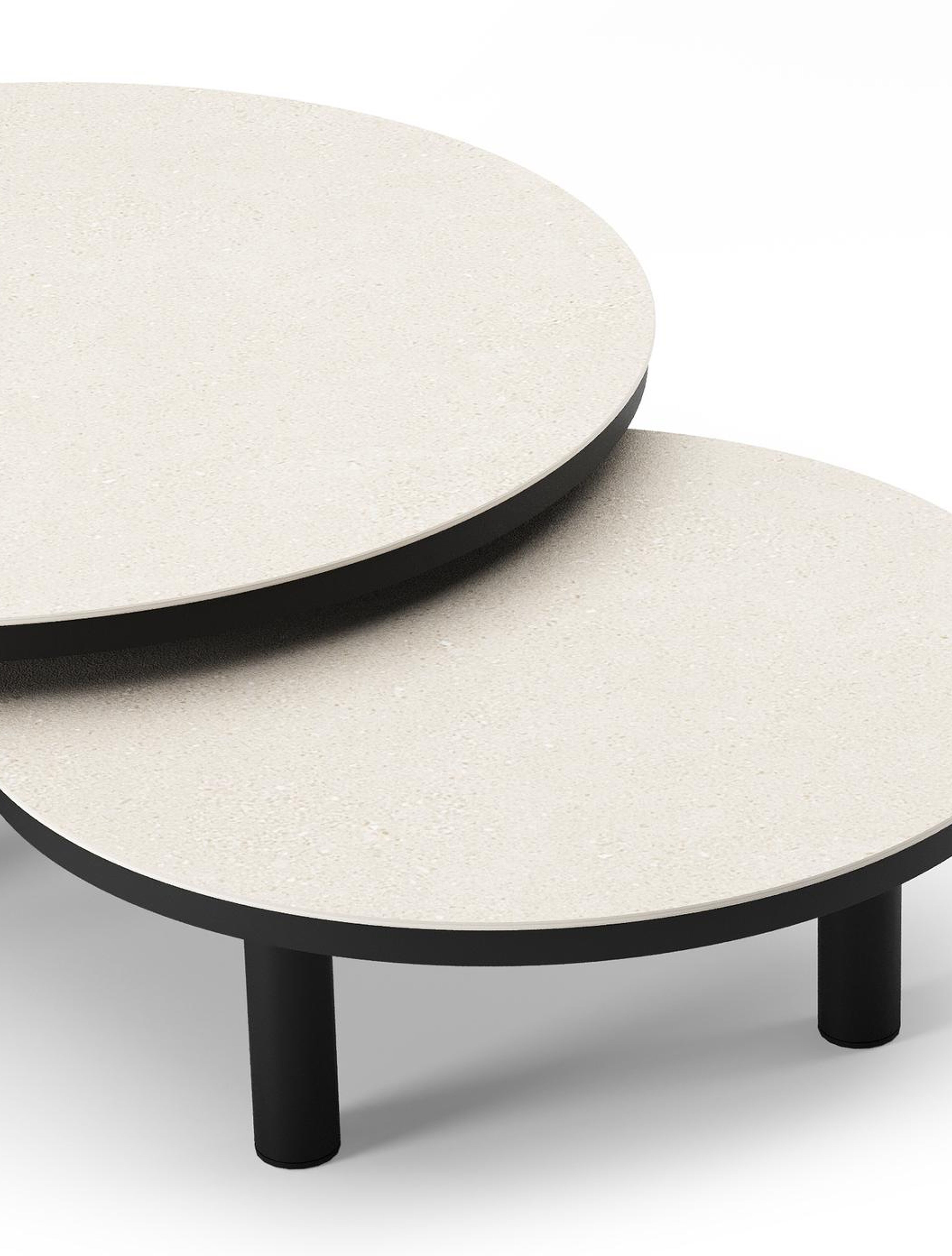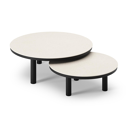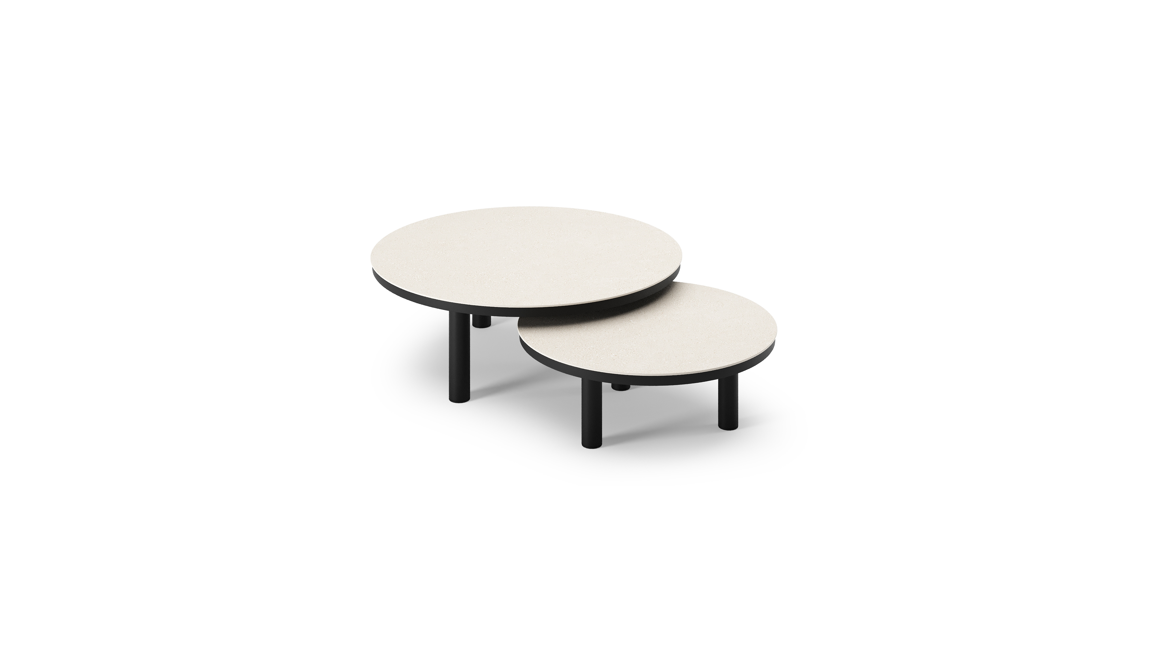 De Lindo loungetafels vormen met hun rond ontwerp en cilindervormige pootjes de perfecte balans tussen modern design en subtiele vormen.