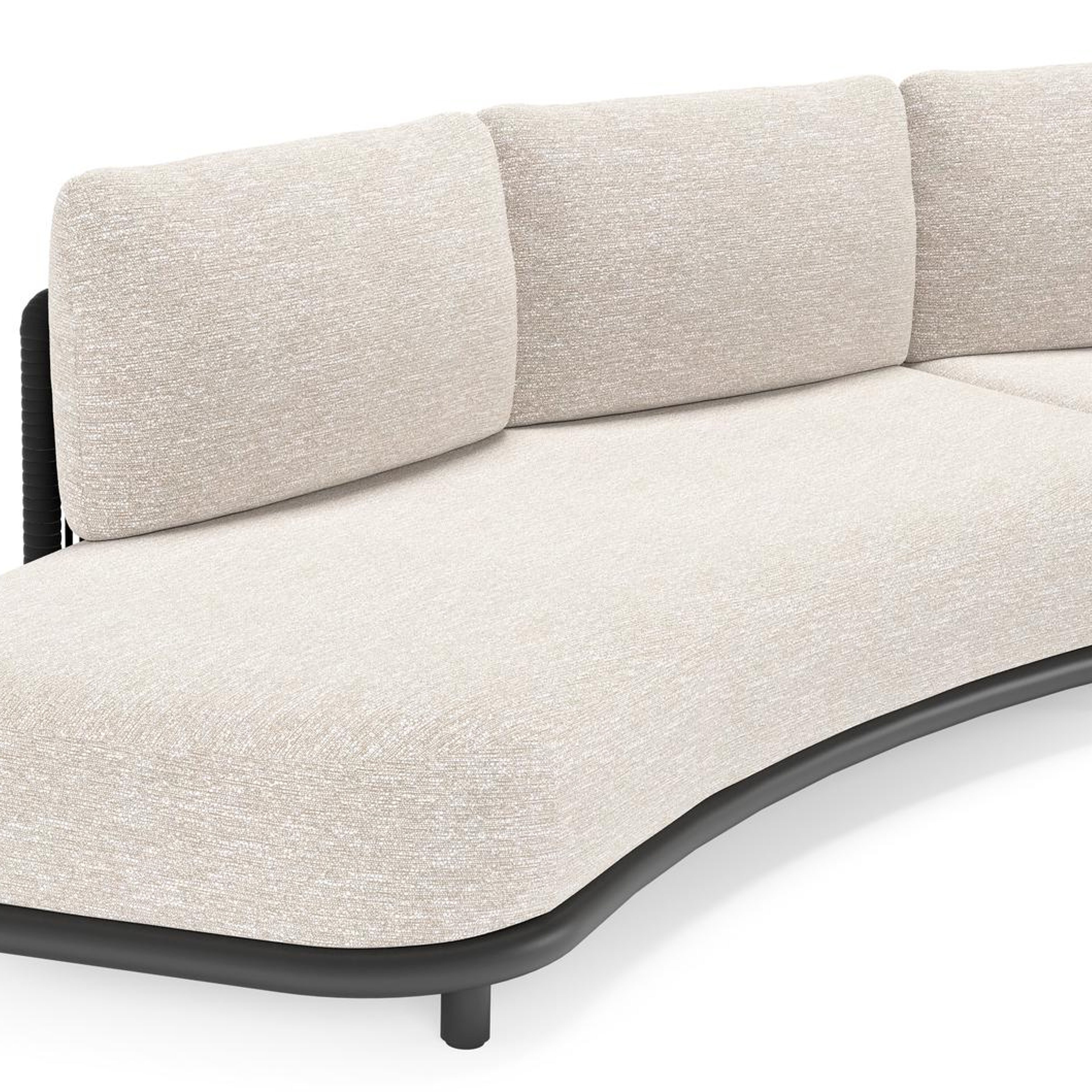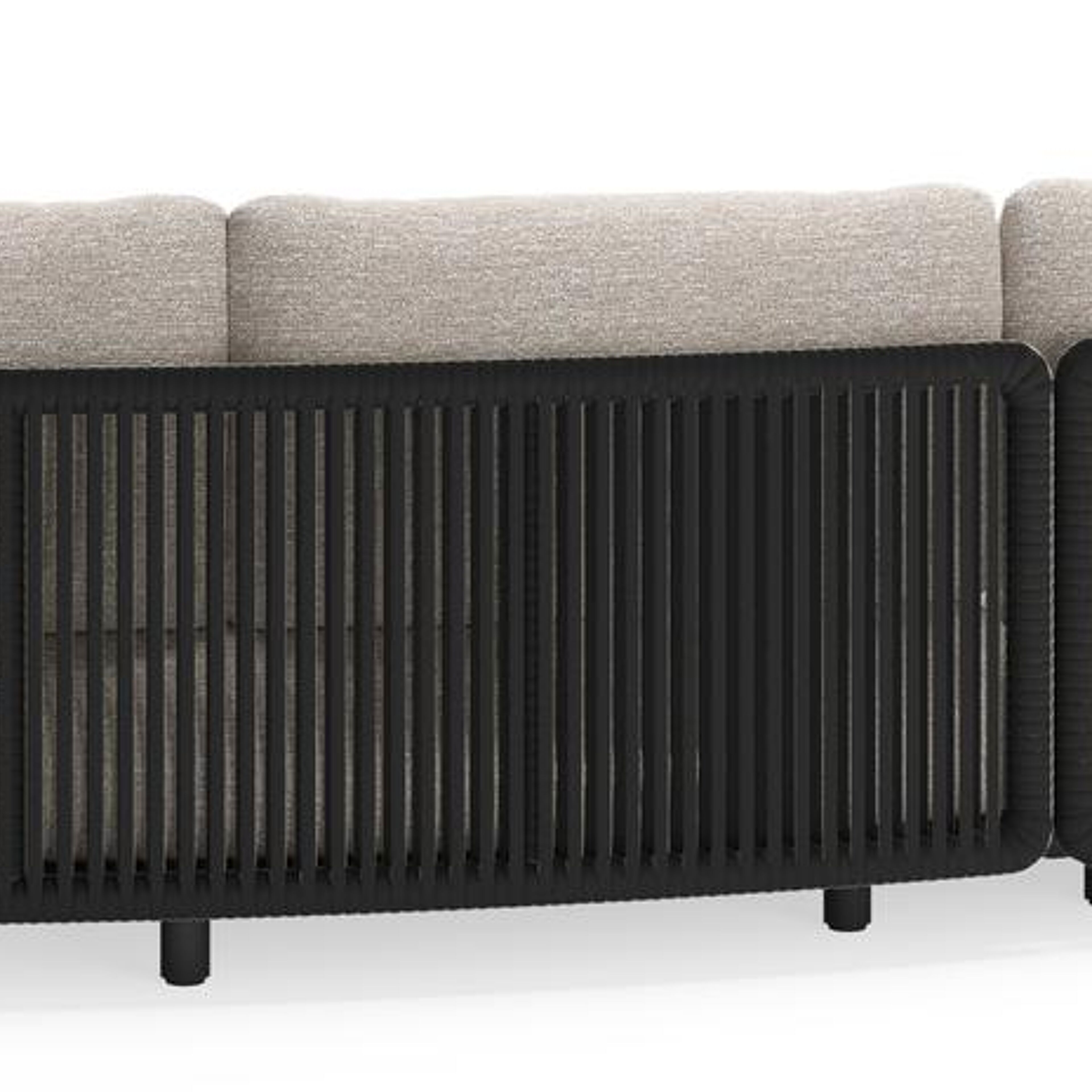 Lomano loungebank in zwart aluminium en beige verticaal geweven luxe vlakke rope met tundra sand all weather sunbrella® luxe kussen | Exterioo tuinmeubelen