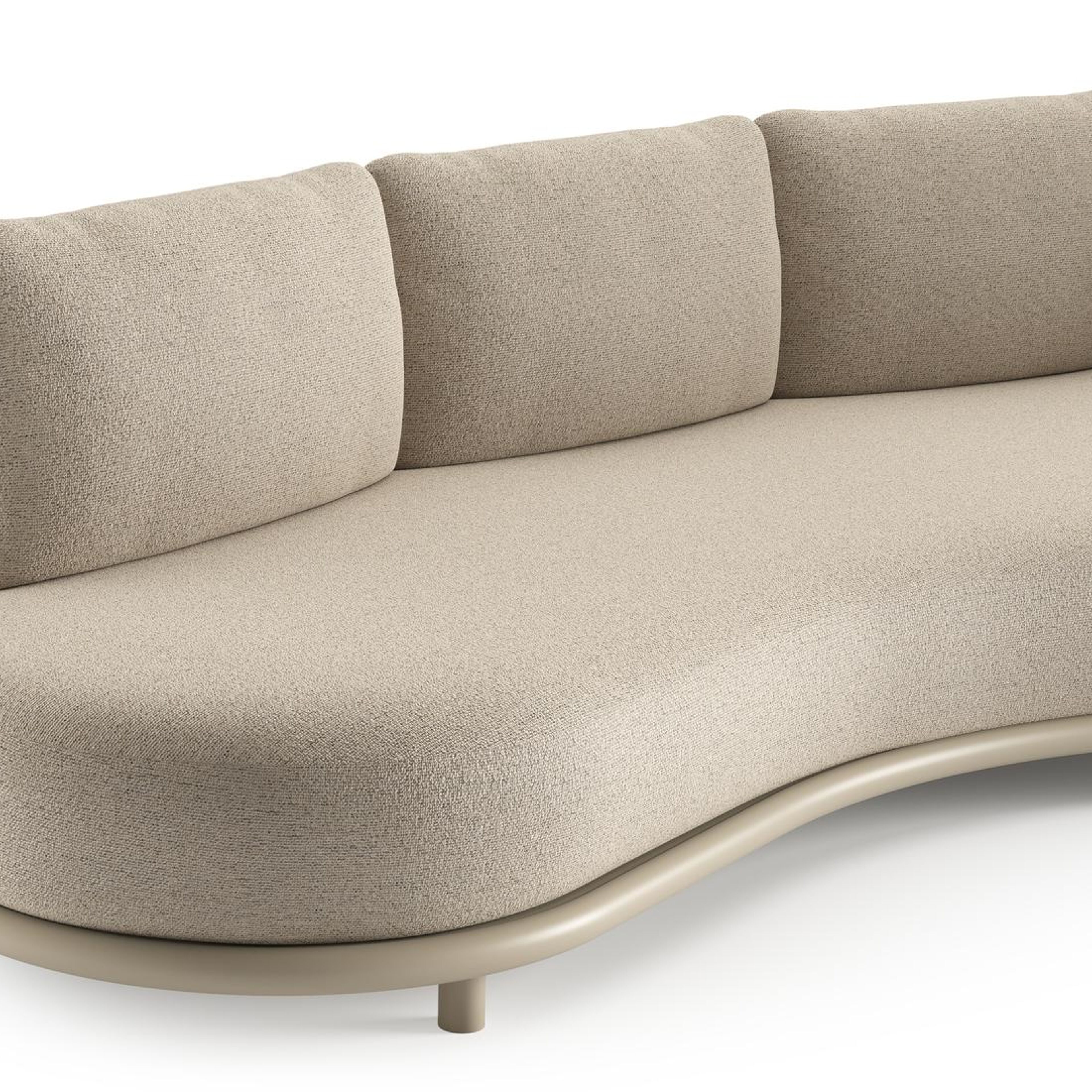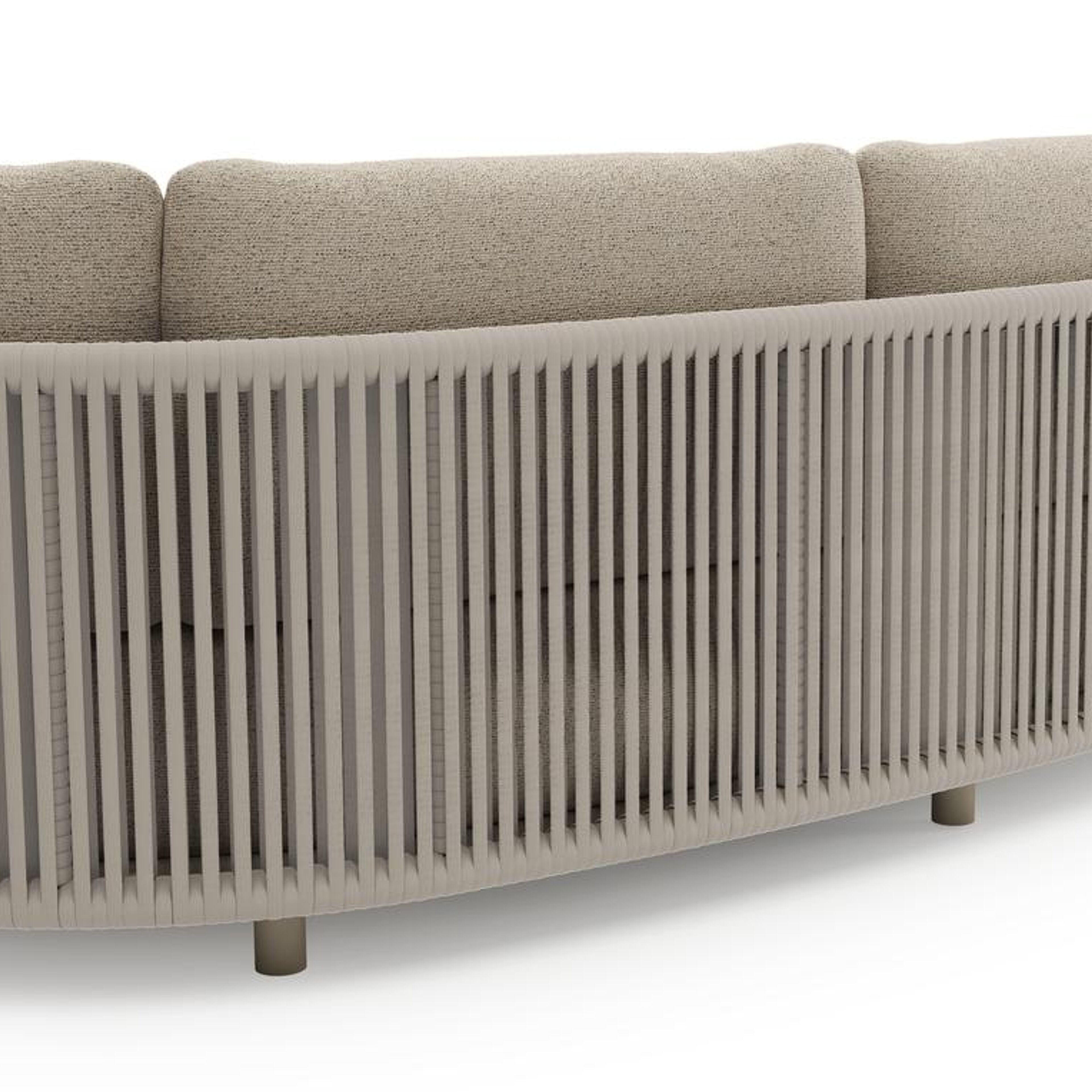 Lomano loungebank in beige aluminium en beige verticaal geweven luxe vlakke rope met marbella beige all weather cosytica kussen | Exterioo tuinmeubelen