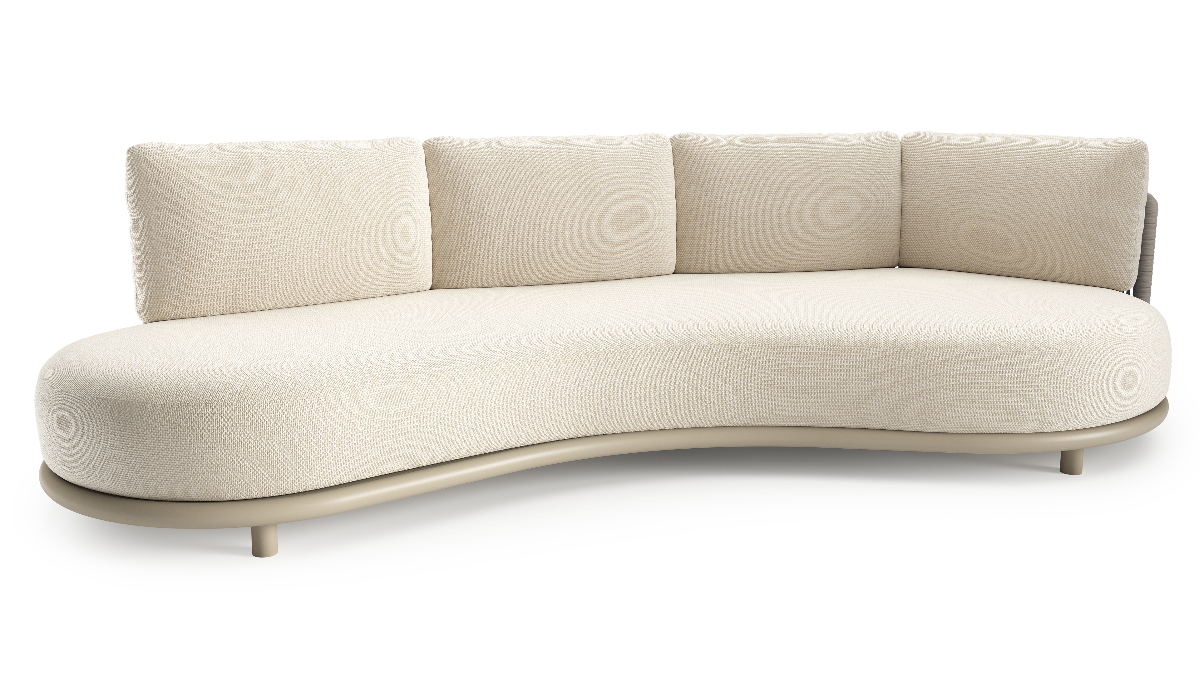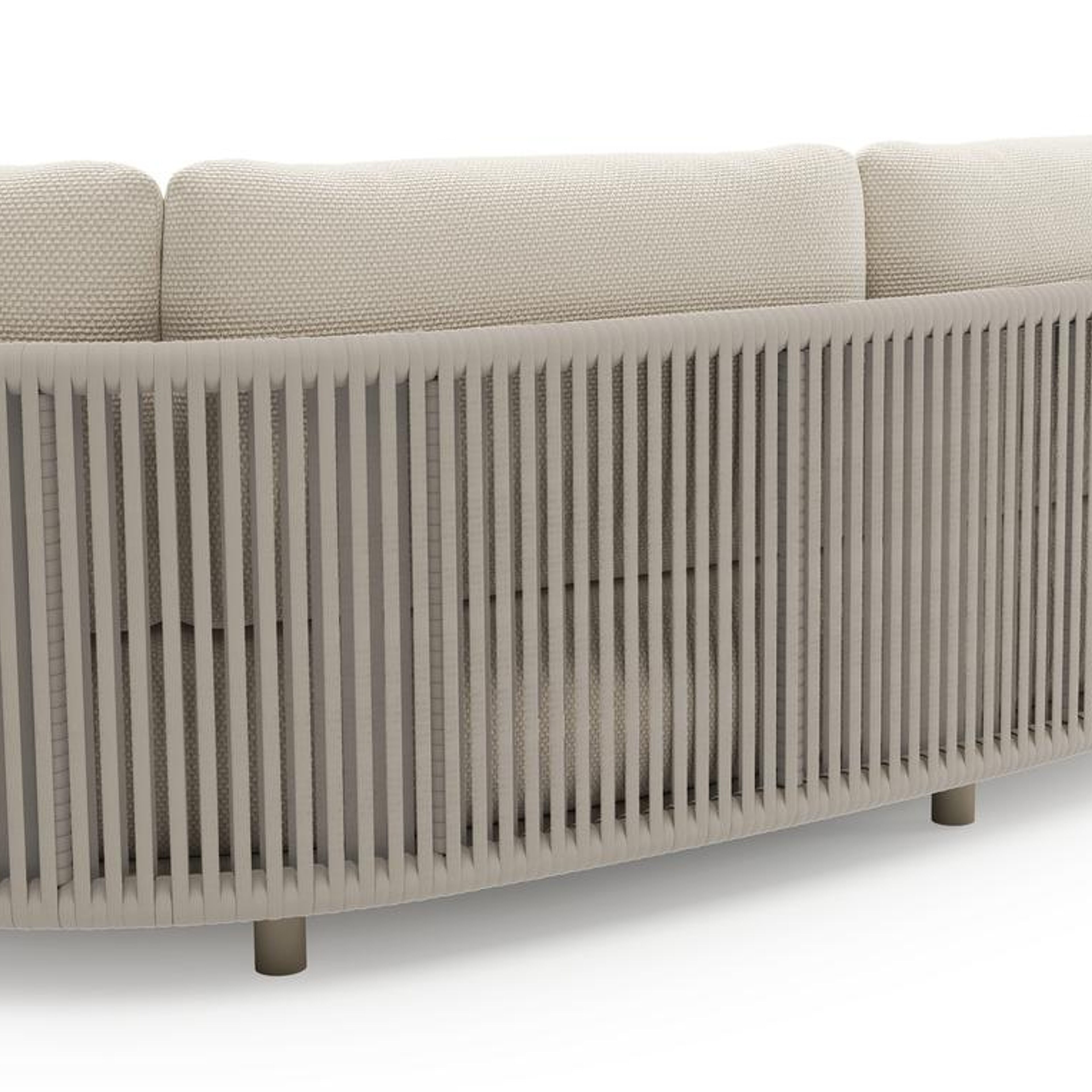 Lomano loungebank in beige aluminium en beige verticaal geweven luxe vlakke rope met althea off white all weather cosytica kussen | Exterioo tuinmeubelen