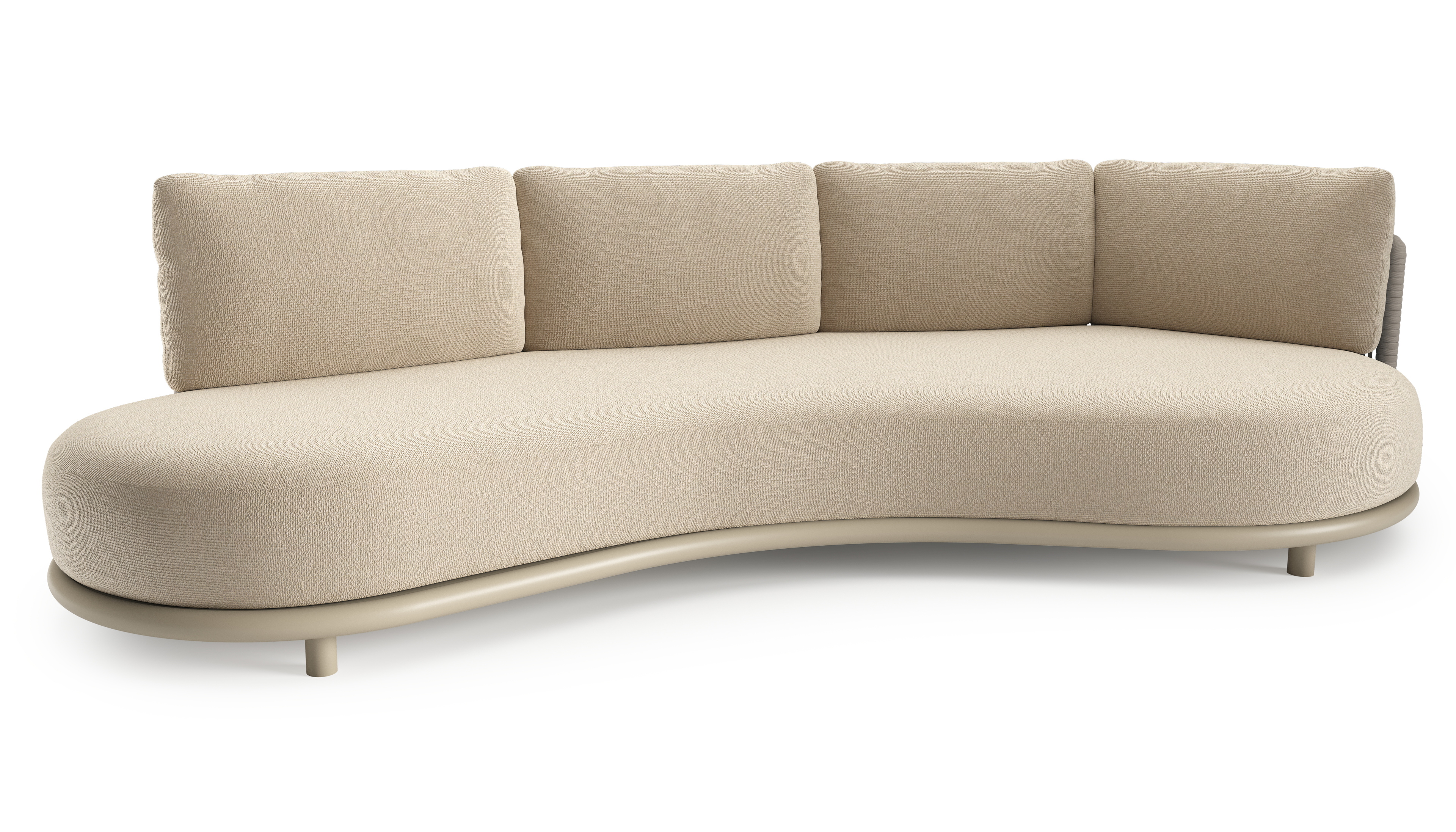 Lomano loungebank in beige aluminium en beige verticaal geweven luxe vlakke rope met althea chalk all weather cosytica kussen | Exterioo tuinmeubelen