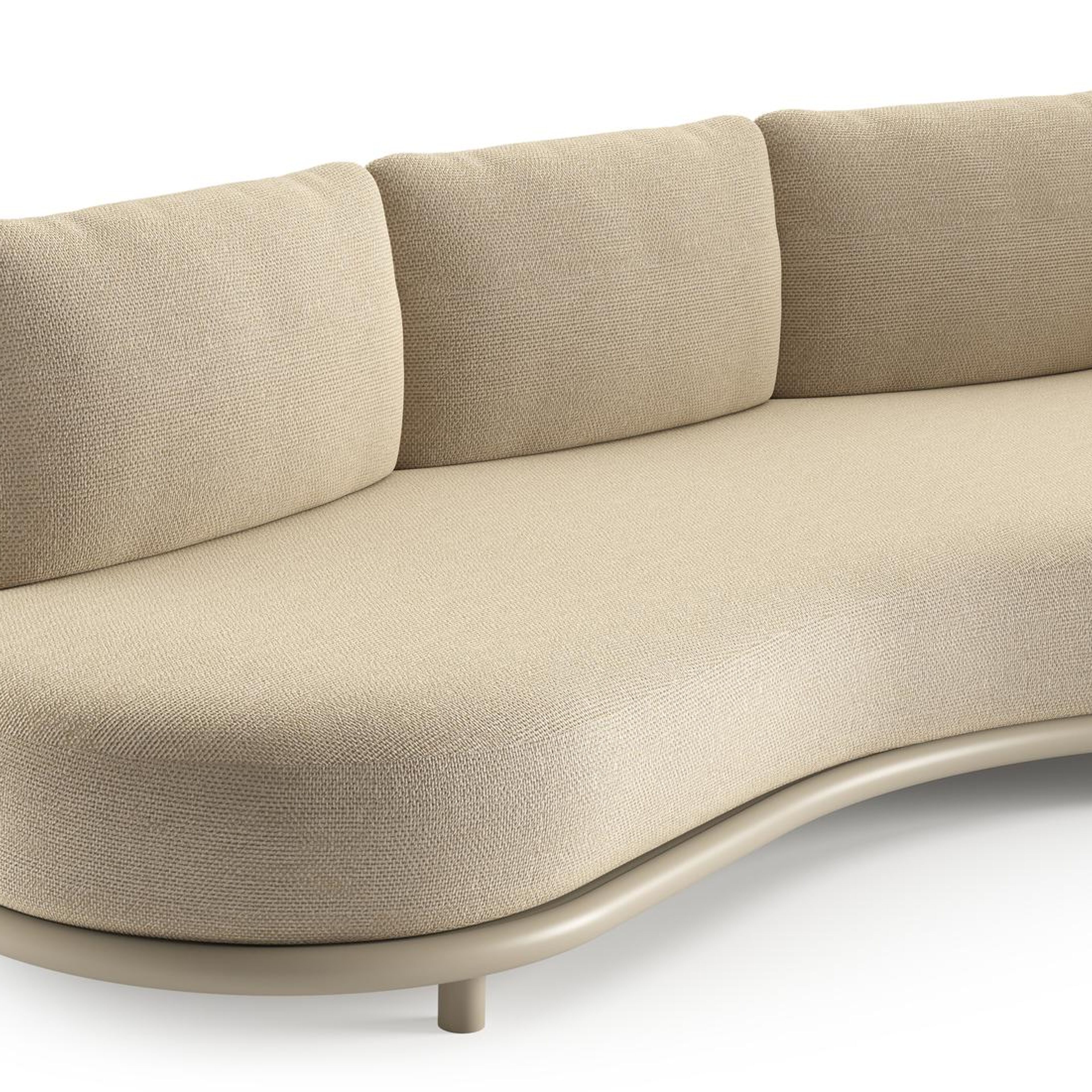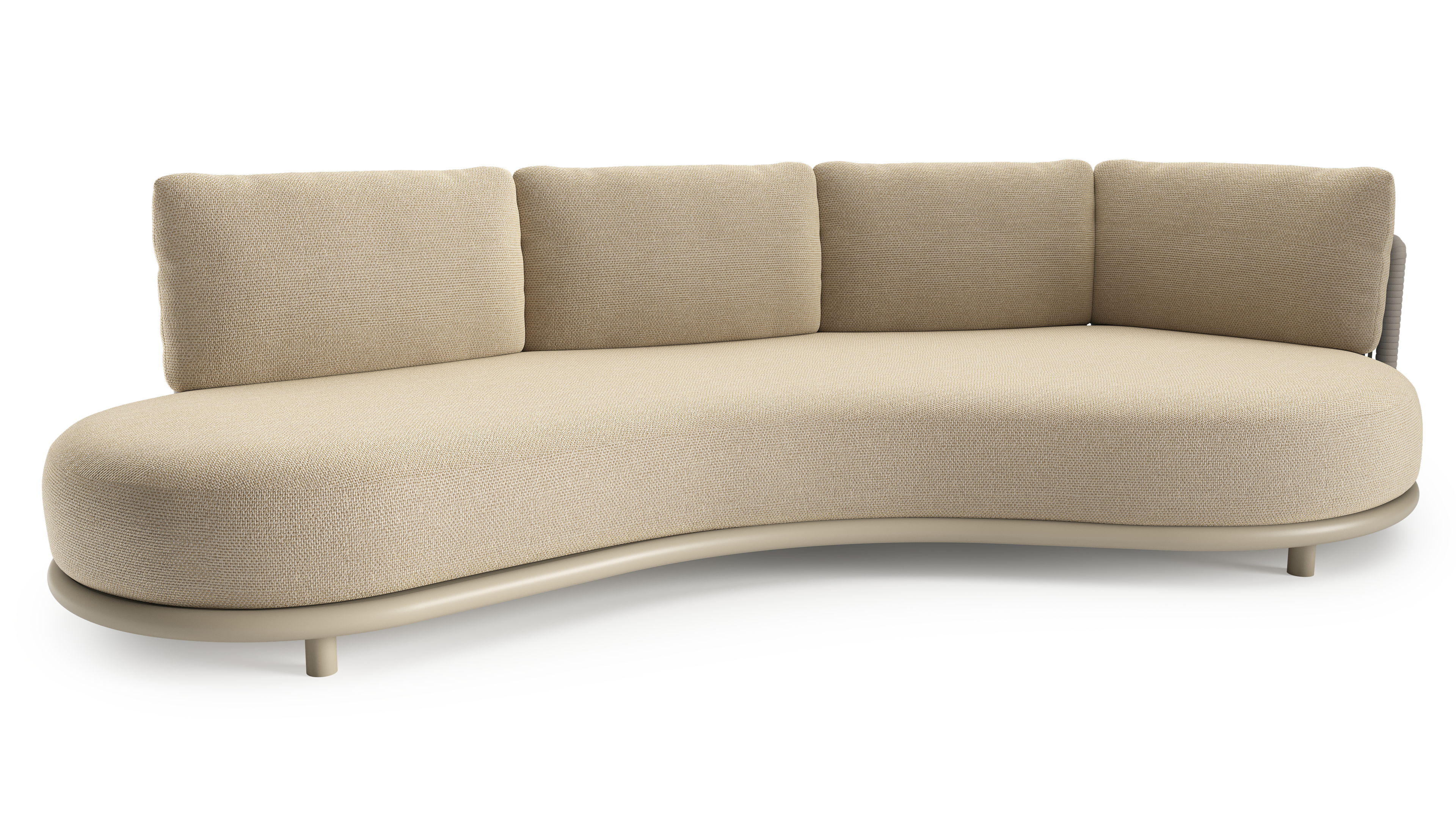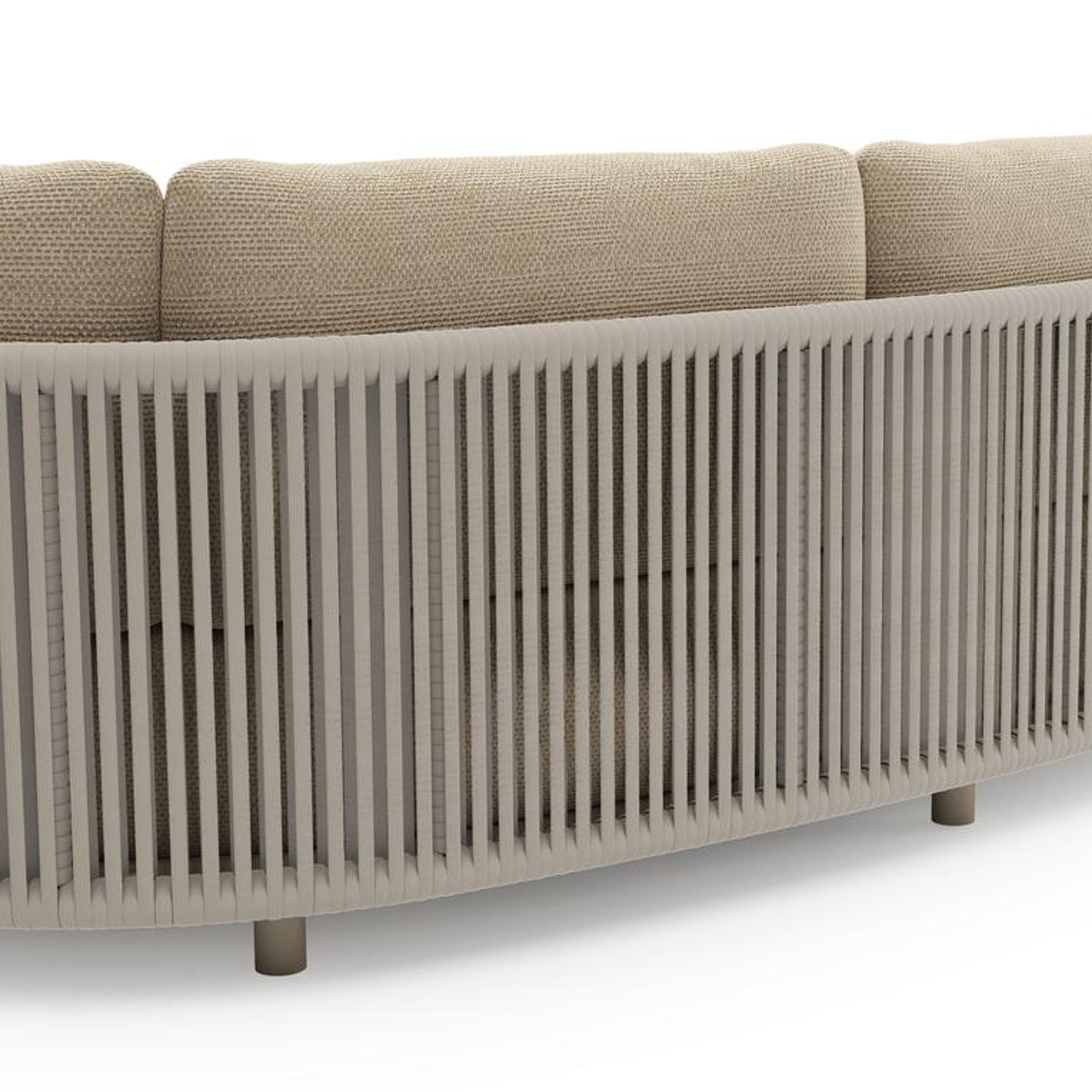 Lomano loungebank in beige aluminium en beige verticaal geweven luxe vlakke rope met althea camel all weather cosytica kussen | Exterioo tuinmeubelen