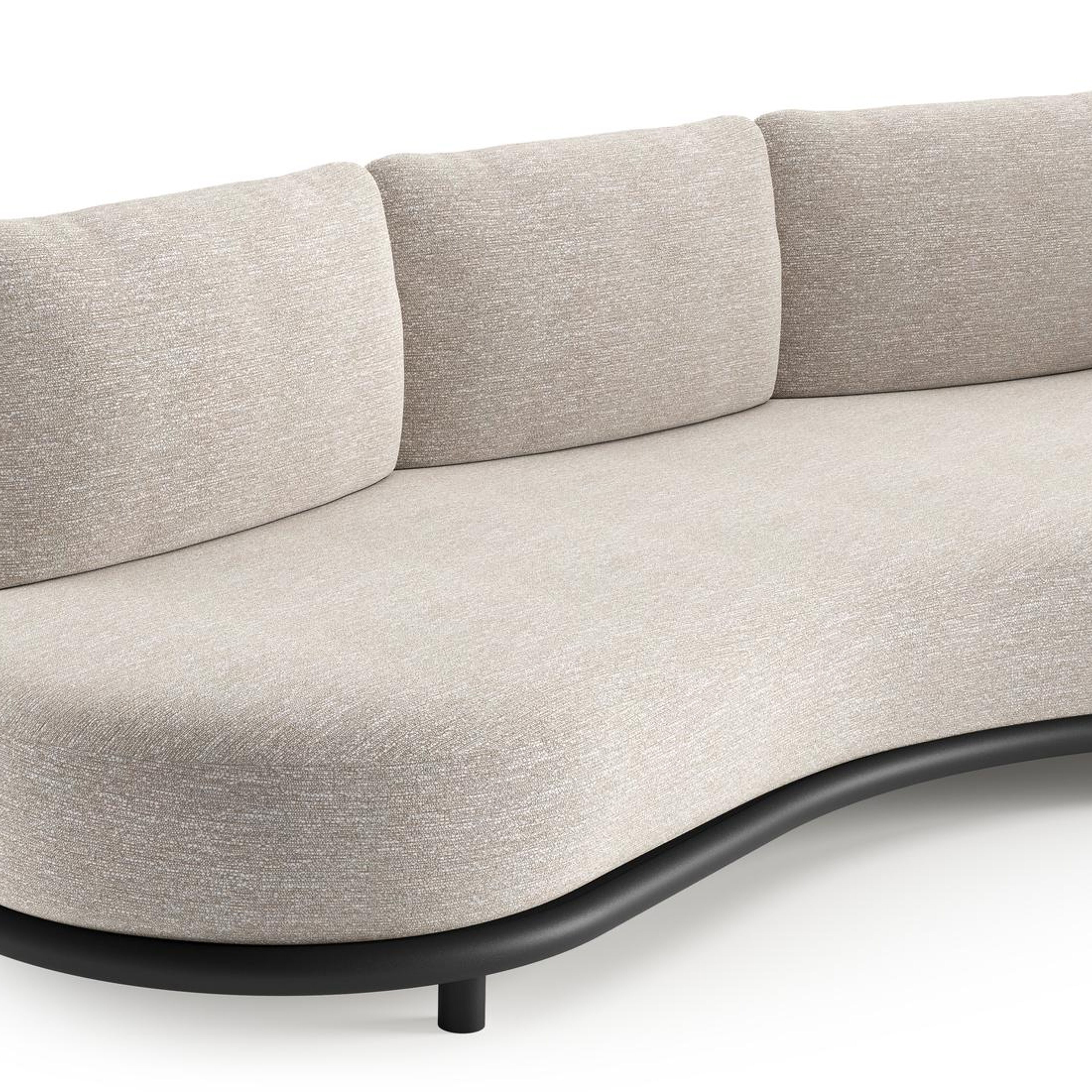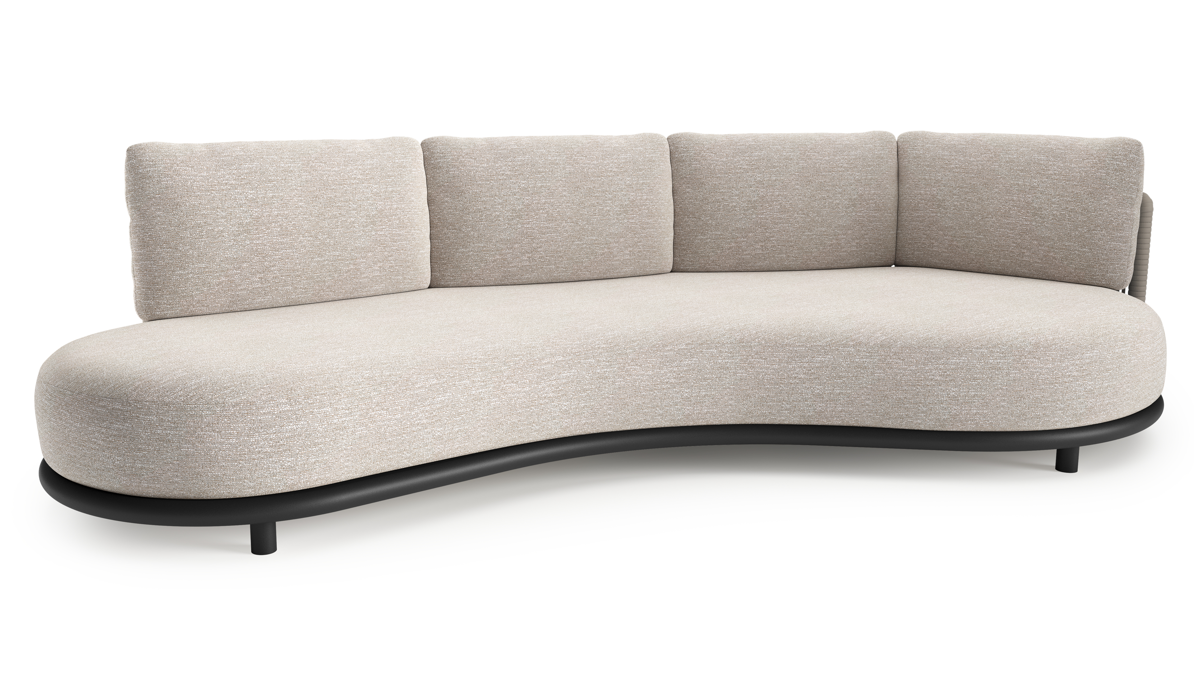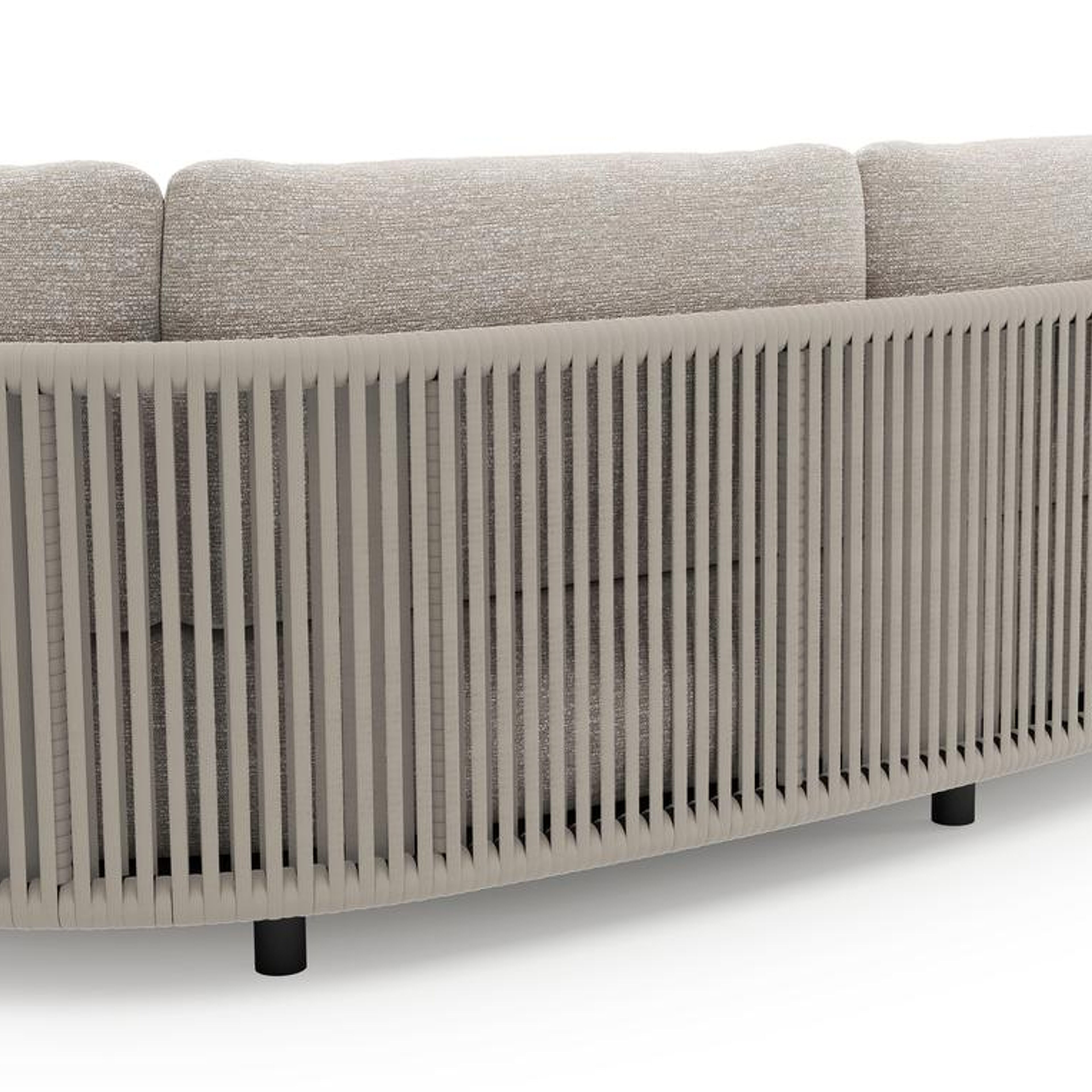 Lomano loungebank in zwart aluminium en beige verticaal geweven luxe vlakke rope met tundra sand all weather sunbrella® luxe kussen | Exterioo tuinmeubelen