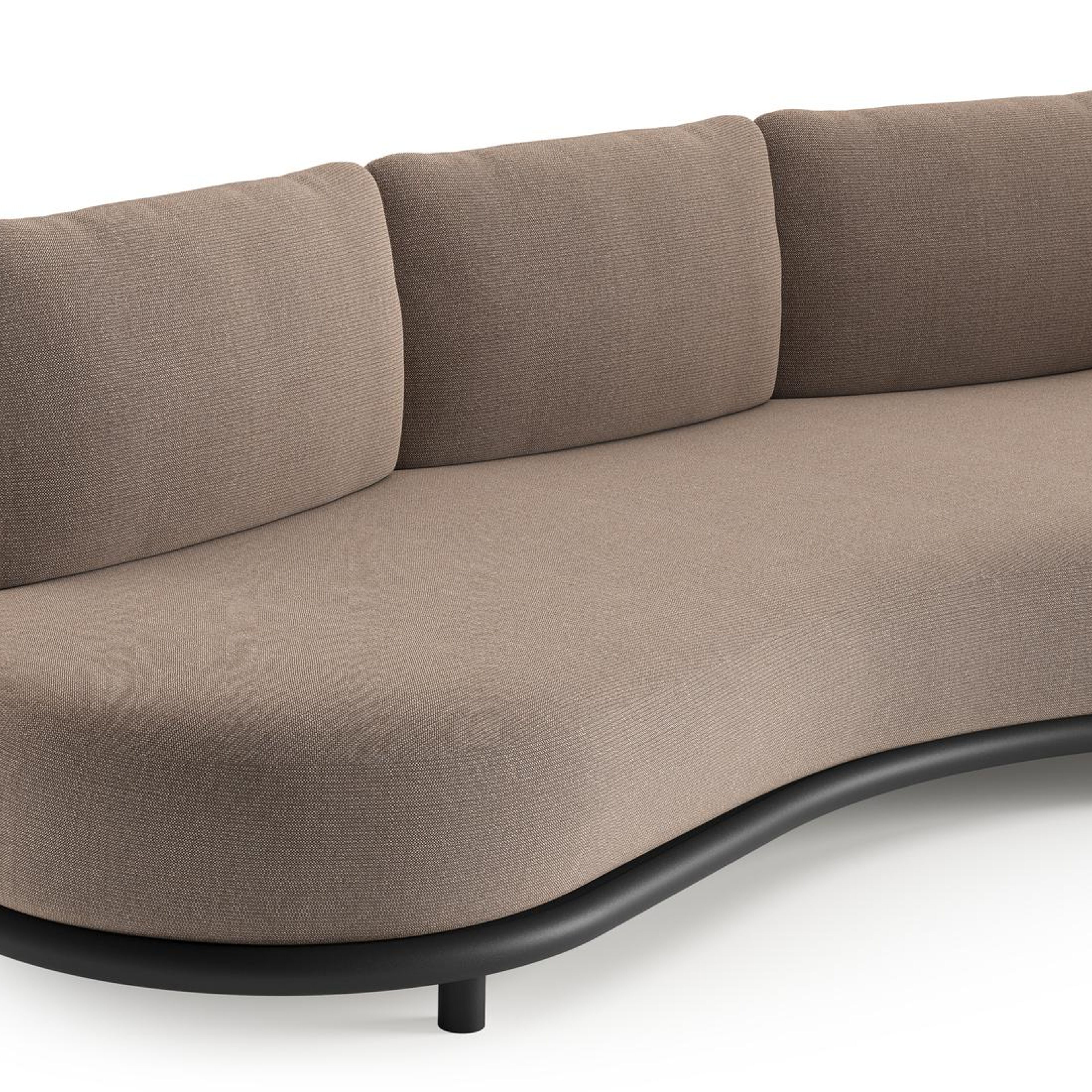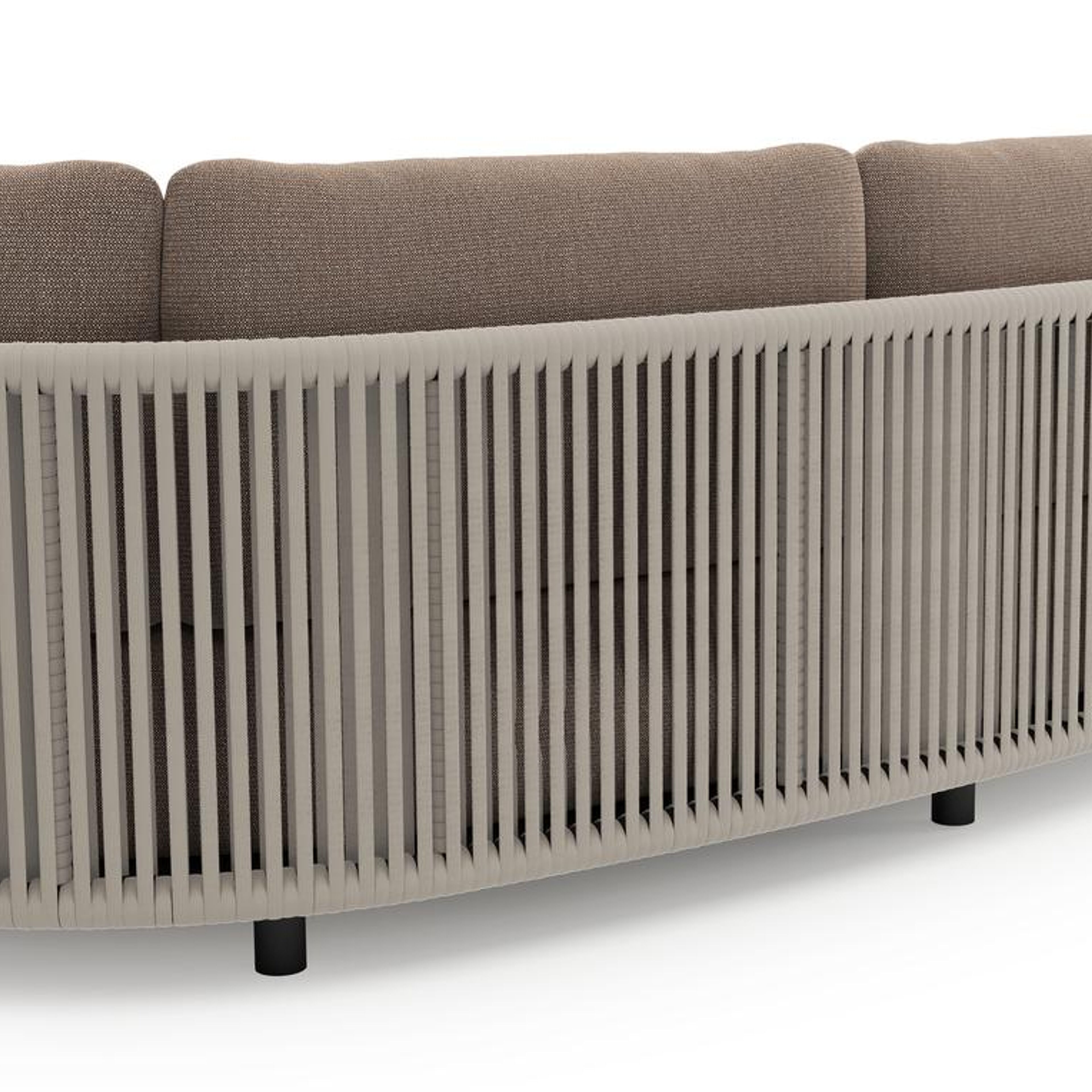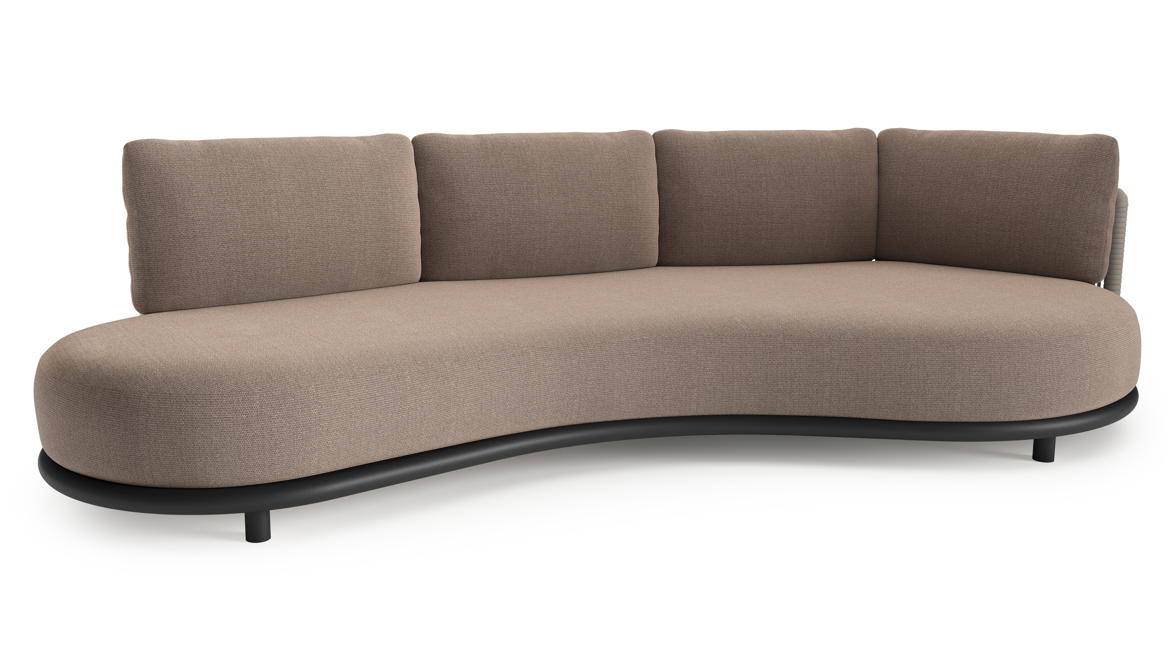 Lomano loungebank in zwart aluminium en beige verticaal geweven luxe vlakke rope met savane earth all weather sunbrella® luxe kussen | Exterioo tuinmeubelen