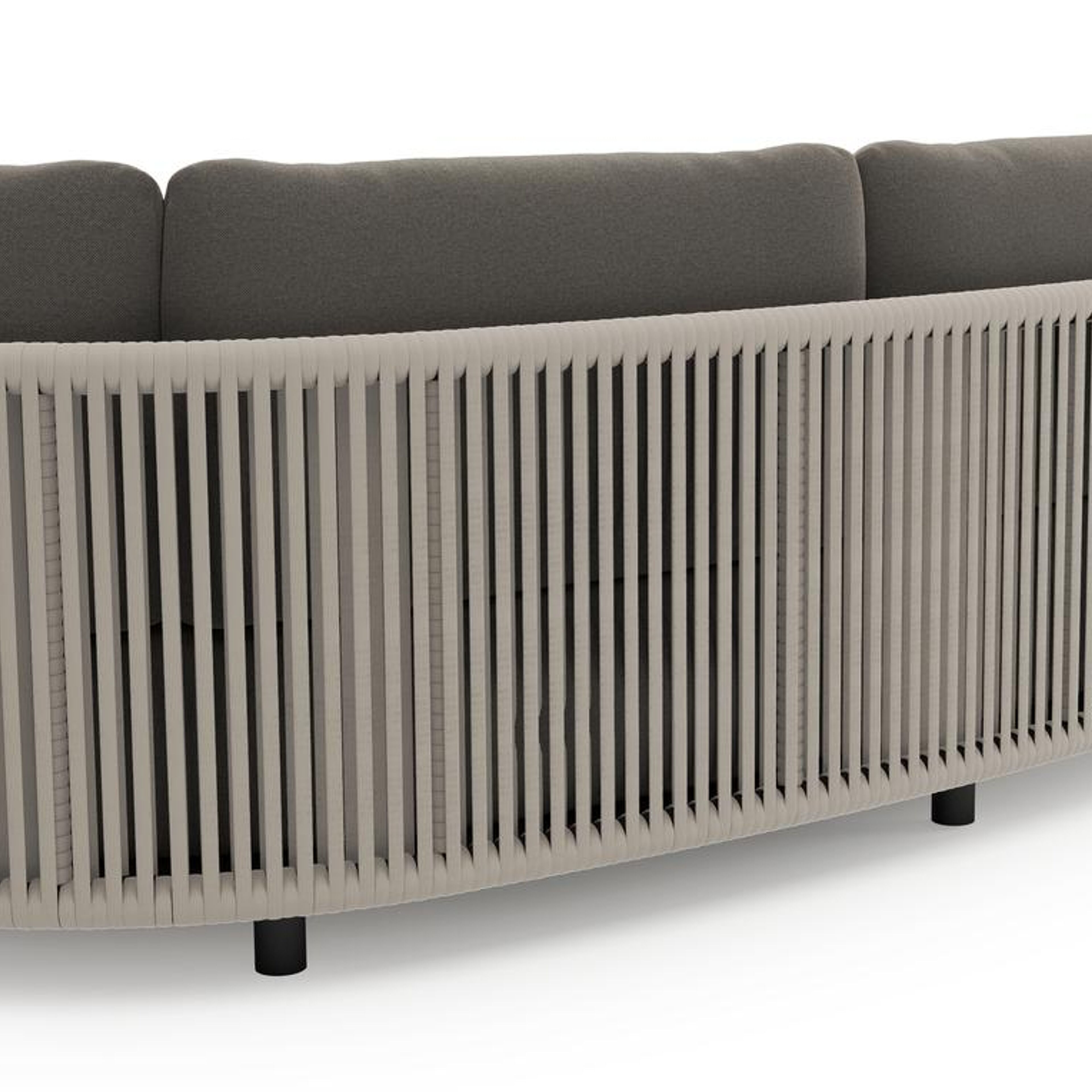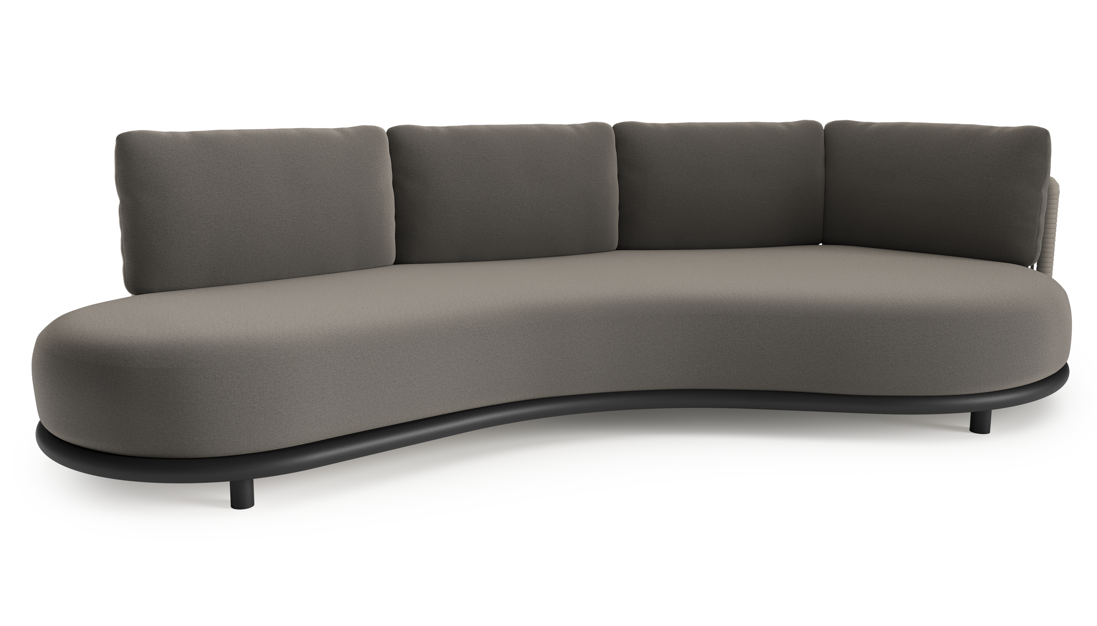 Lomano loungebank in zwart aluminium en beige verticaal geweven luxe vlakke rope met natte dark taupe all weather sunbrella® luxe kussen | Exterioo tuinmeubelen