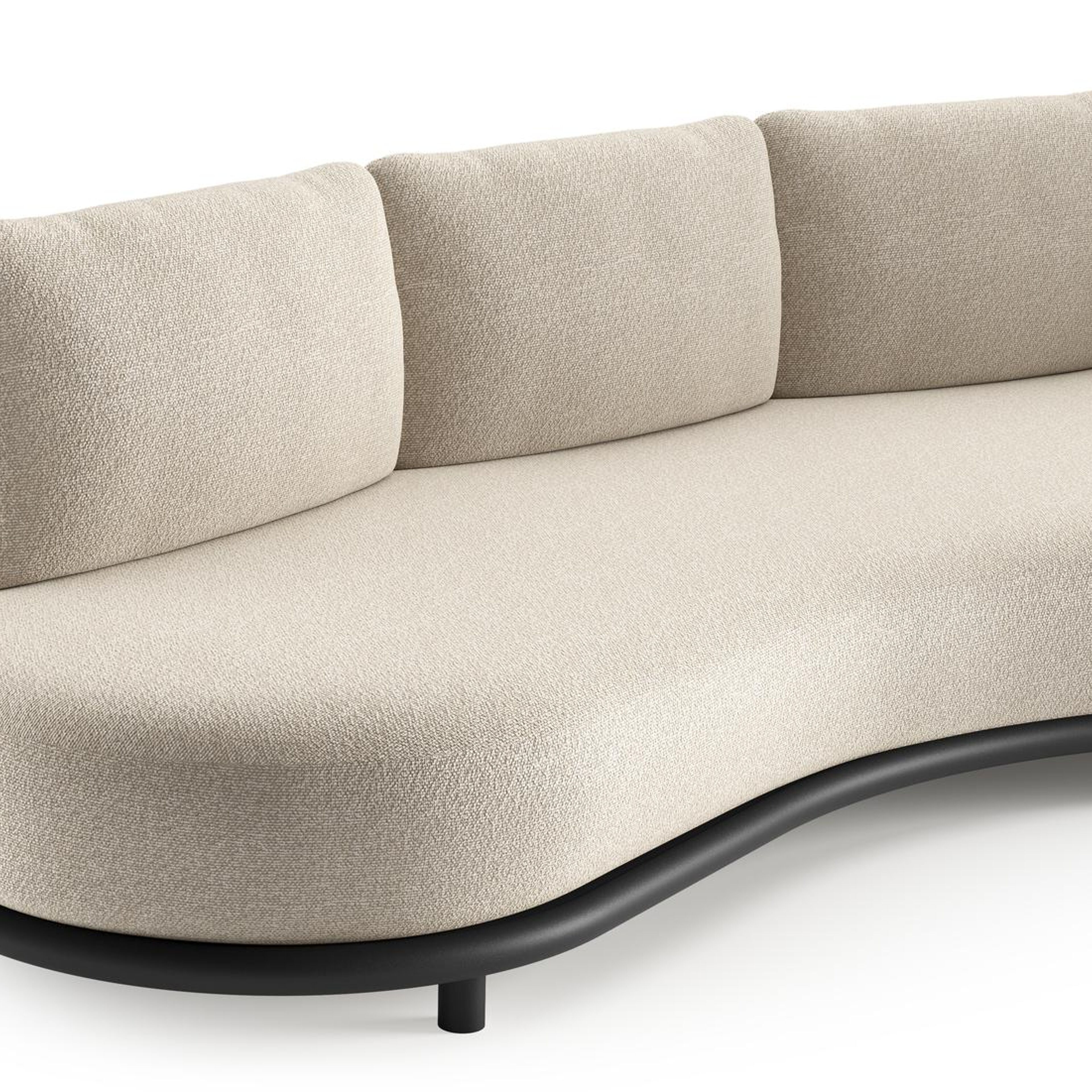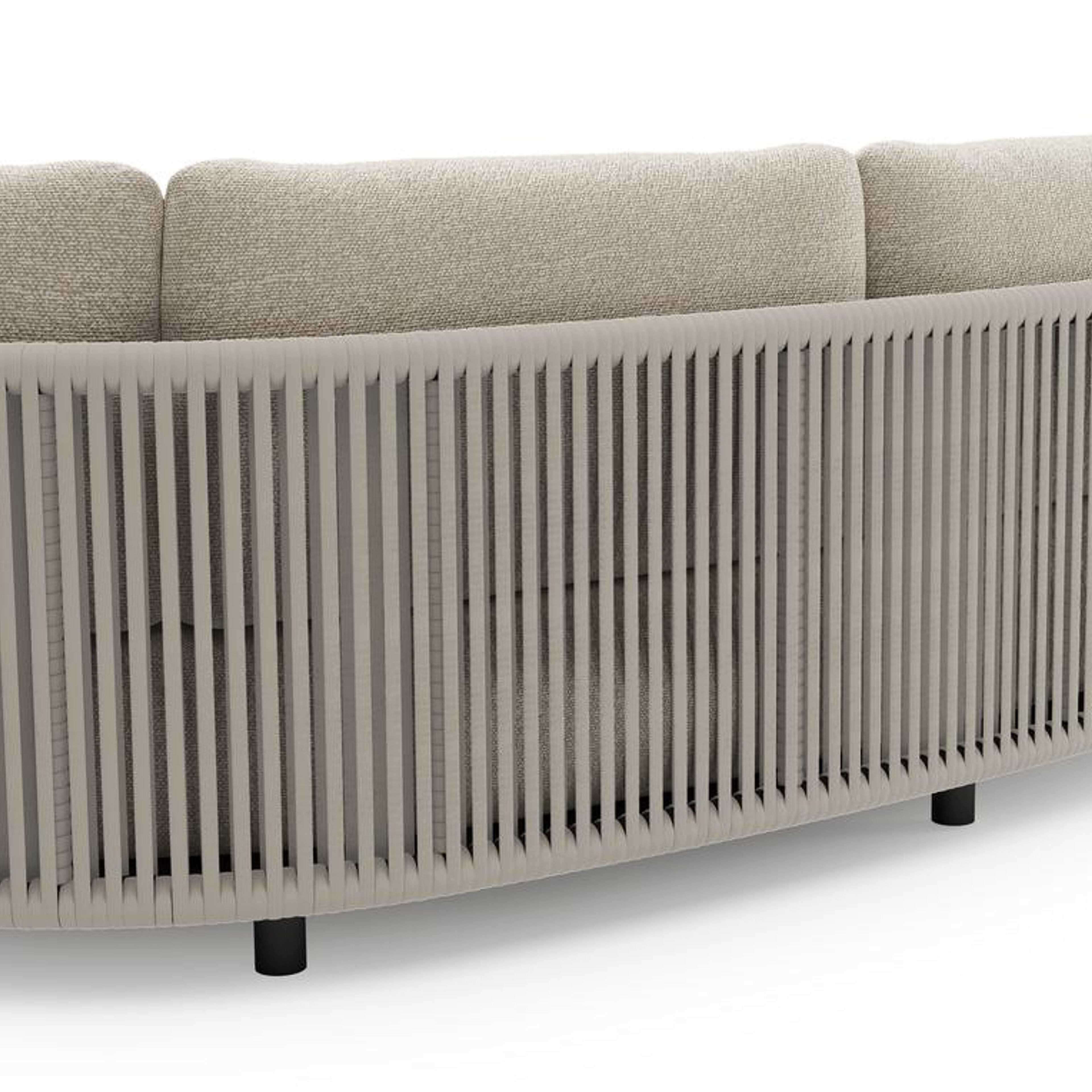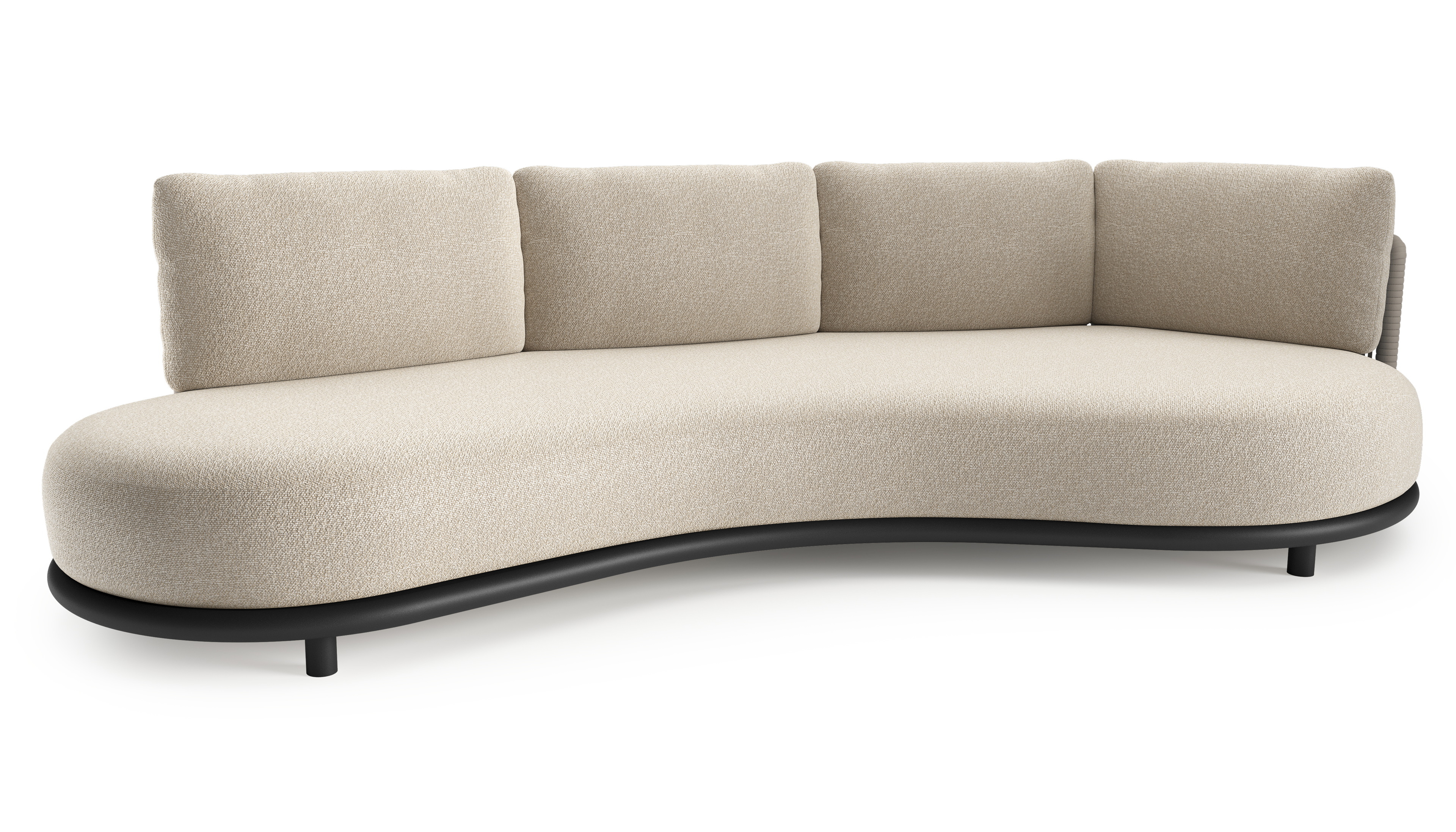 Lomano loungebank in zwart aluminium en beige verticaal geweven luxe vlakke rope met marbella ecru all weather cosytica kussen | Exterioo tuinmeubelen