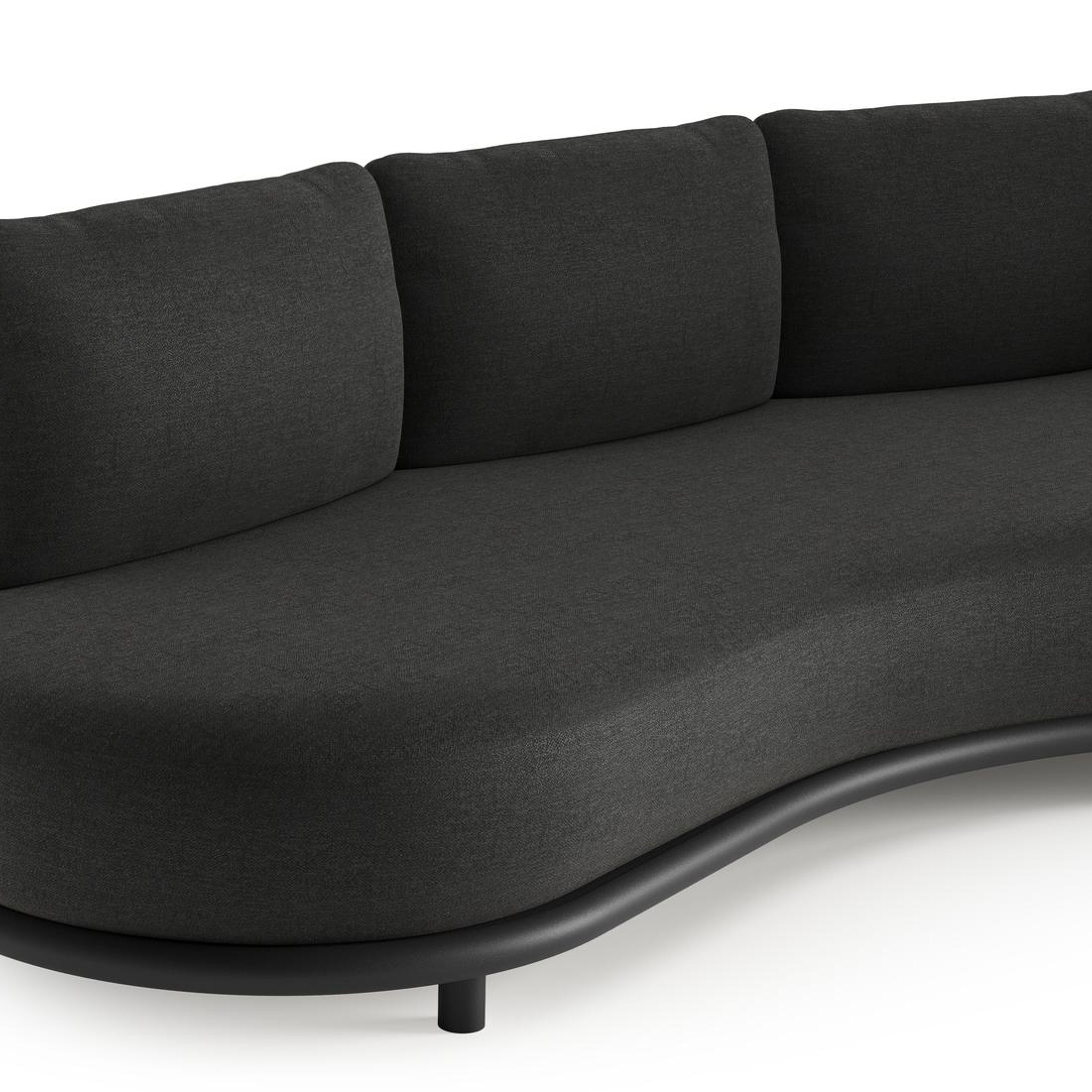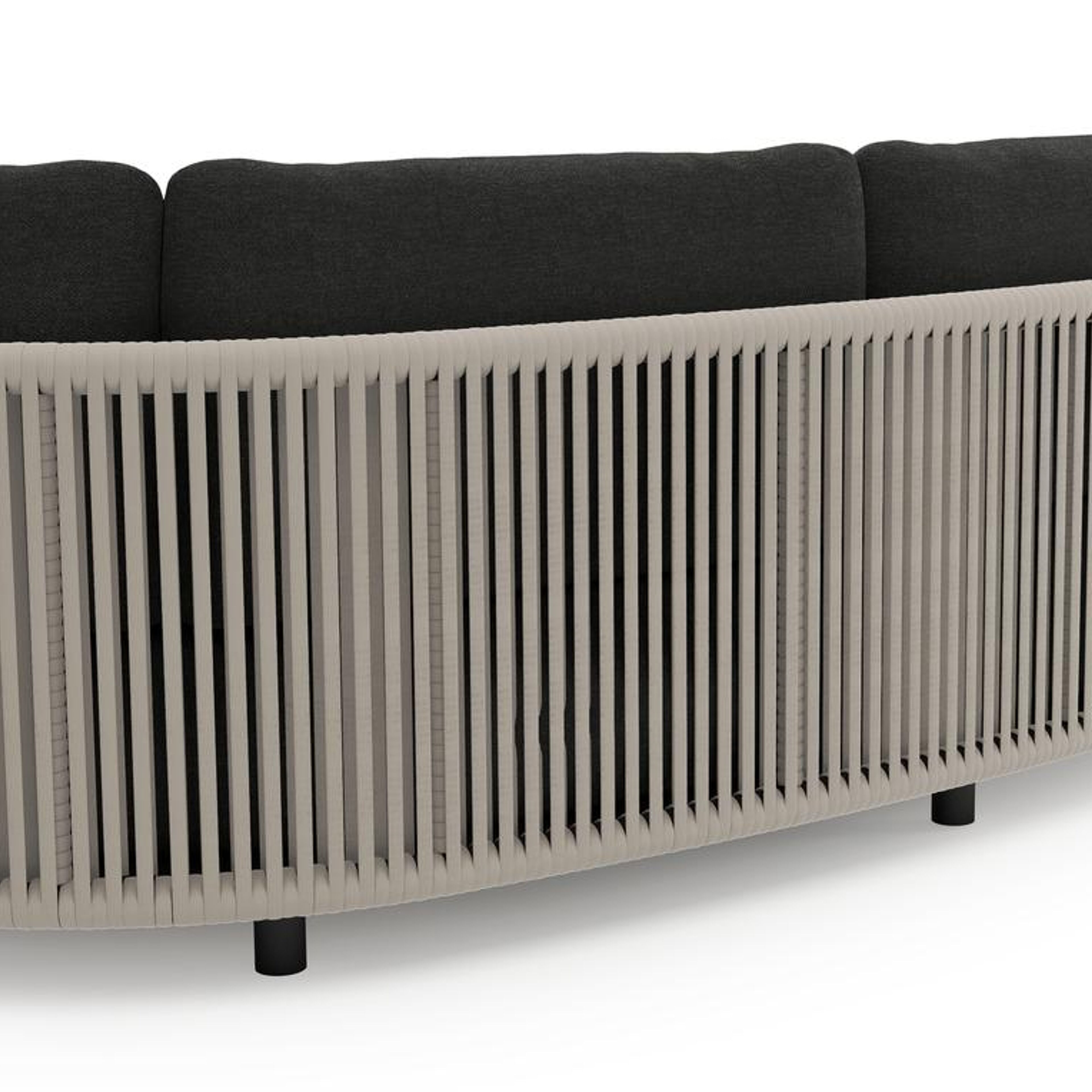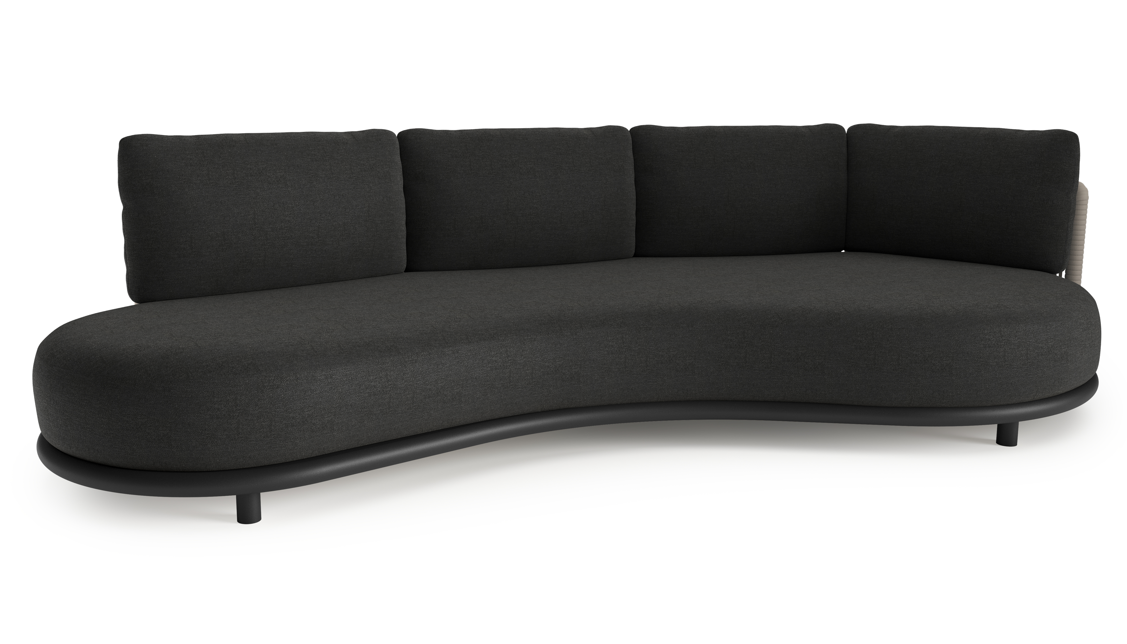 Lomano loungebank in zwart aluminium en beige verticaal geweven luxe vlakke rope met chartres sooty all weather sunbrella® luxe kussen | Exterioo tuinmeubelen