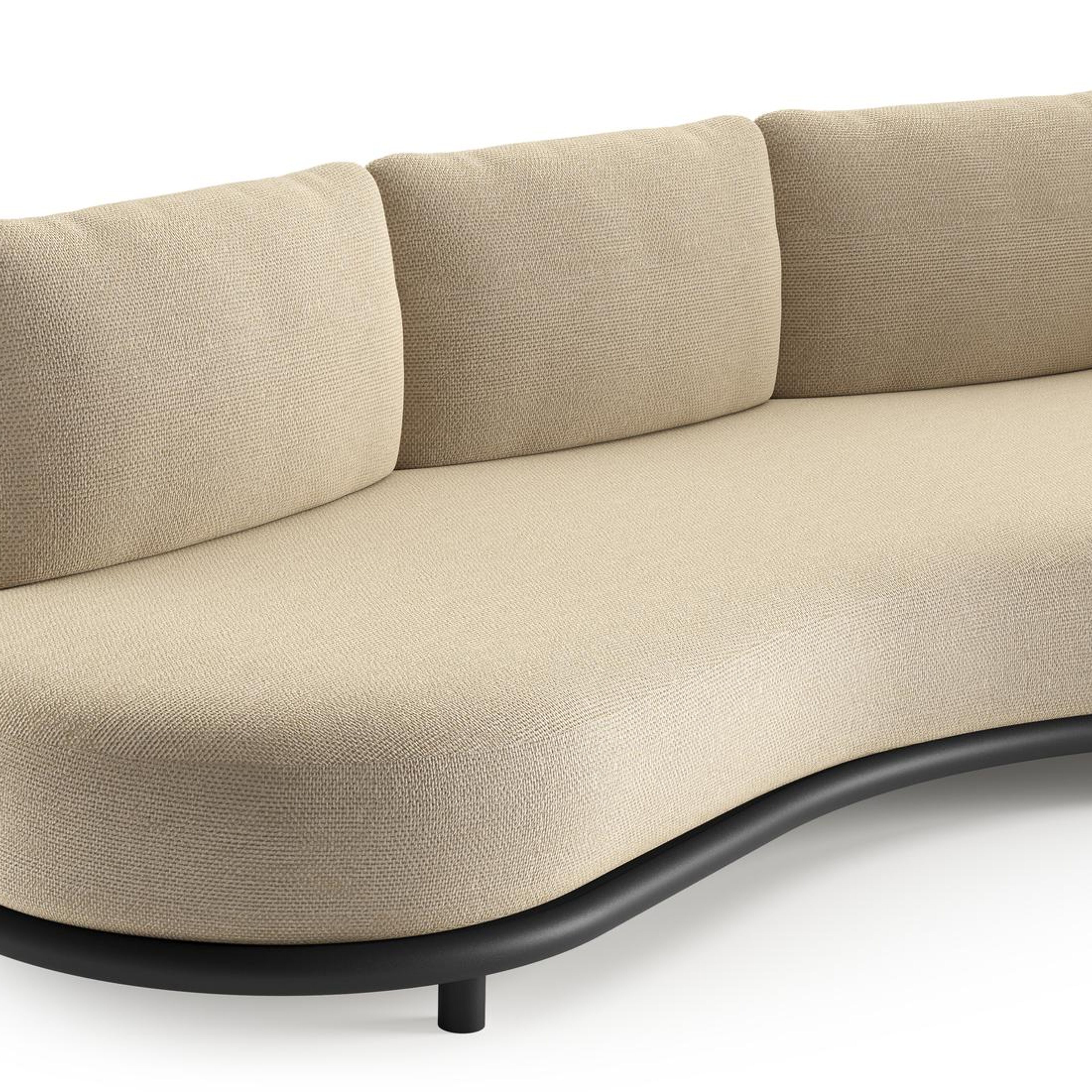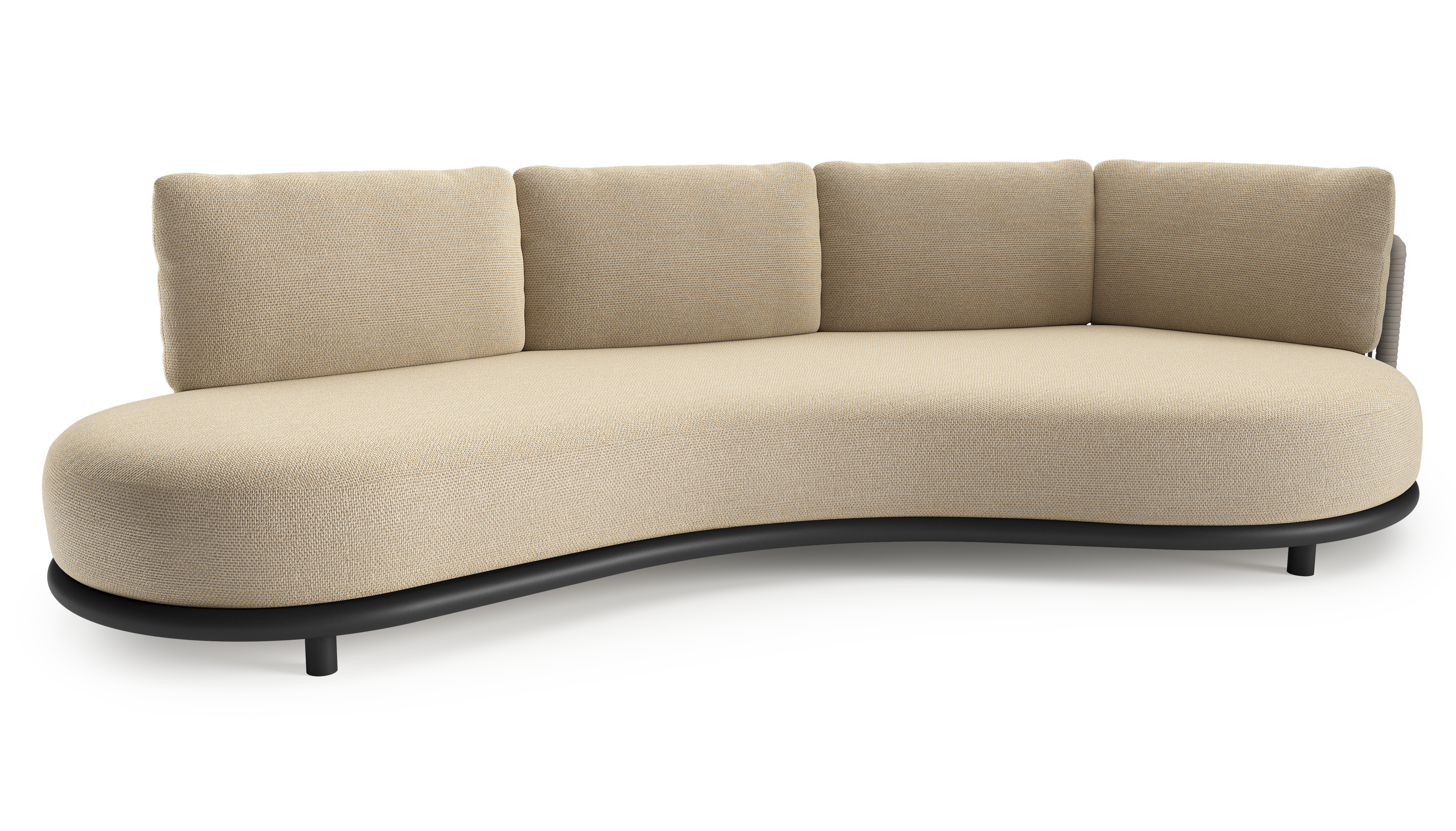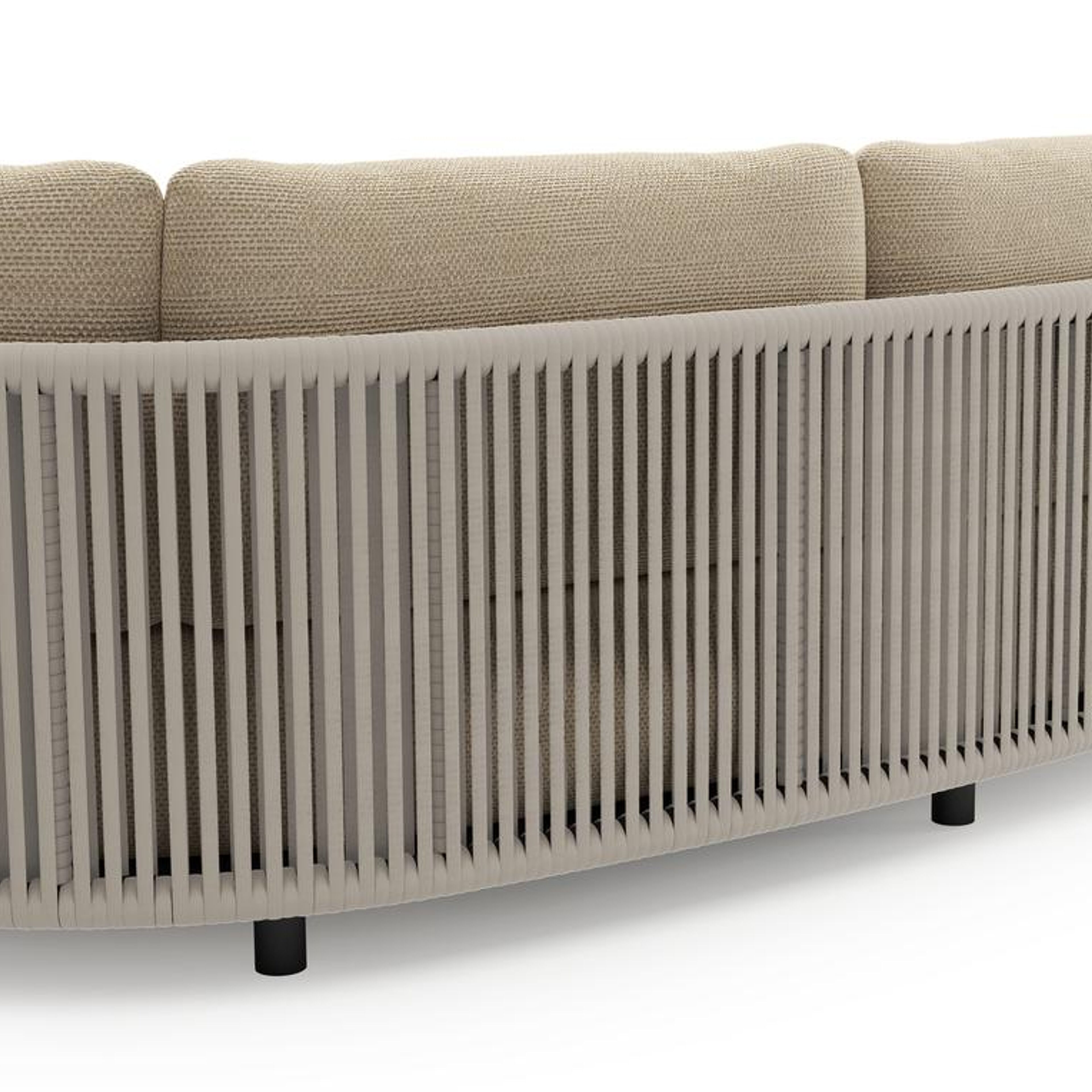 Lomano loungebank in zwart aluminium en beige verticaal geweven luxe vlakke rope met althea camel all weather cosytica kussen | Exterioo tuinmeubelen