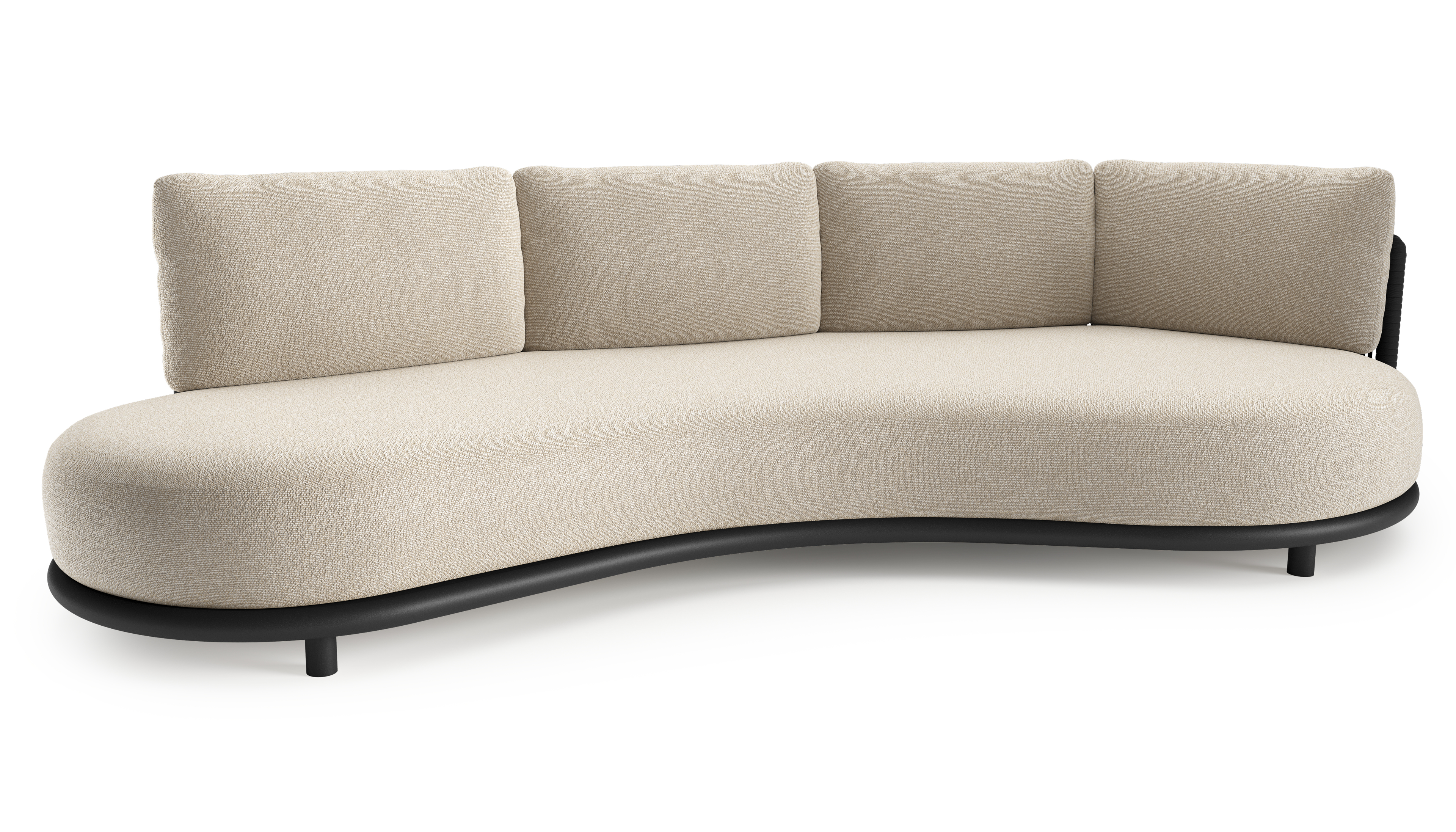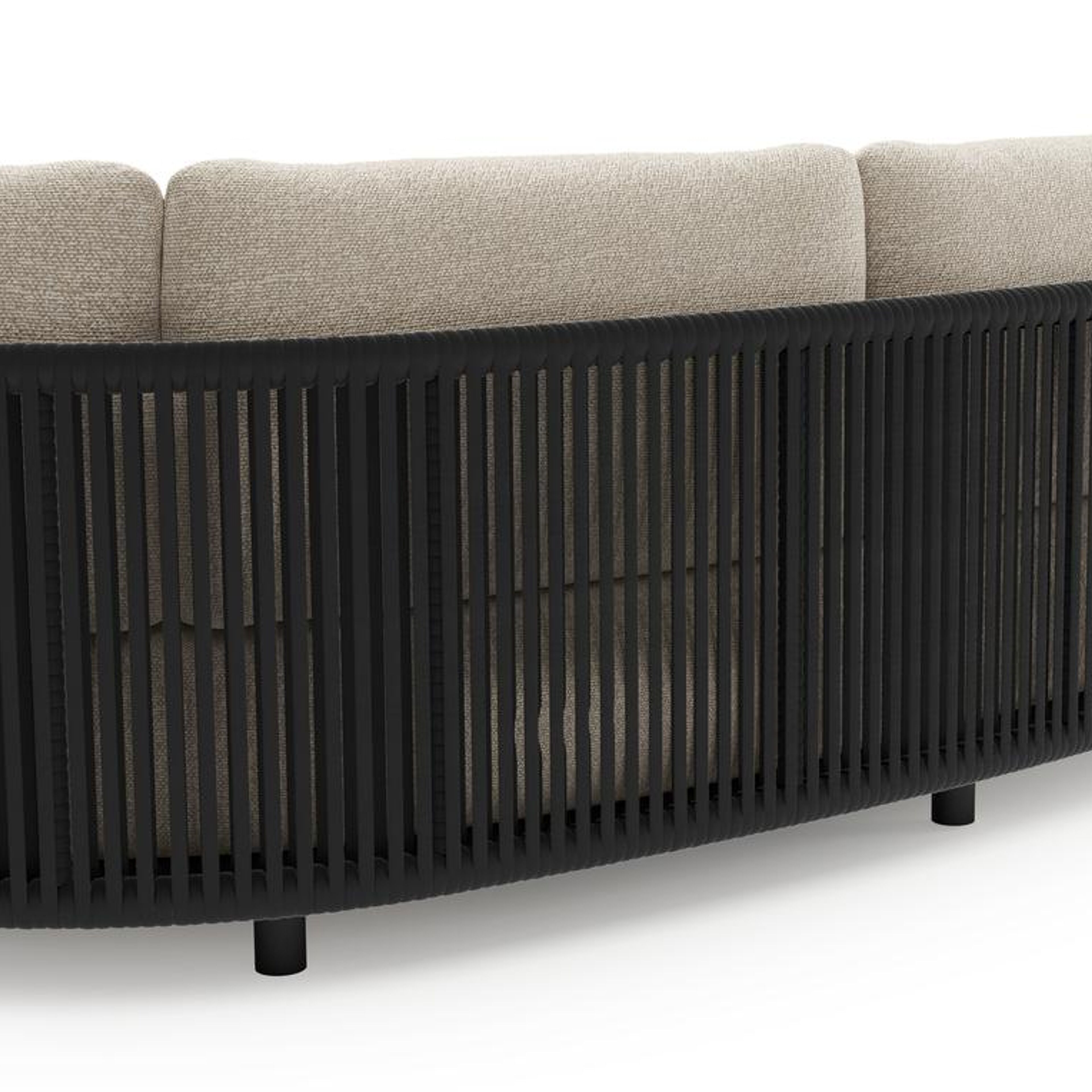 Lomano loungebank in zwart aluminium en zwart verticaal geweven luxe vlakke rope met marbella ecru all weather cosytica kussen | Exterioo tuinmeubelen