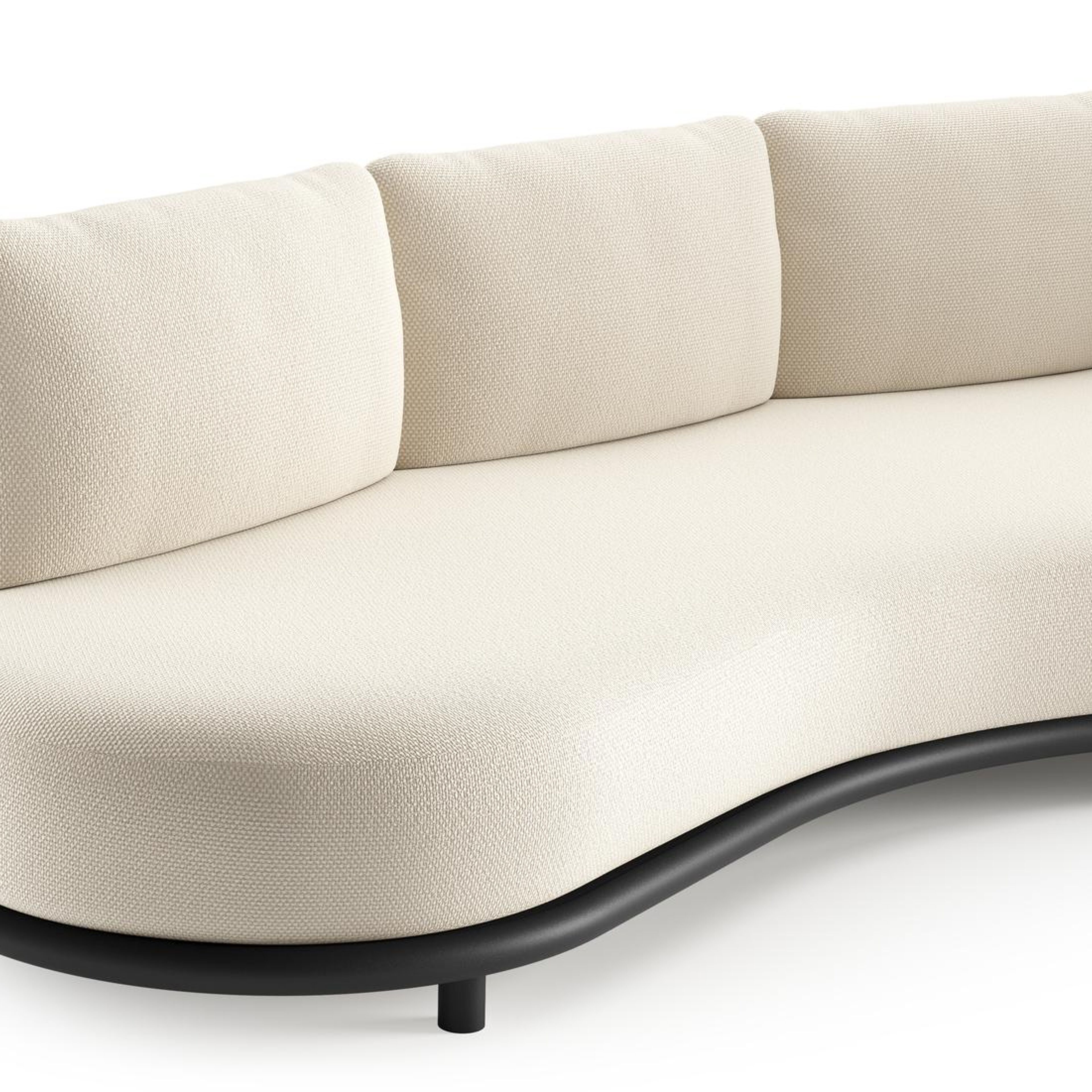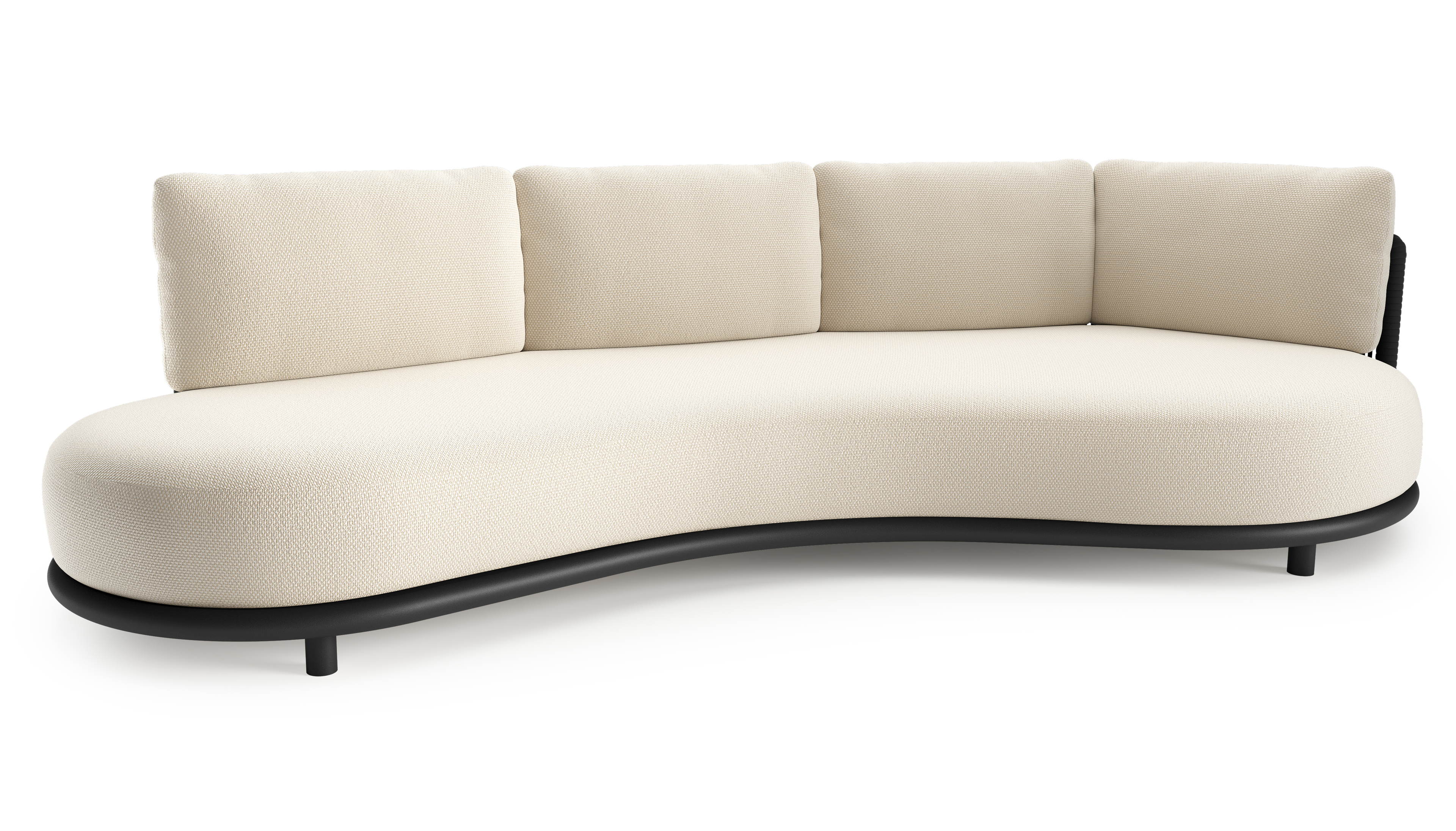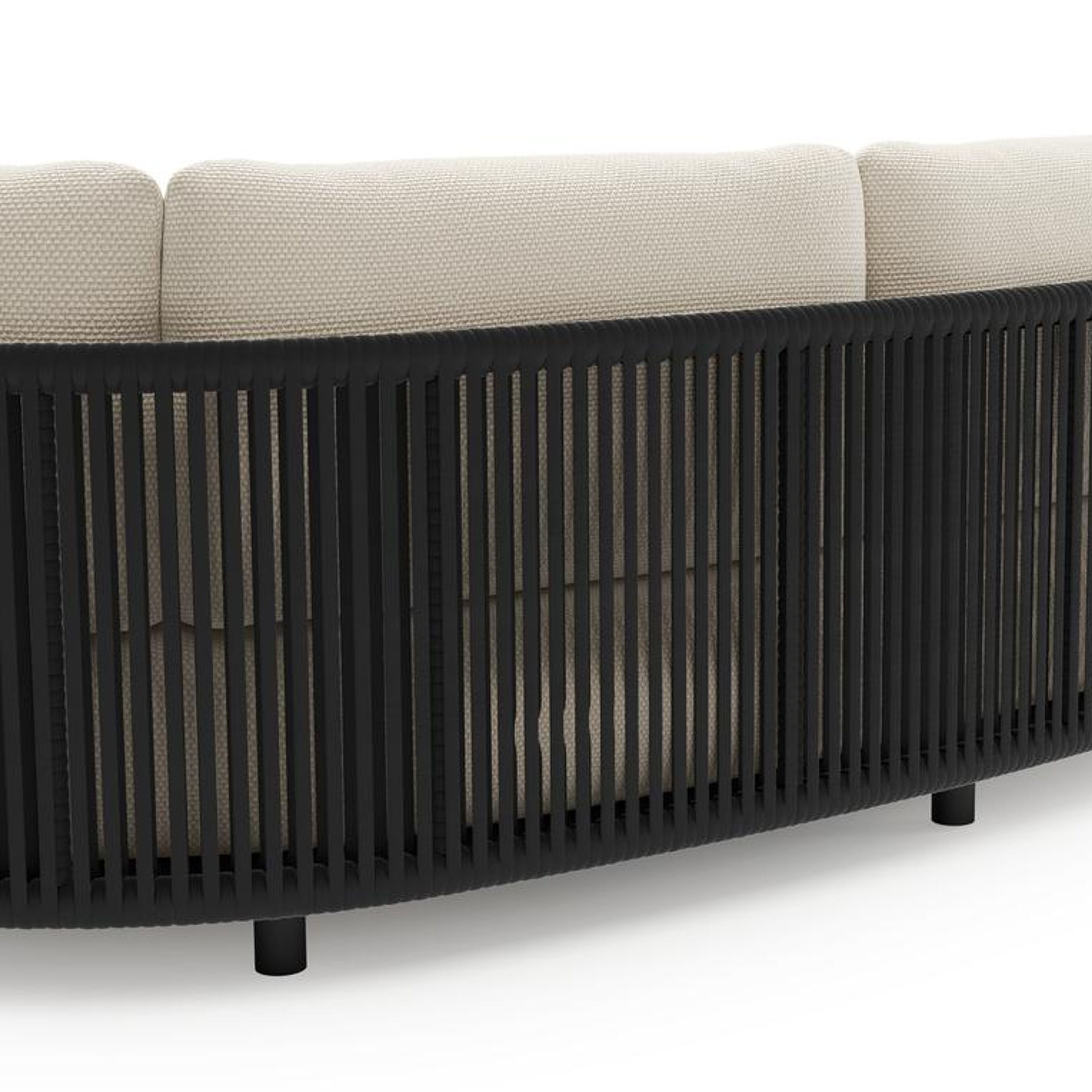 Lomano loungebank in zwart aluminium en zwart verticaal geweven luxe vlakke rope met althea off white all weather cosytica kussen | Exterioo tuinmeubelen