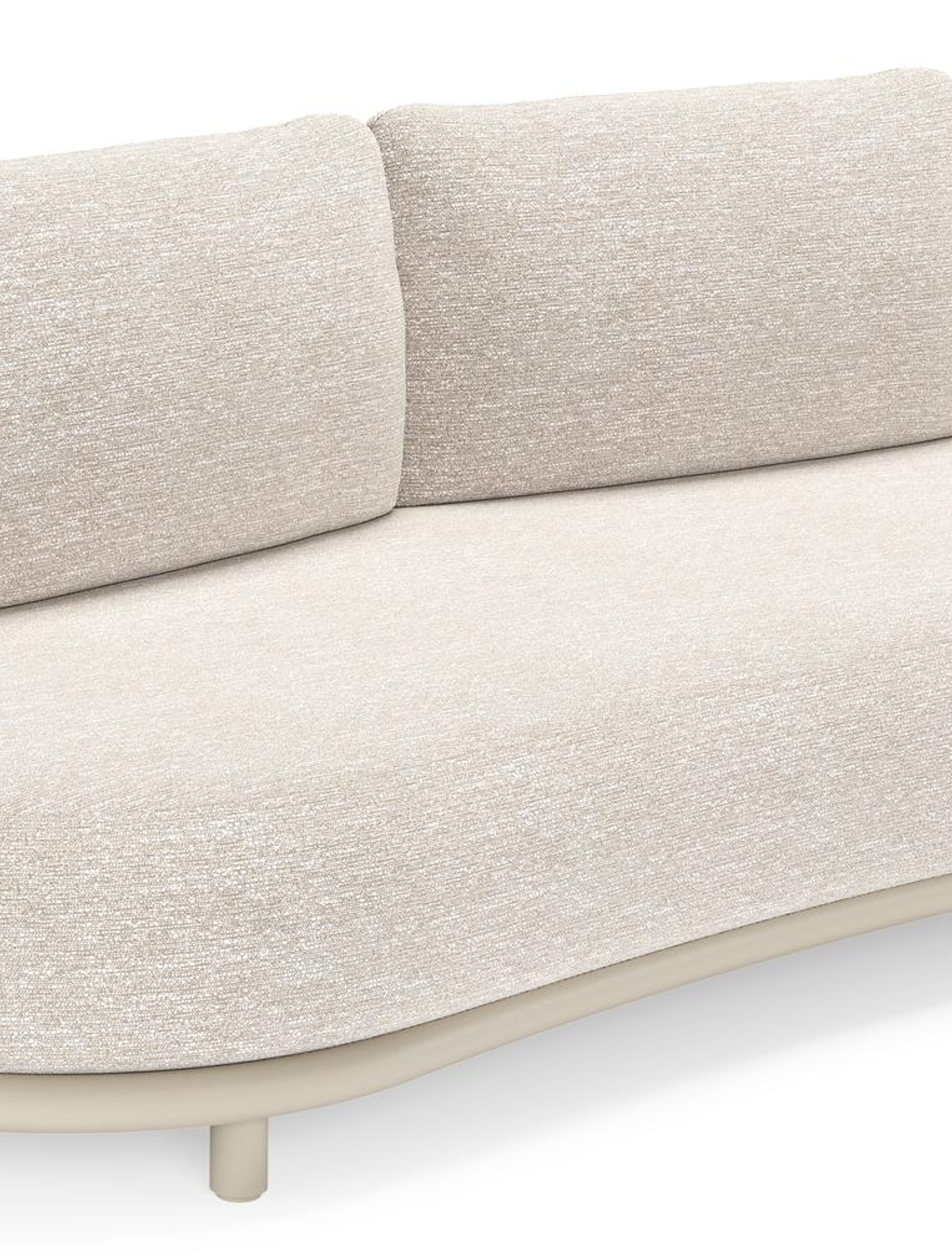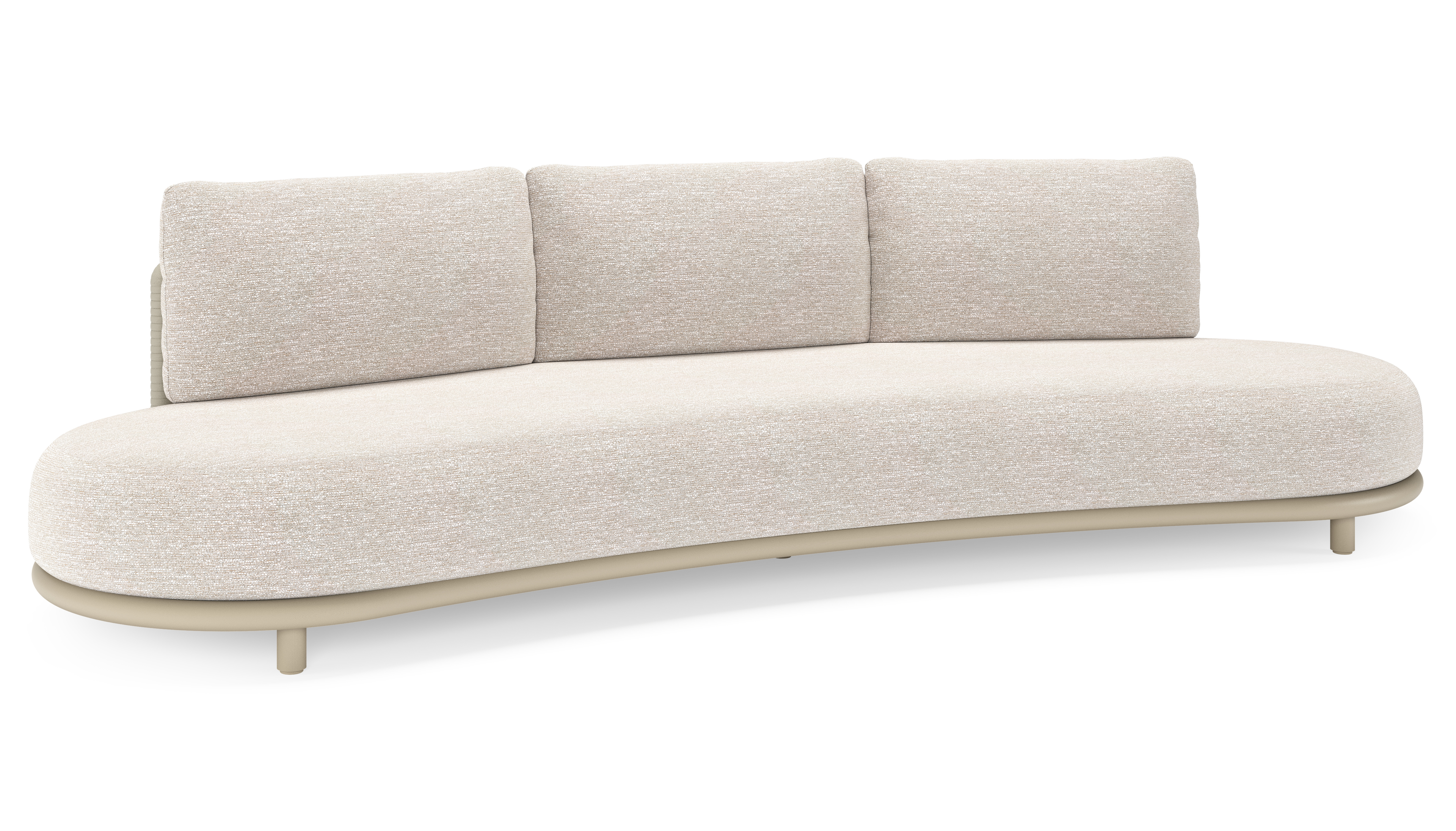 Lomano loungebank in beige aluminium en beige verticaal geweven luxe vlakke rope met Tundra Sand all weather sunbrella® luxe | Exterioo tuinmeubelen