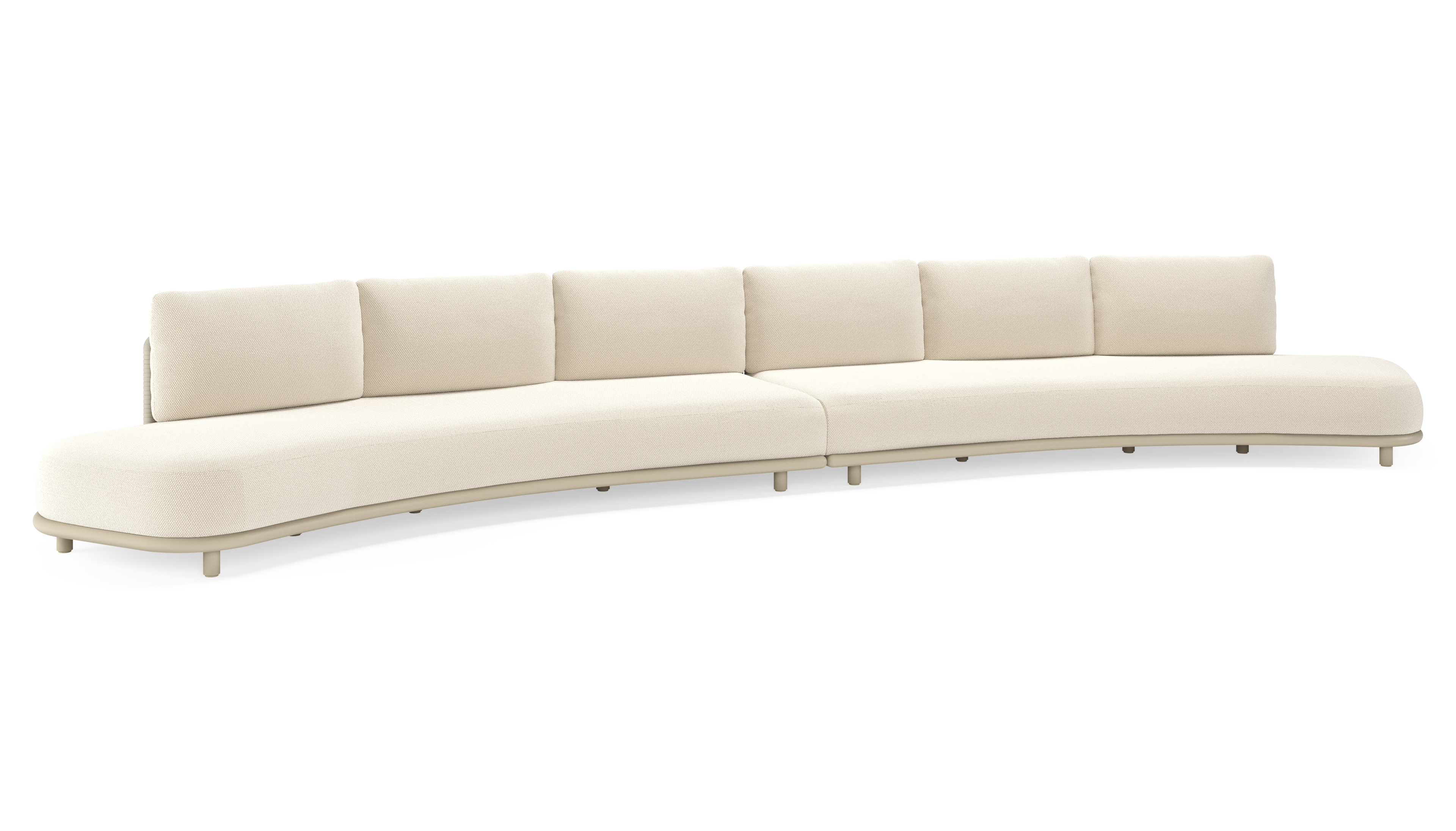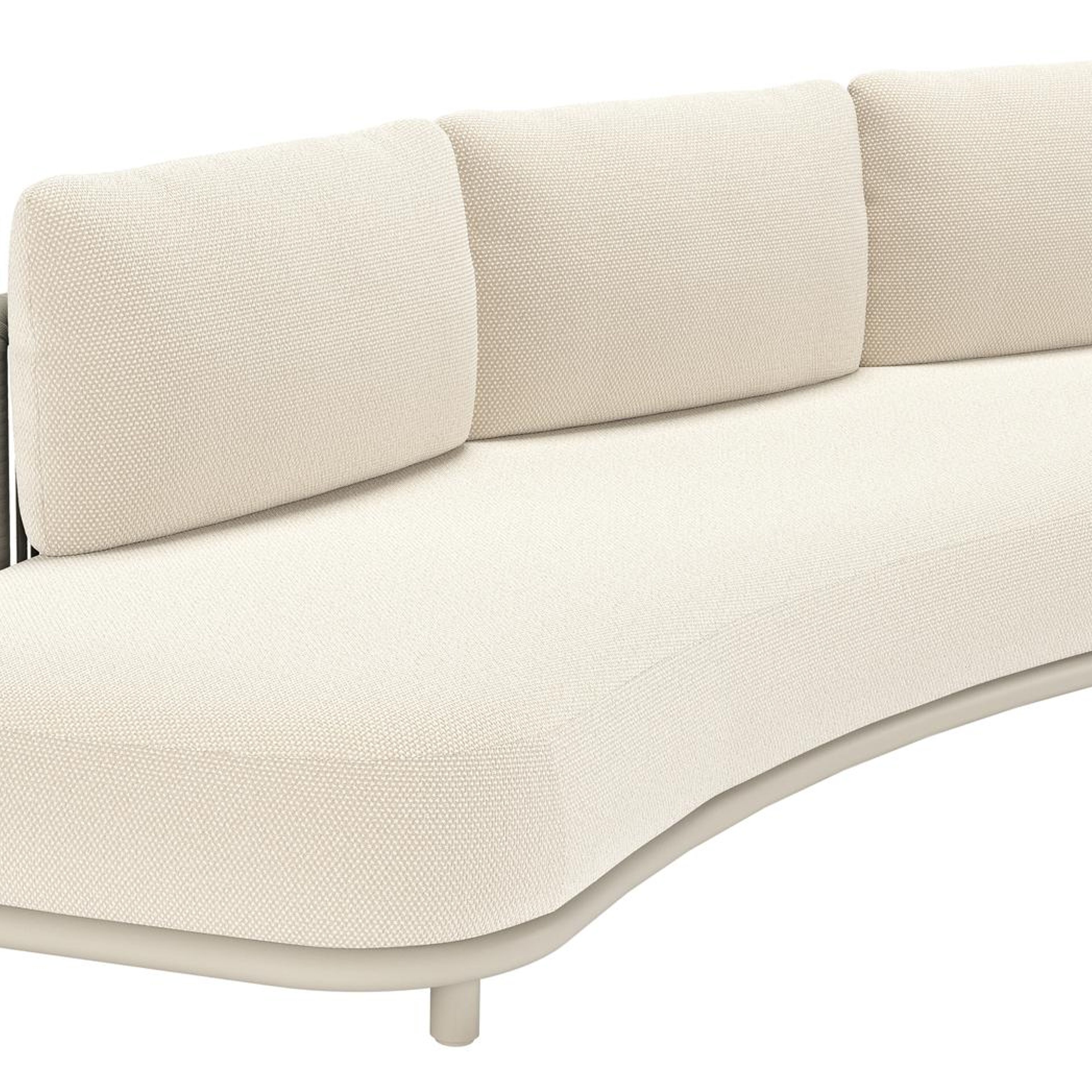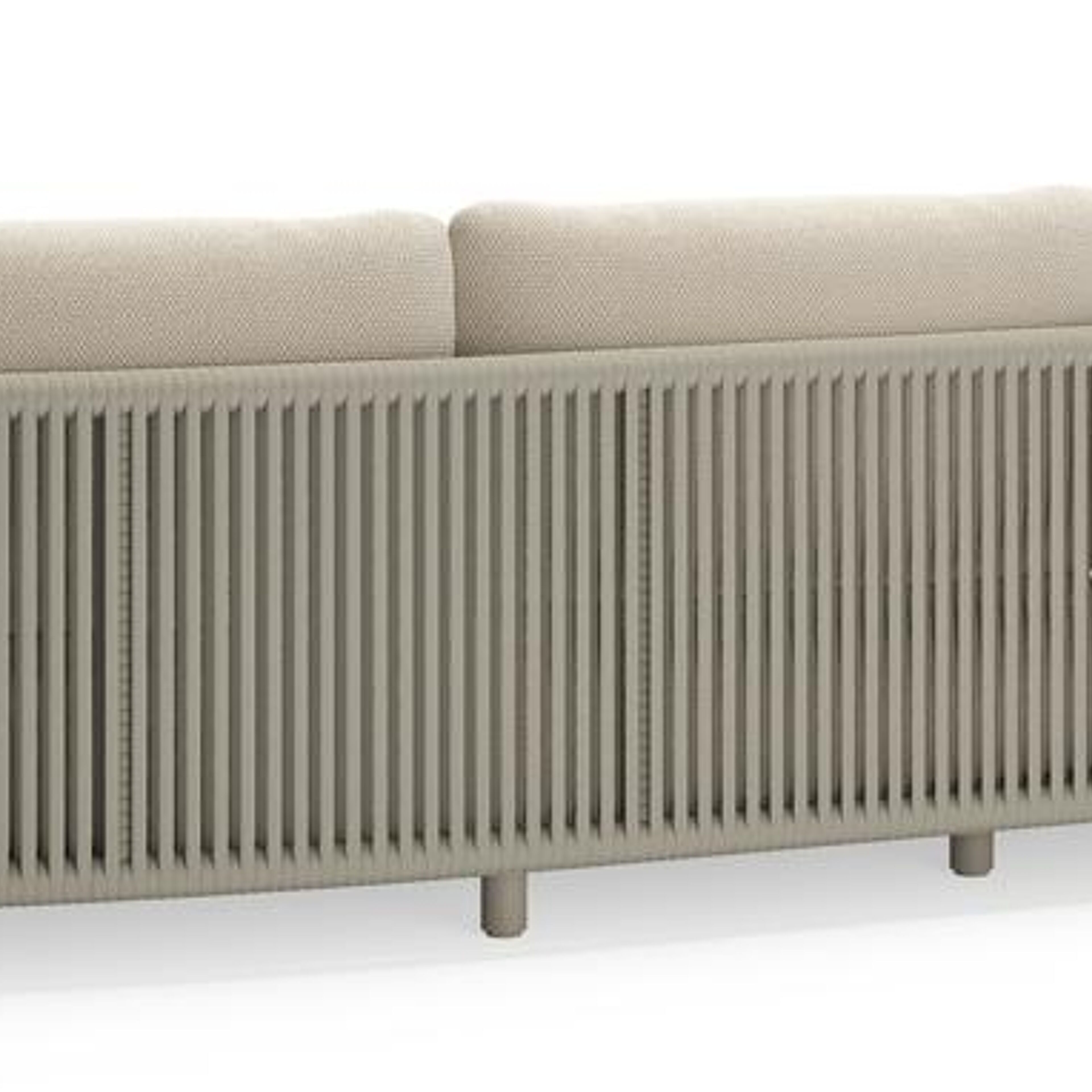 Lomano loungebank in beige aluminium en beige verticaal geweven luxe vlakke rope met Althea Off White all weather cosytica | Exterioo tuinmeubelen