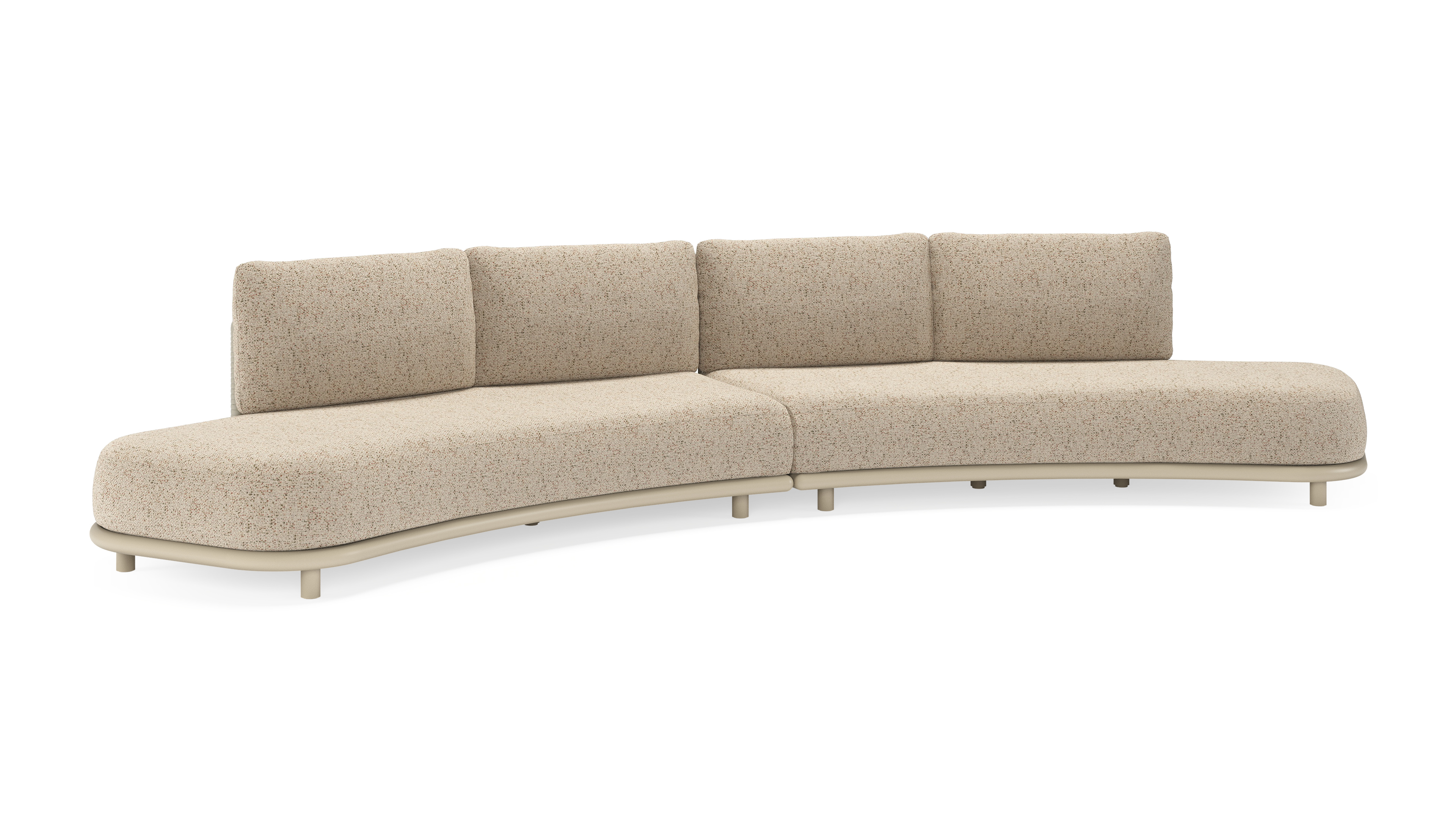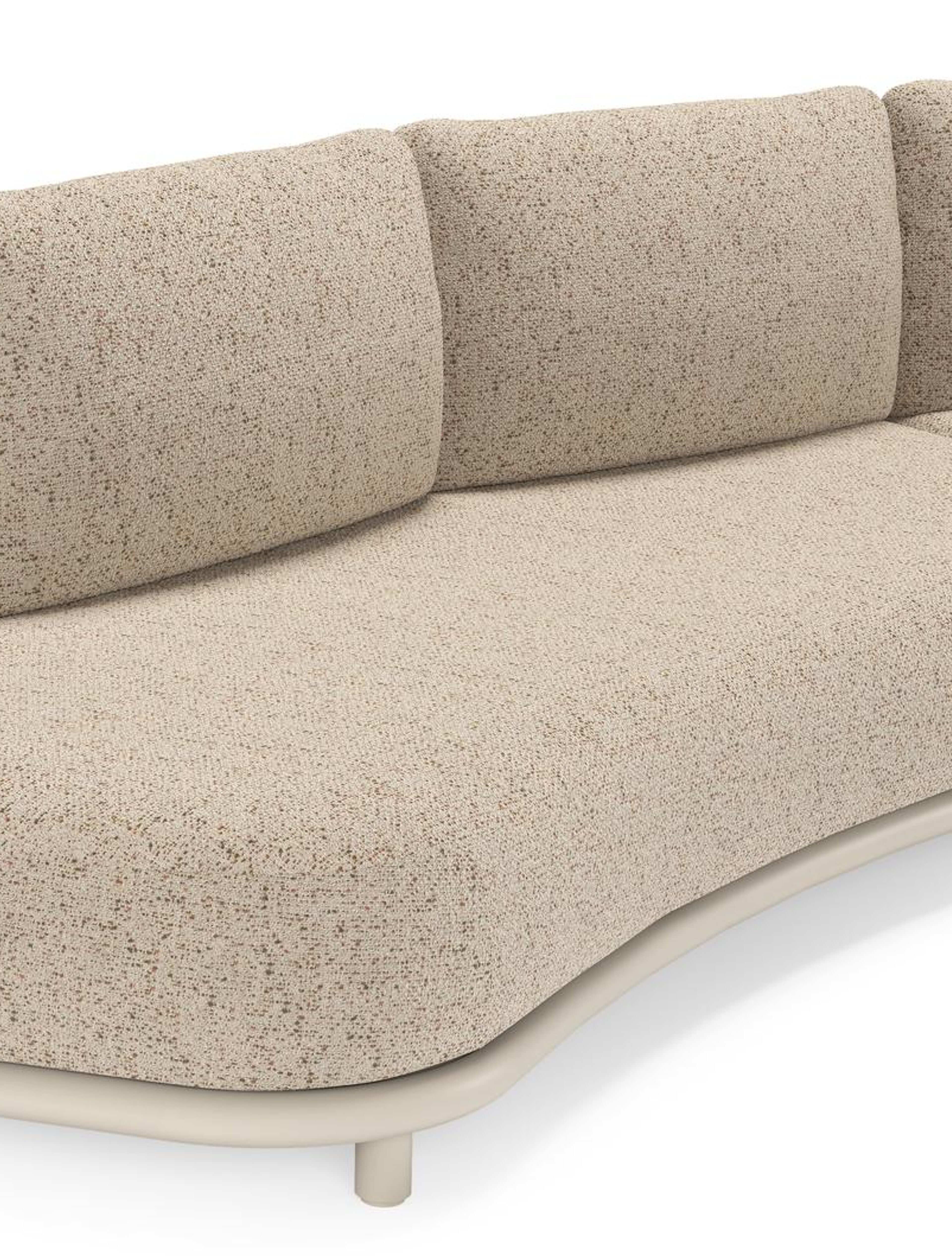 Lomano loungebank in beige aluminium en beige verticaal geweven luxe vlakke rope met Bora Jungle all weather cosytica | Exterioo tuinmeubelen