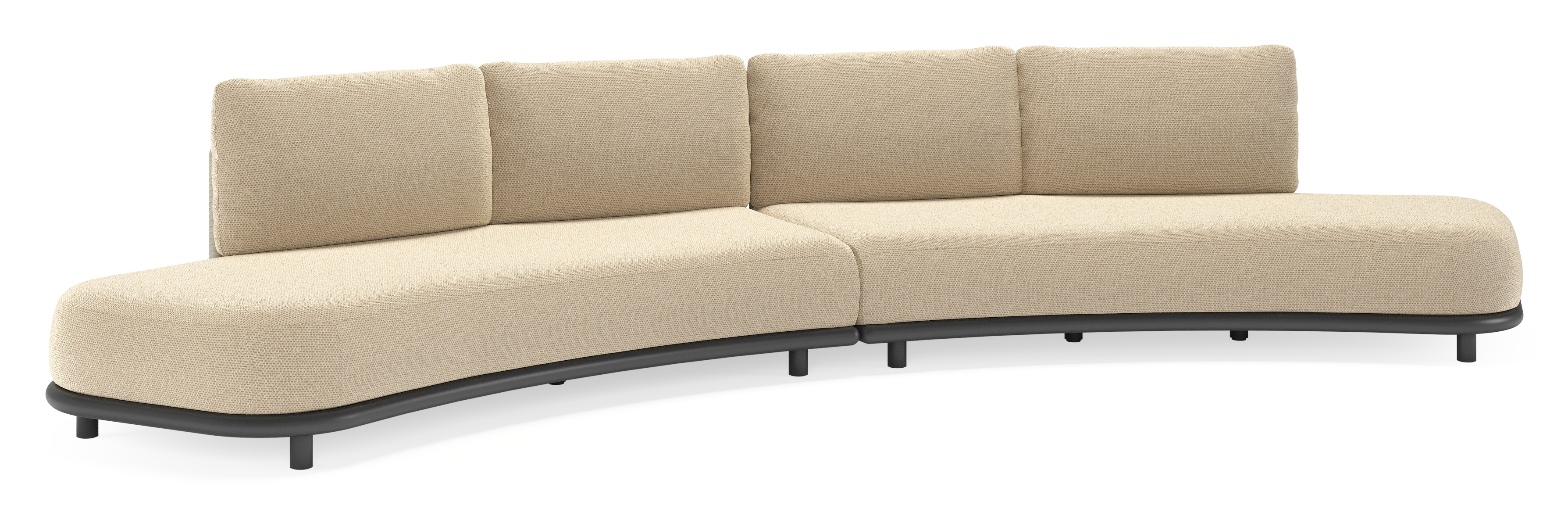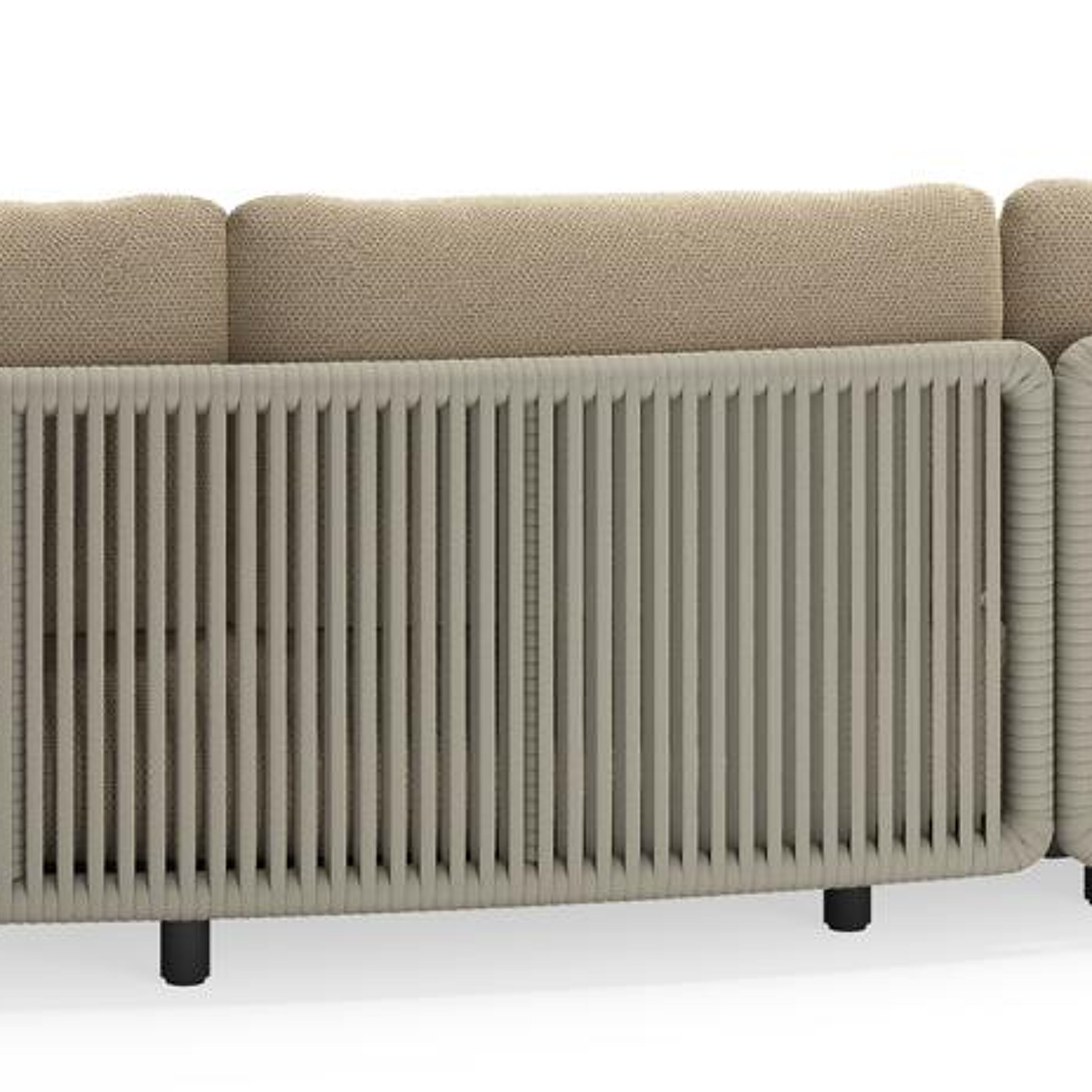 Lomano loungebank in zwart aluminium en beige verticaal geweven luxe vlakke rope met Althea Camel all weather cosytica | Exterioo tuinmeubelen
