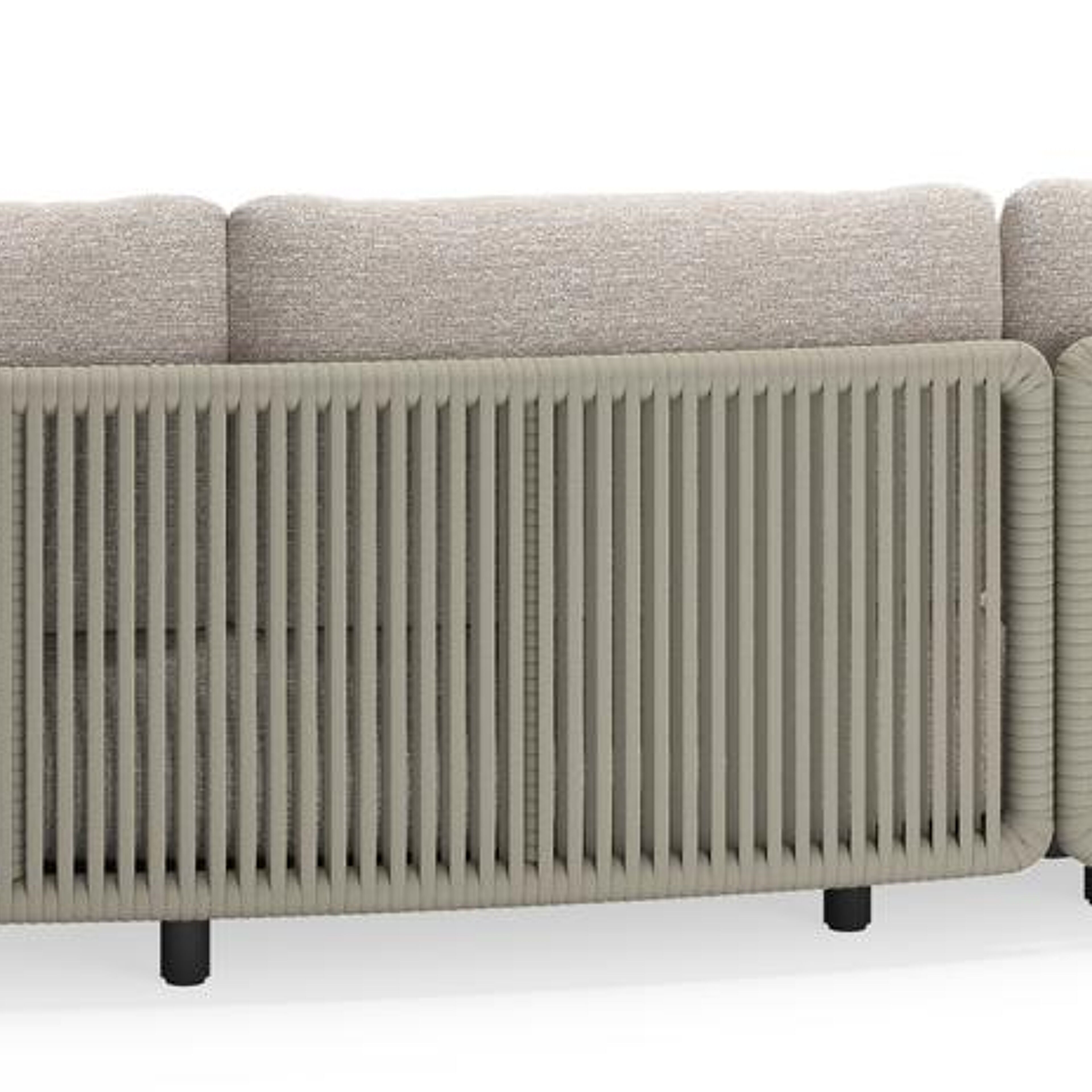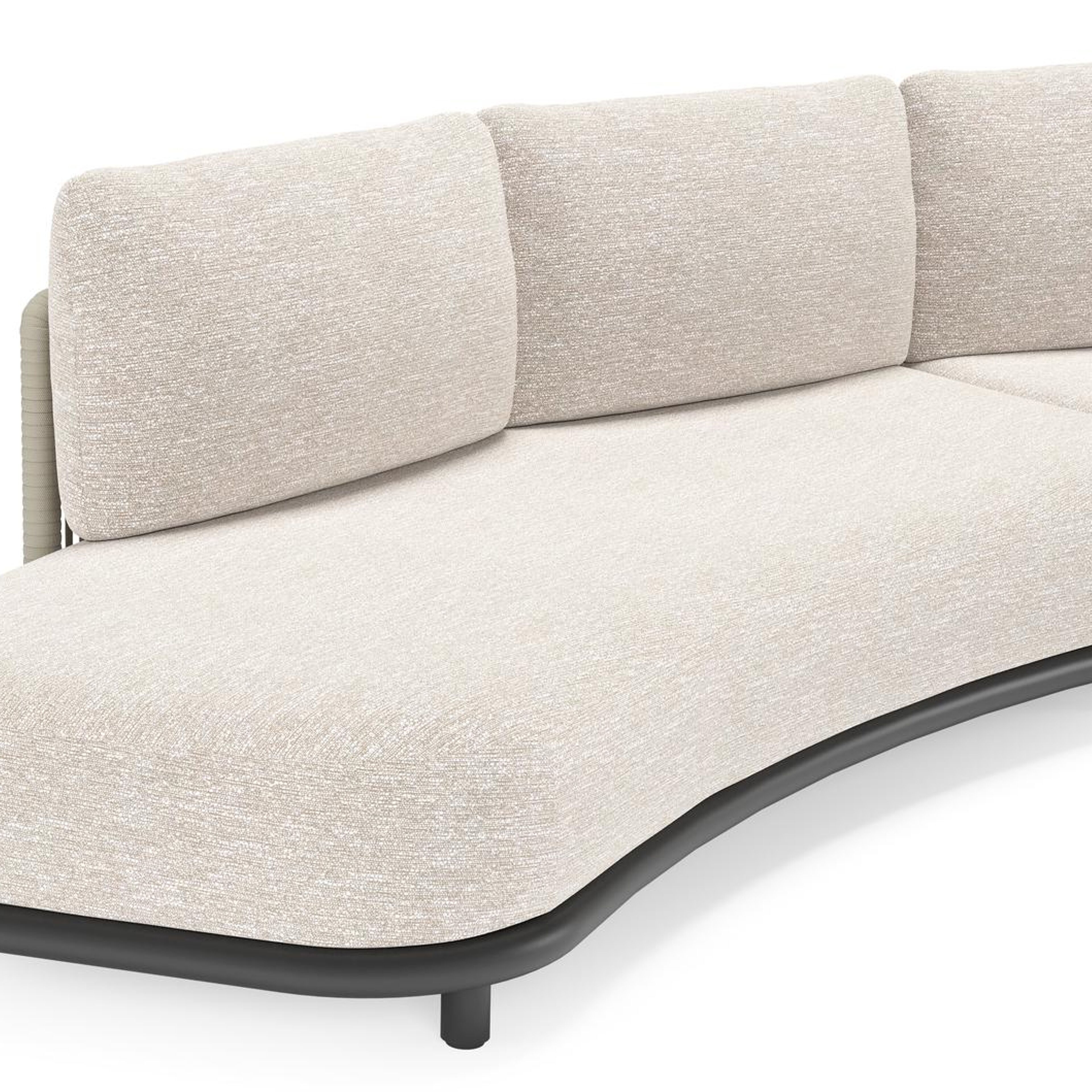 Lomano loungebank in zwart aluminium en beige verticaal geweven luxe vlakke rope met Tundra Sand all weather sunbrella® luxe | Exterioo tuinmeubelen