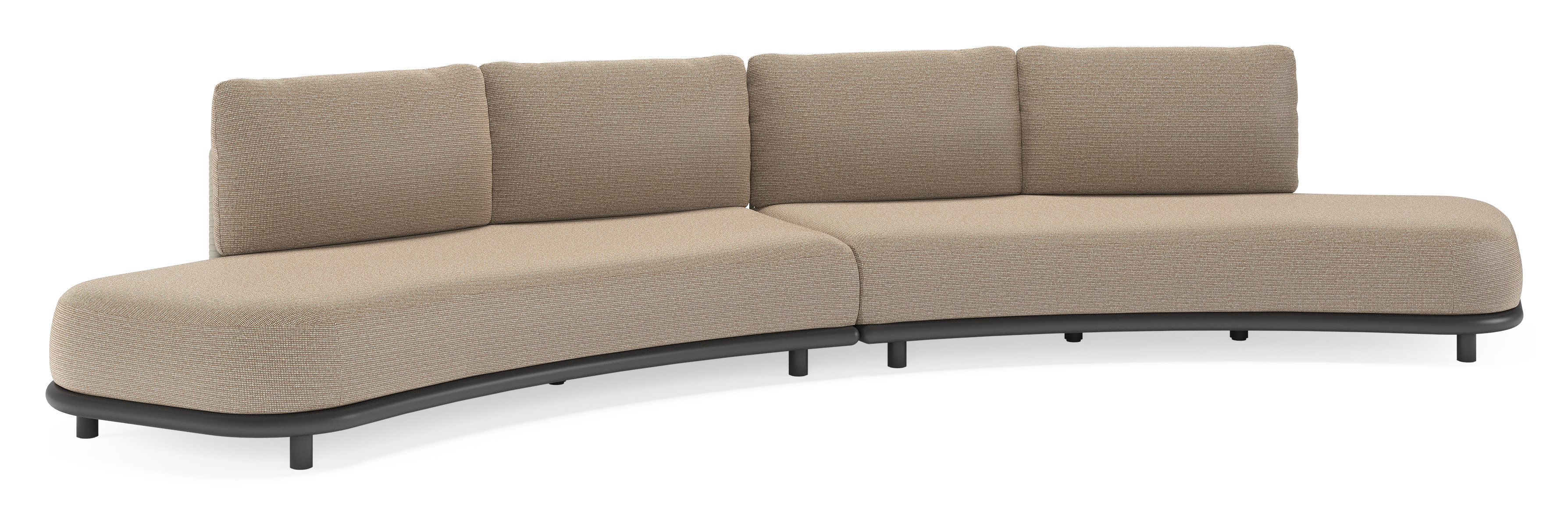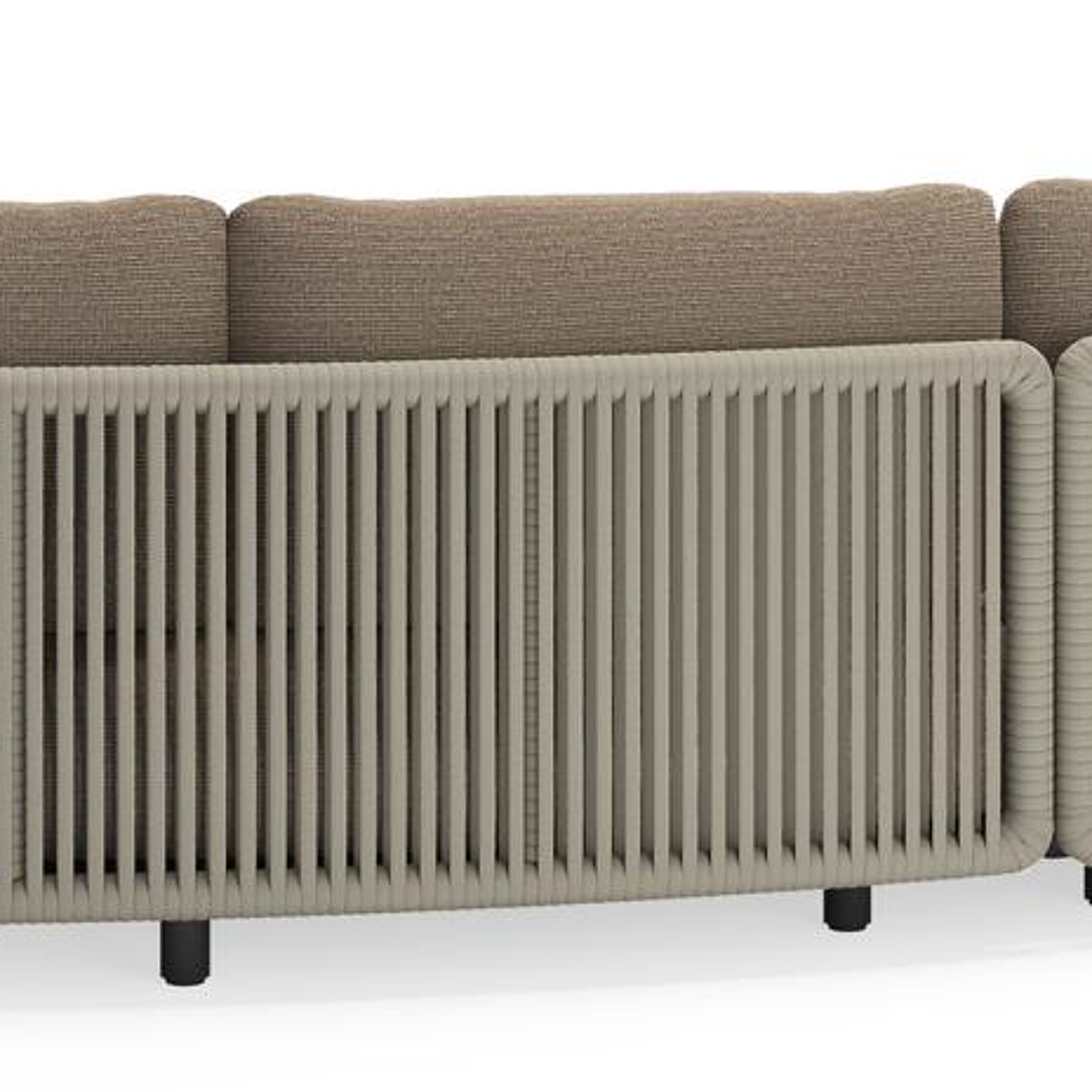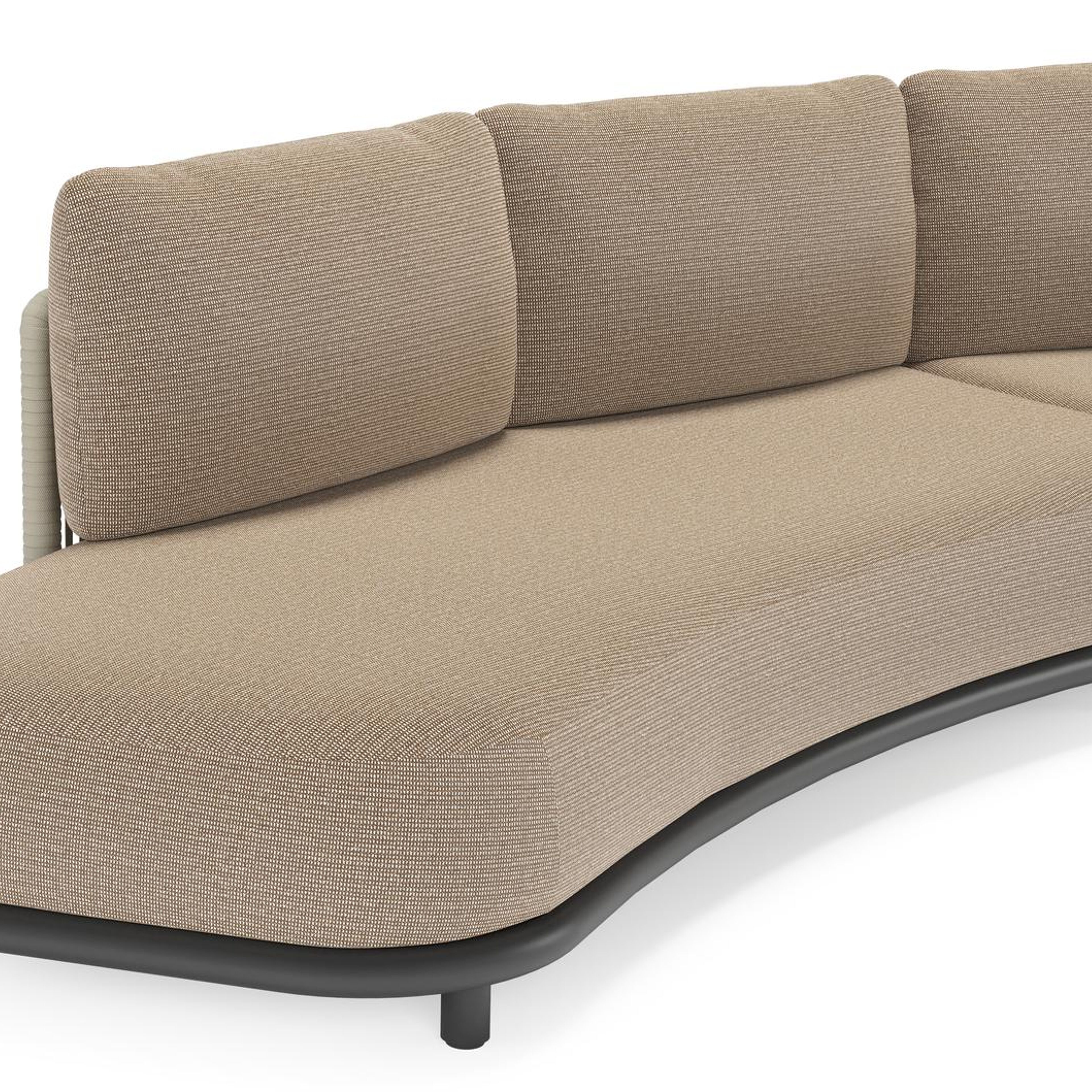 Lomano loungebank in zwart aluminium en beige verticaal geweven luxe vlakke rope met Firenze Earth all weather solica | Exterioo tuinmeubelen