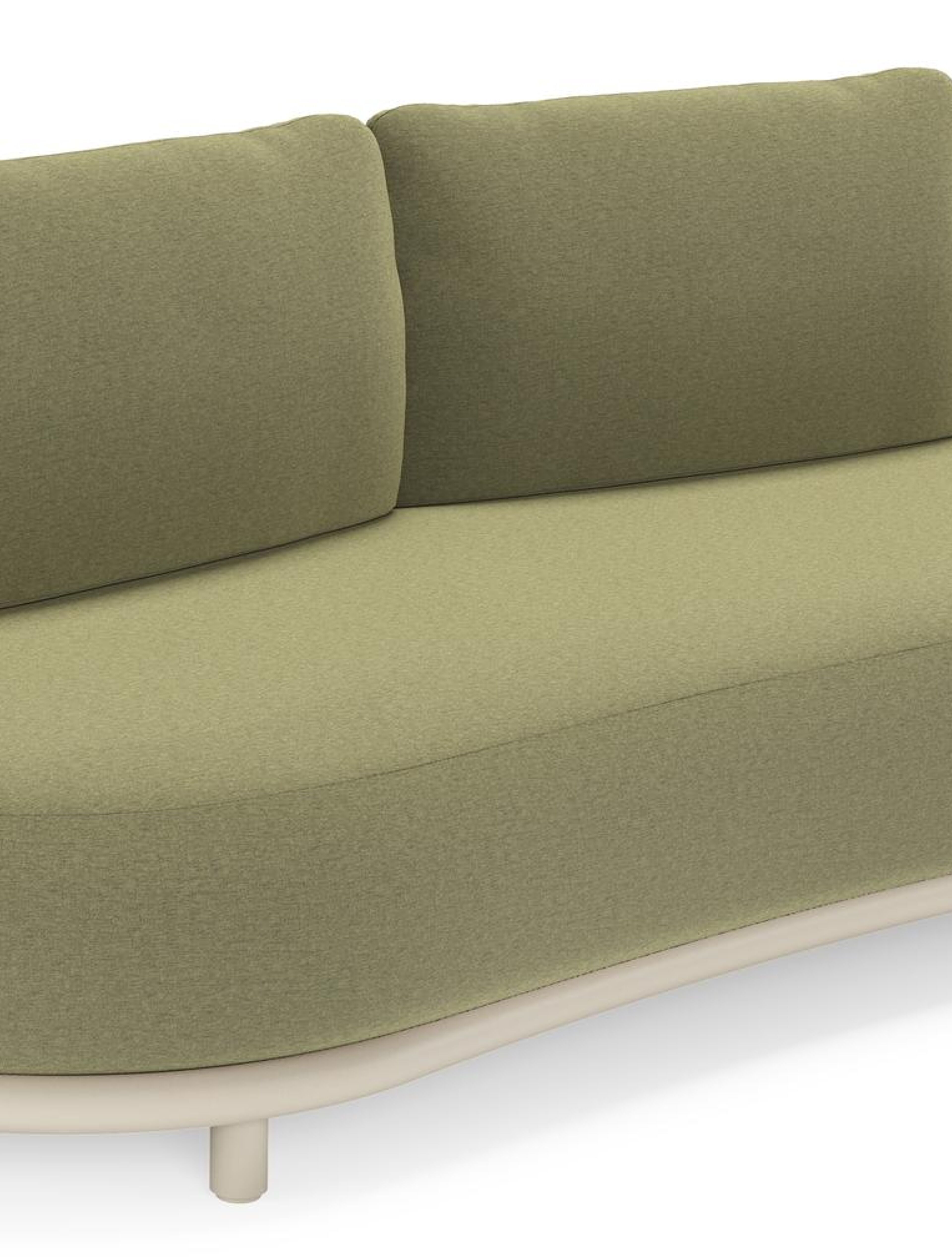 Lomano loungebank in beige aluminium en beige verticaal geweven luxe vlakke rope met Heritage Leaf all weather sunbrella® luxe | Exterioo tuinmeubelen