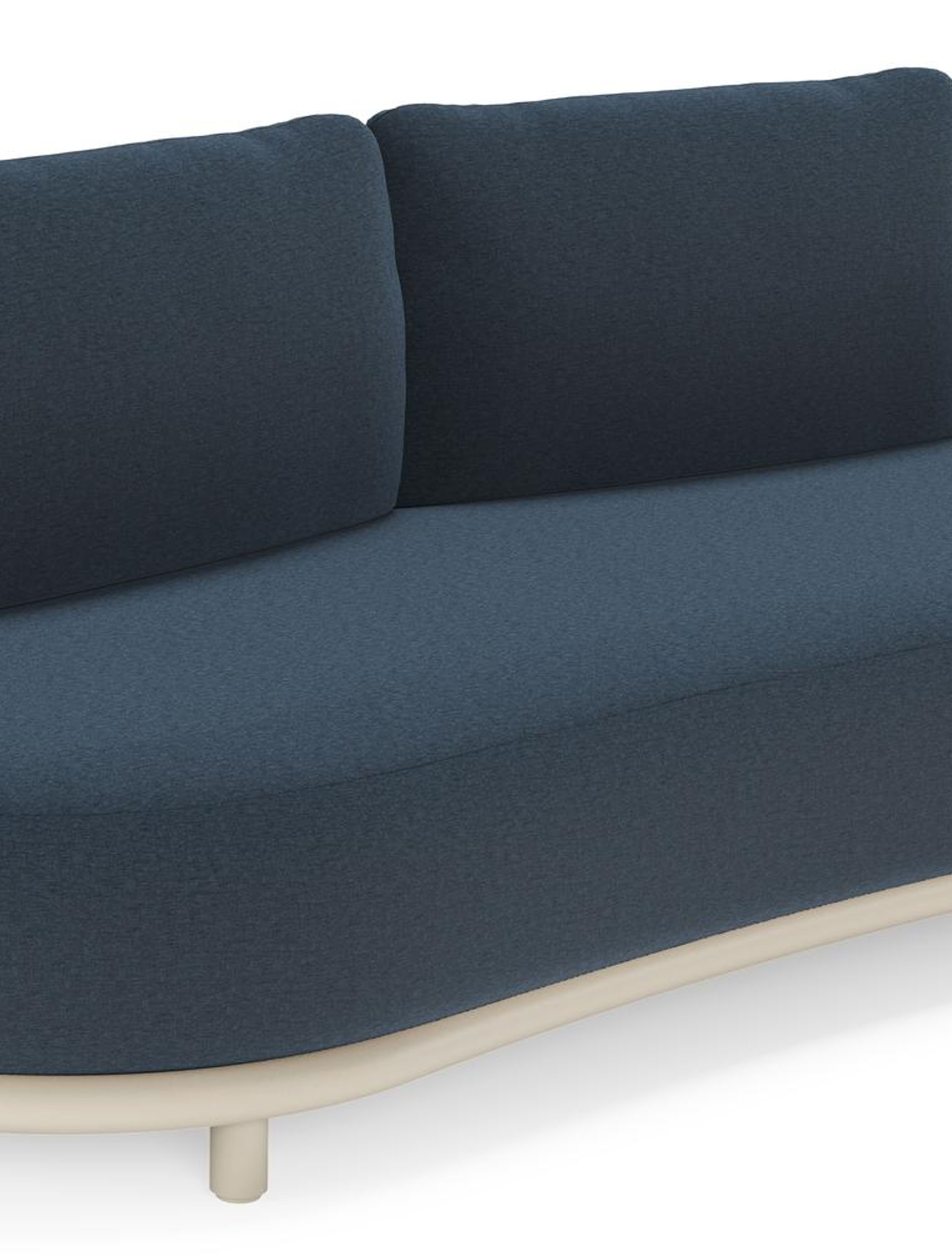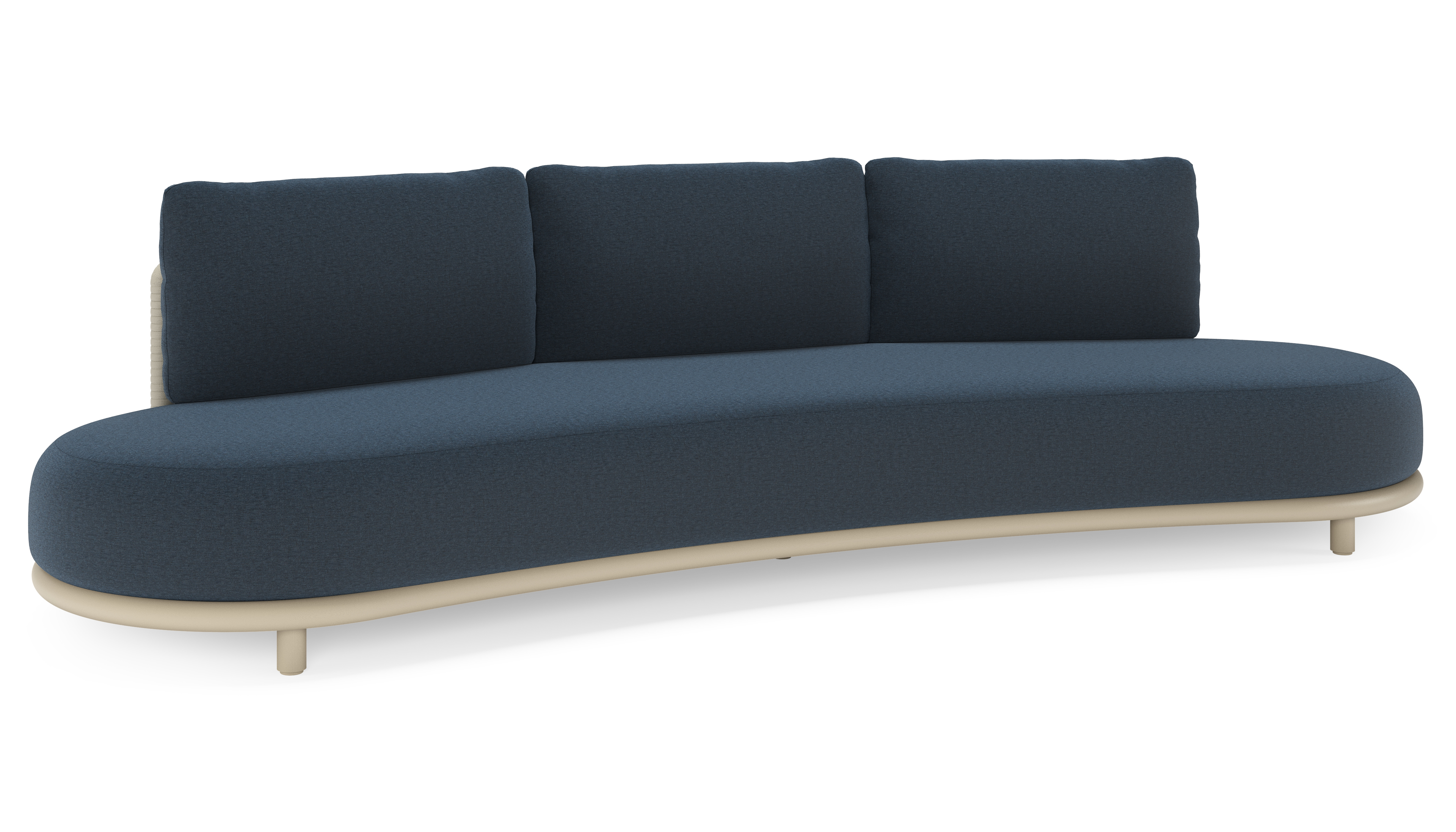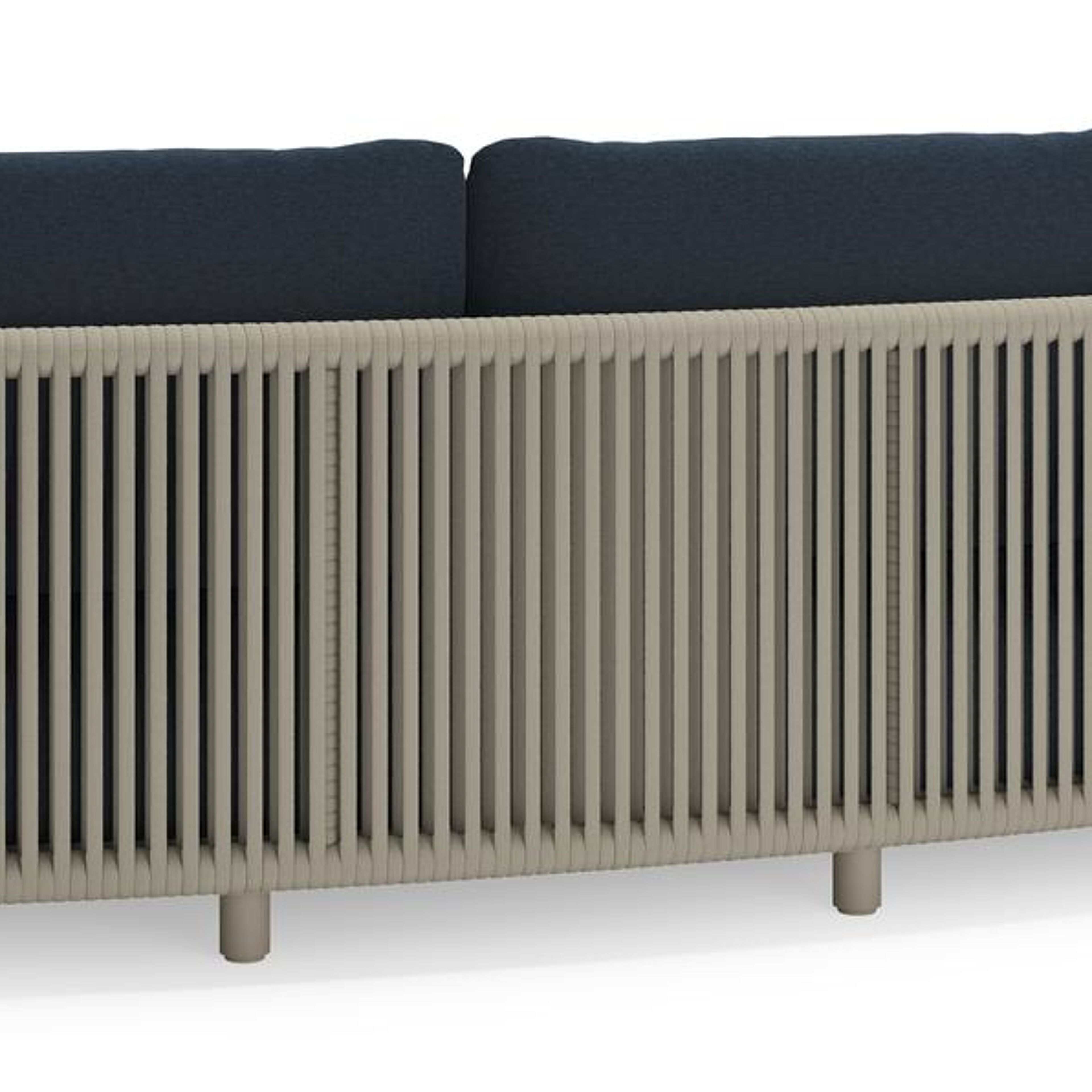 Lomano loungebank in beige aluminium en beige verticaal geweven luxe vlakke rope met Heritage Indigo all weather sunbrella® luxe | Exterioo tuinmeubelen