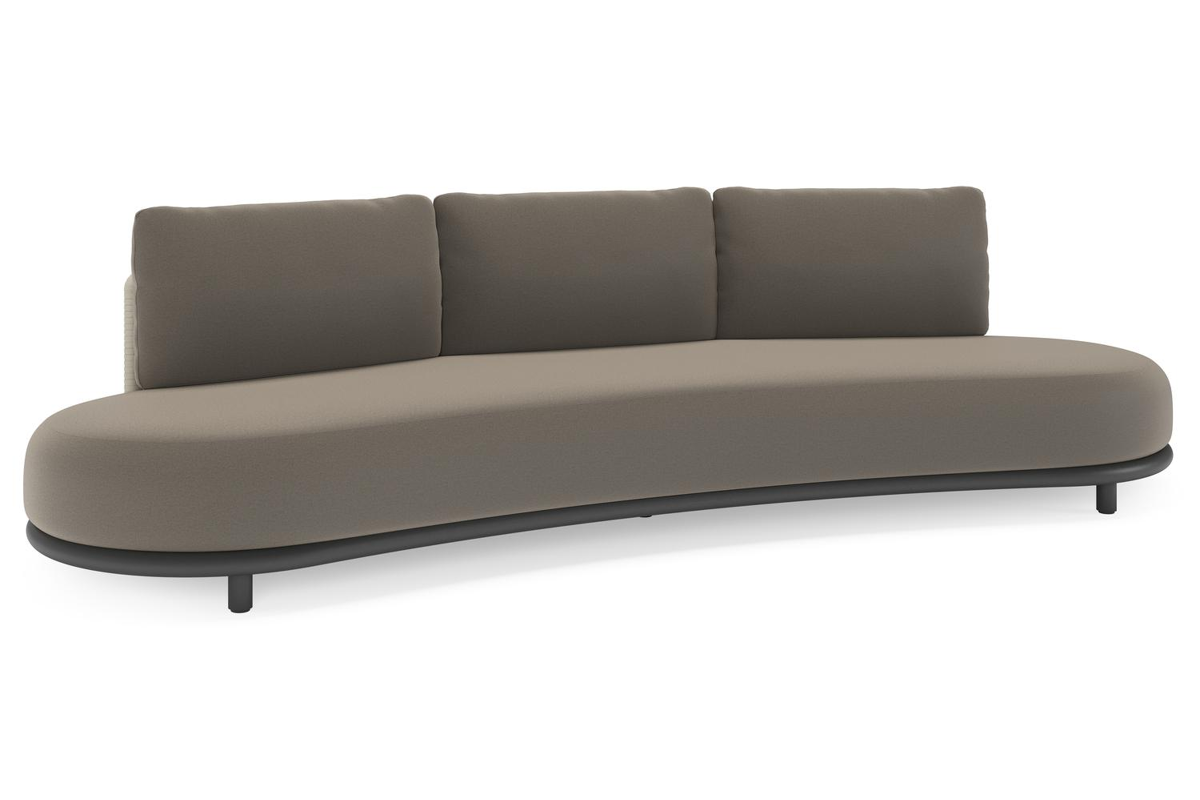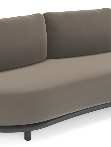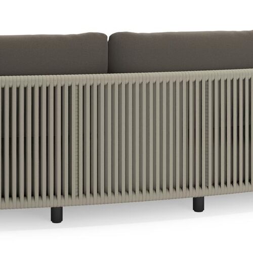 Lomano loungebank in zwart aluminium en beige verticaal geweven luxe vlakke rope met Natte Carbon Beige all weather sunbrella® luxe | Exterioo