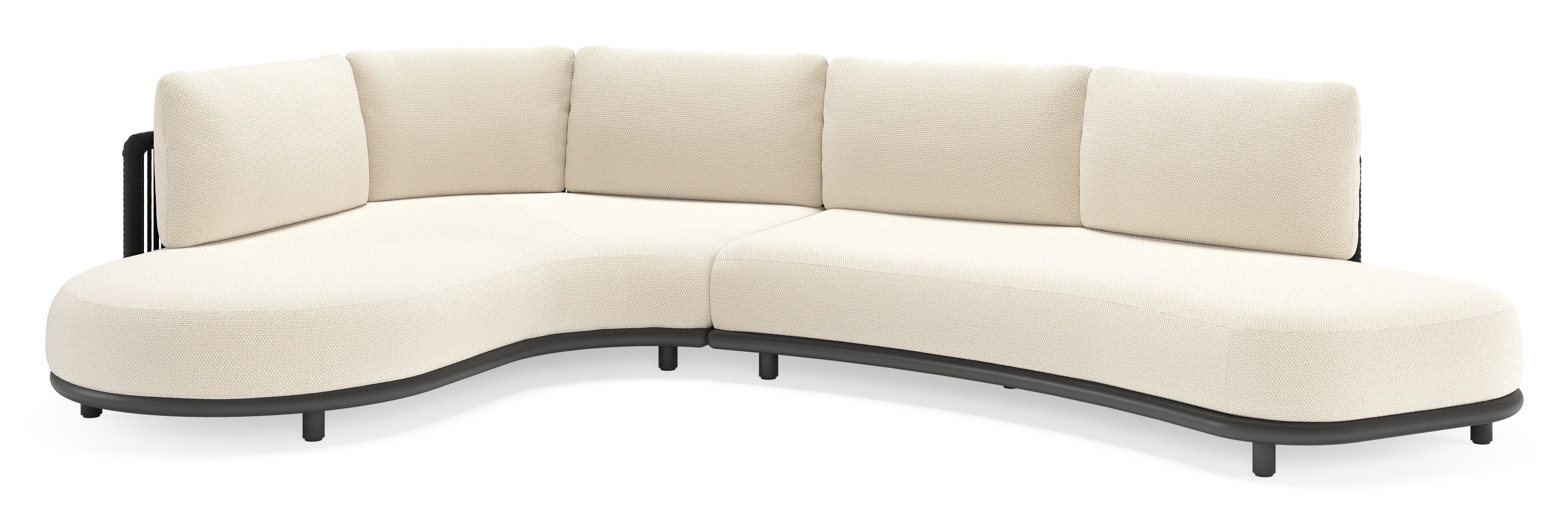 Lomano loungehoek in zwart aluminium en zwart verticaal geweven luxe vlakke rope met althea off white all weather cosytica kussen | Exterioo tuinmeubelen
