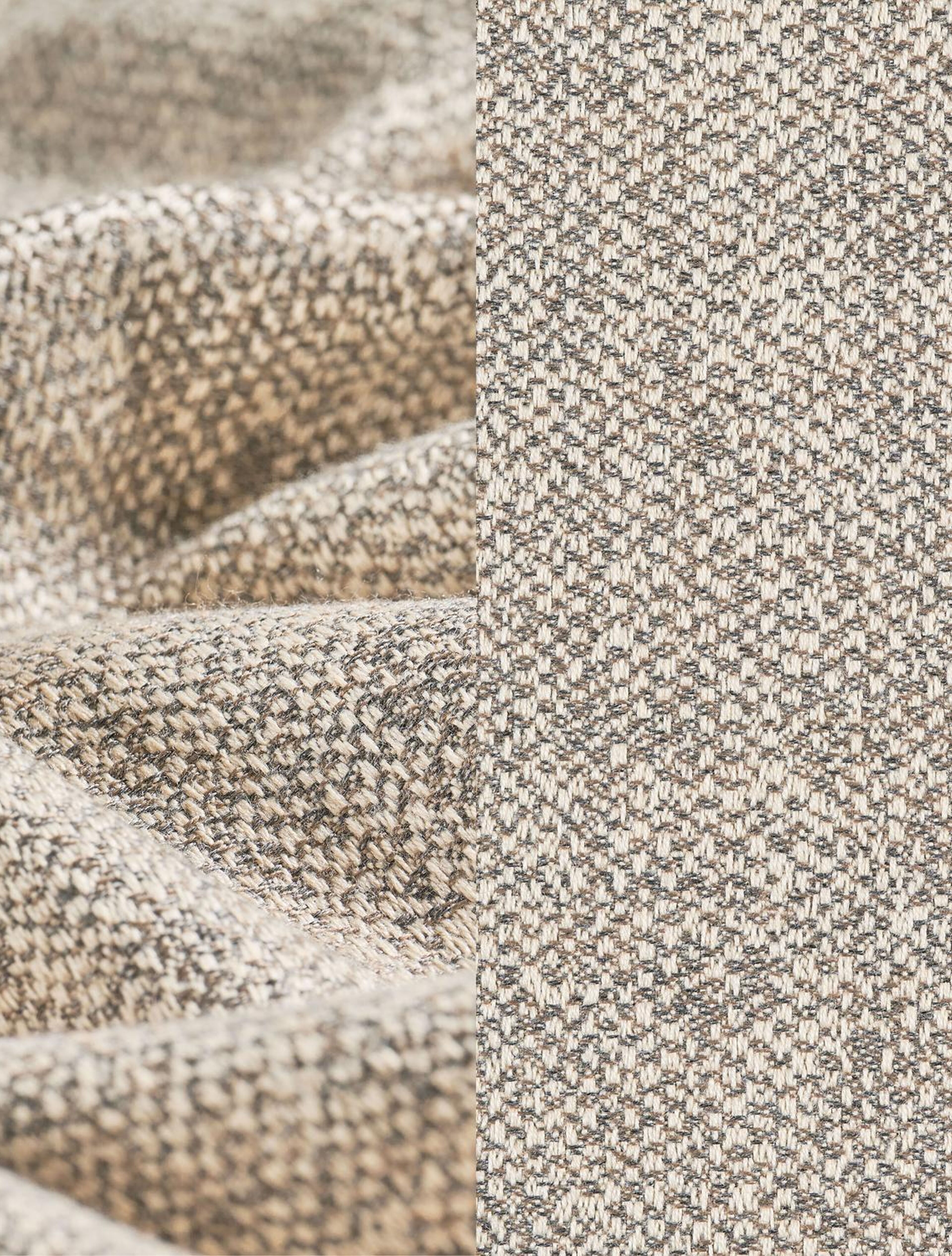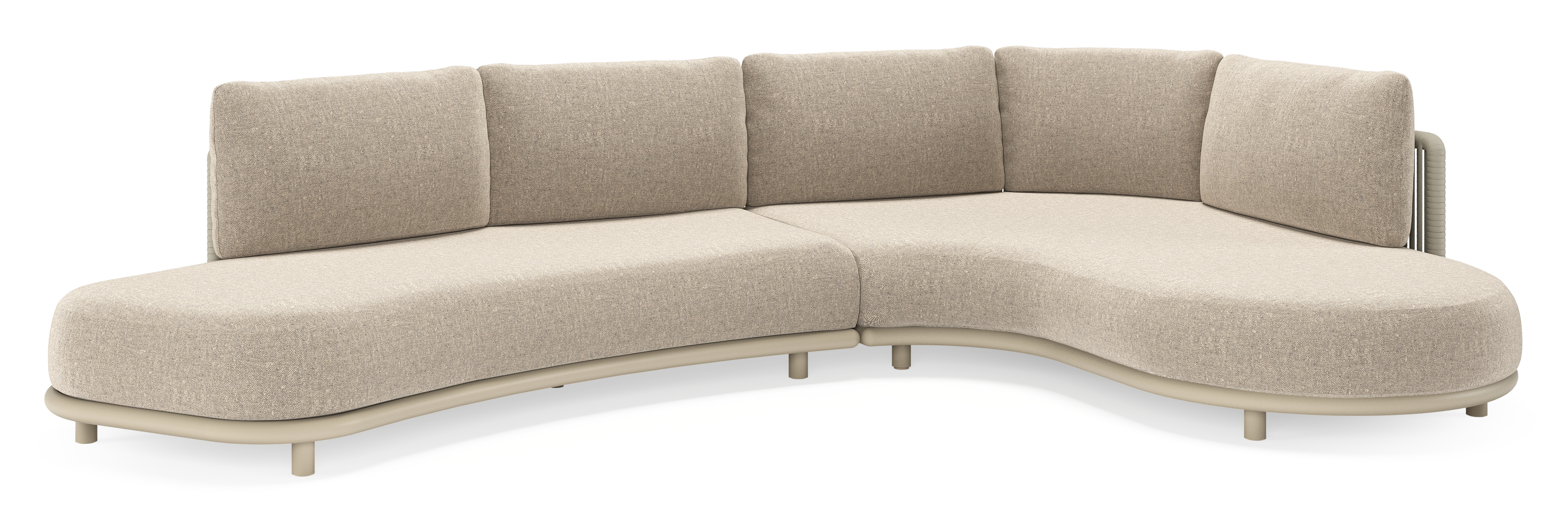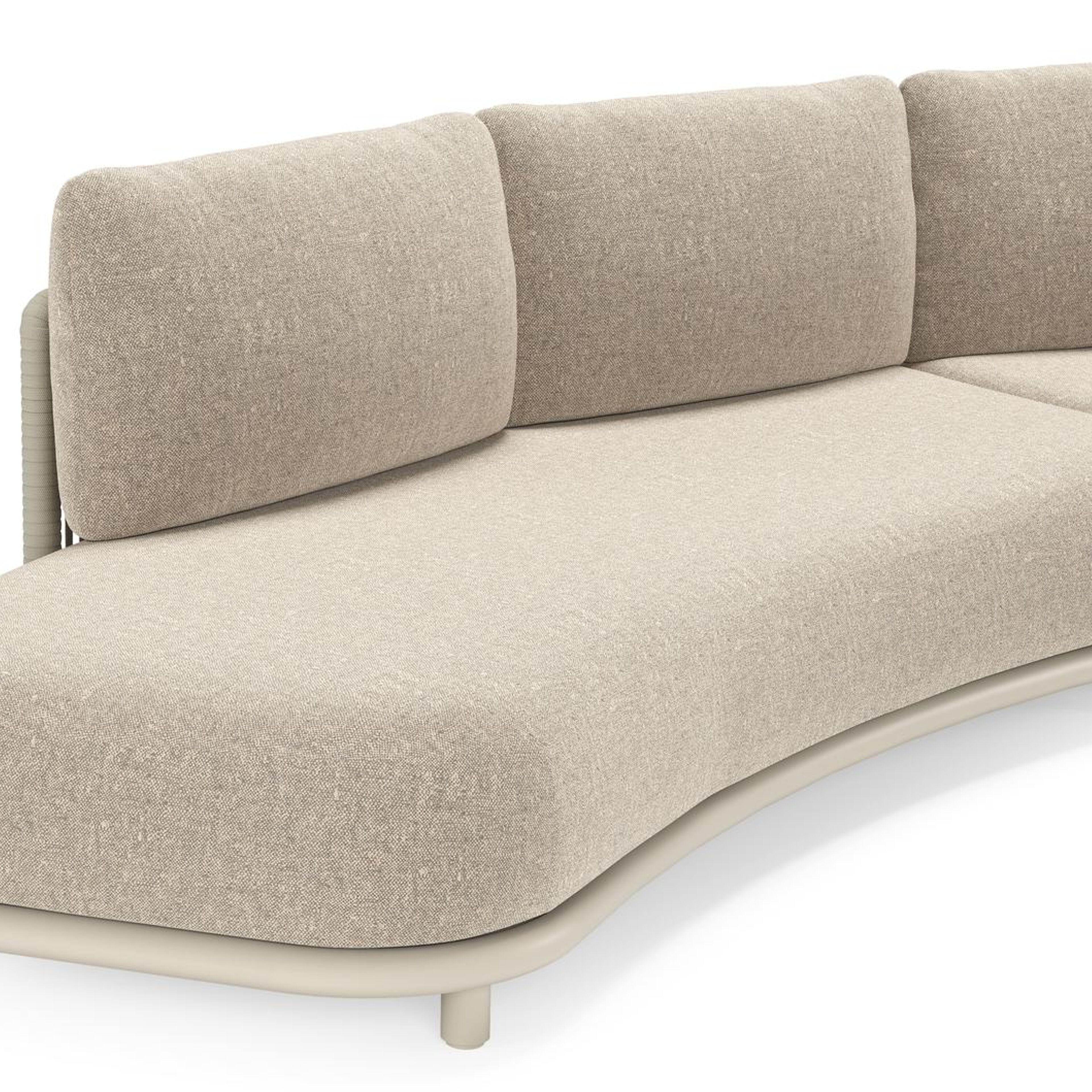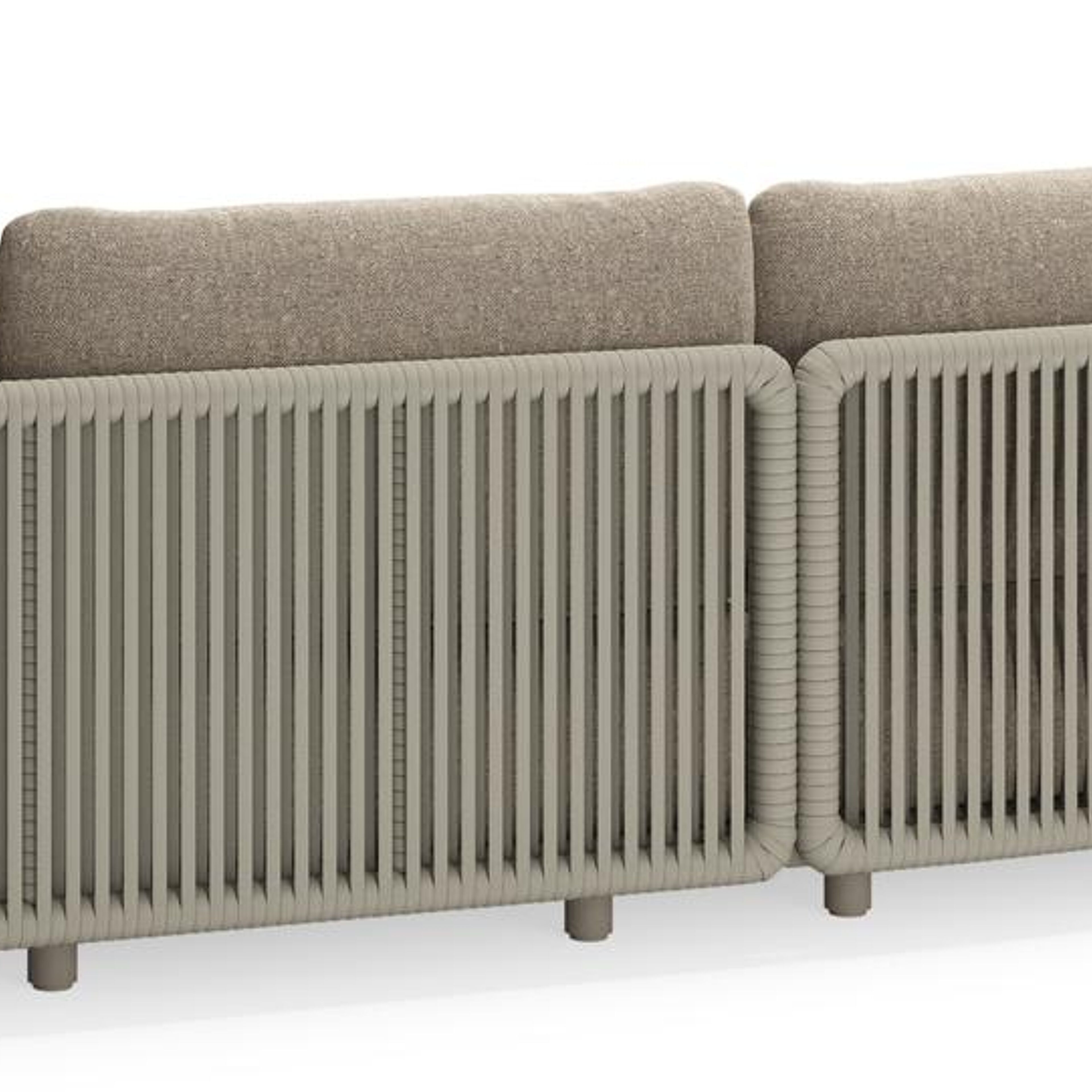 Lomano loungehoek in beige aluminium en beige verticaal geweven luxe vlakke rope met Chartres Pewter all weather sunbrella® luxe | Exterioo tuinmeubelen