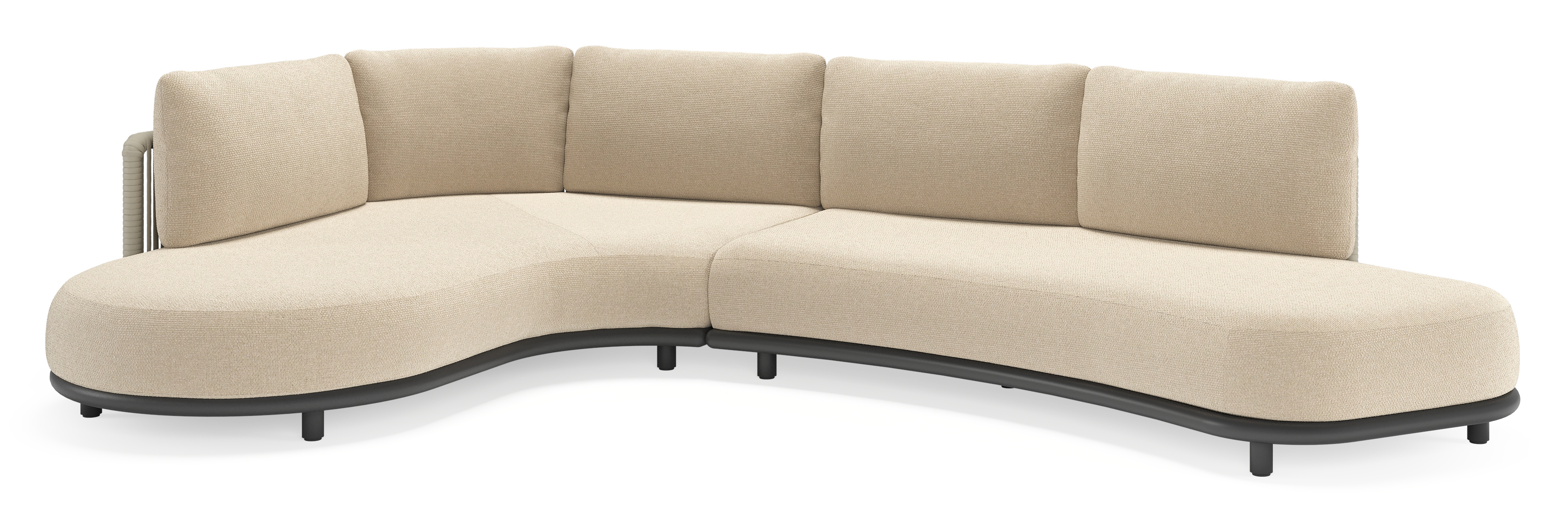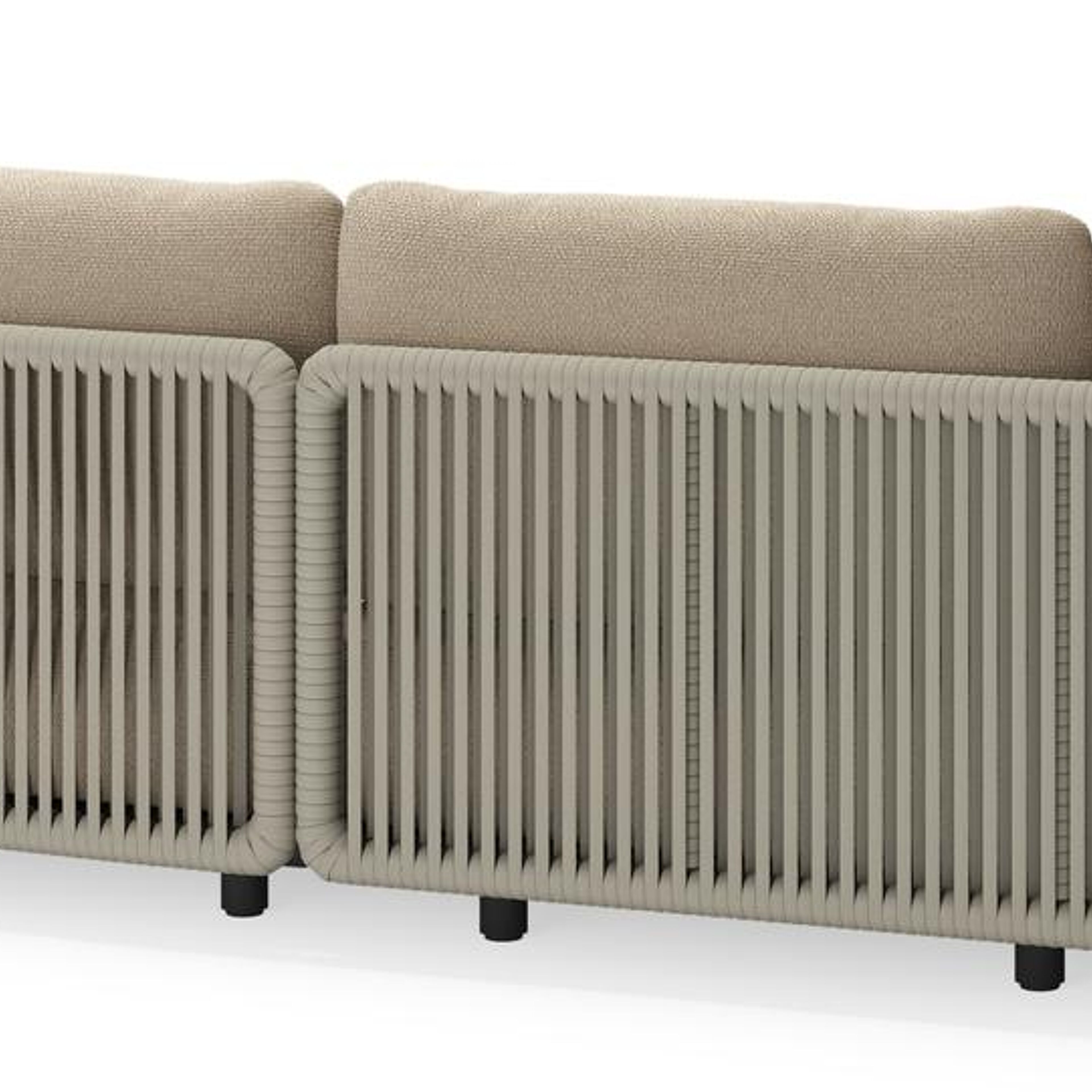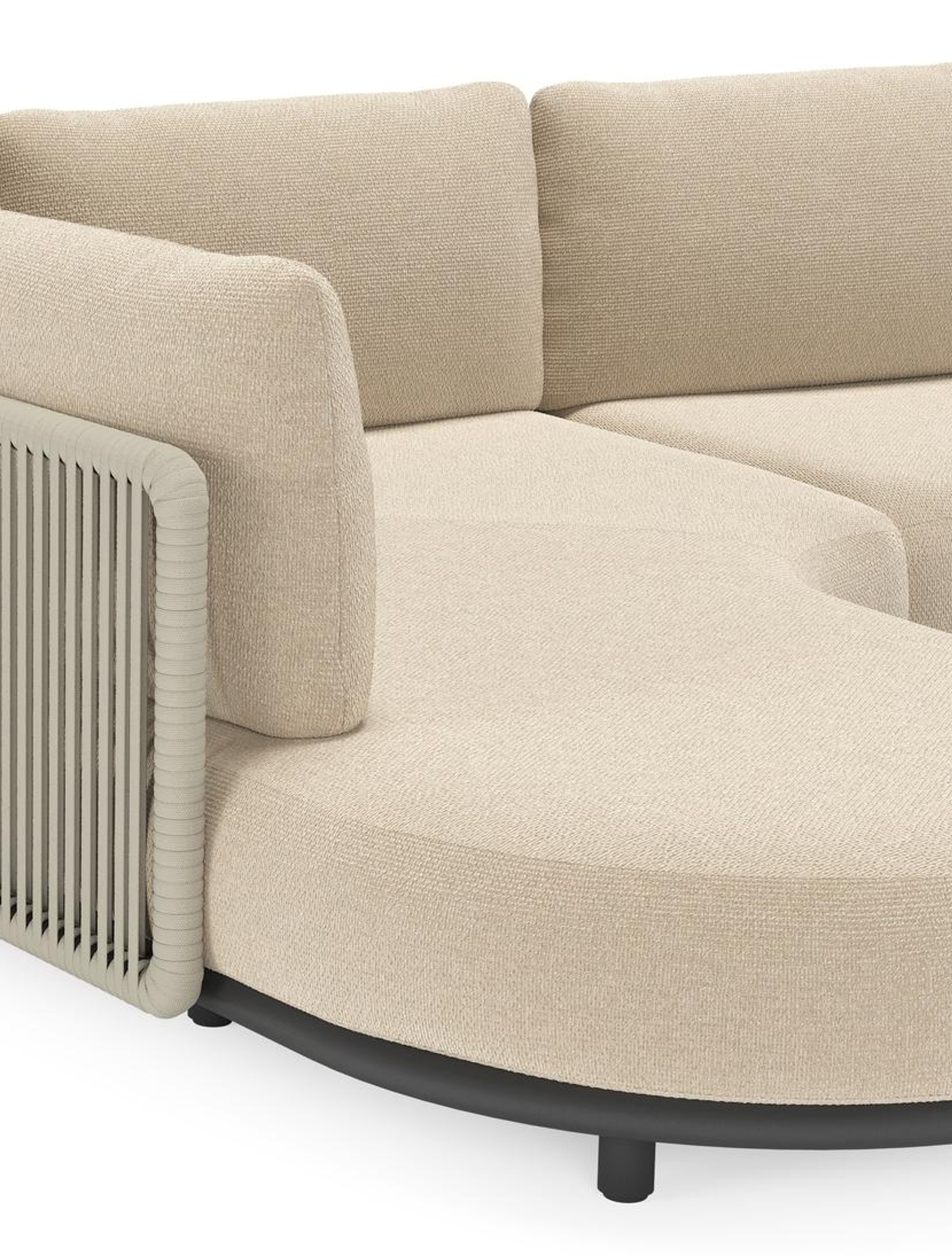 Lomano loungehoek in zwart aluminium en beige verticaal geweven luxe vlakke rope met Althea Chalk all weather cosytica | Exterioo tuinmeubelen
