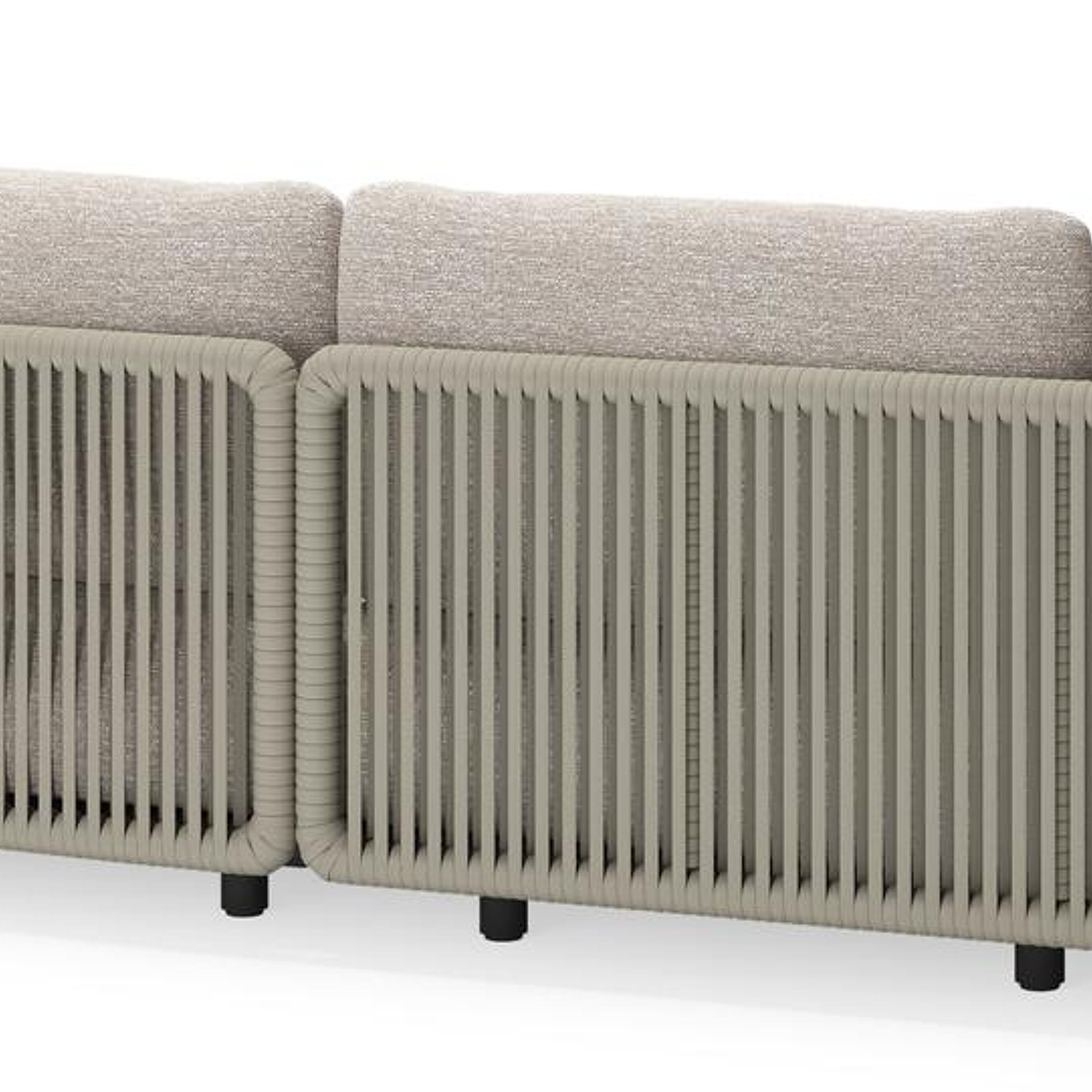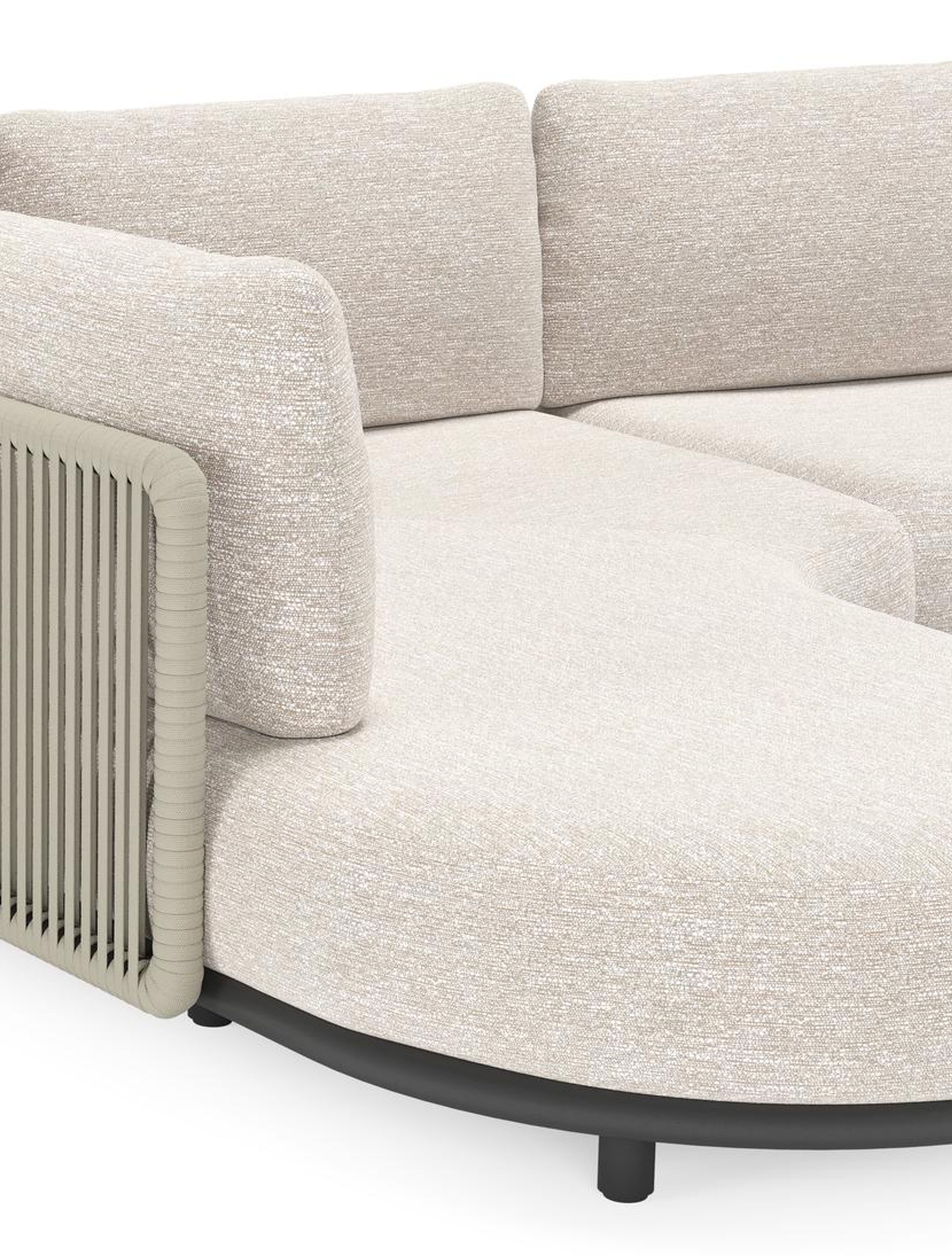 Lomano loungehoek in zwart aluminium en beige verticaal geweven luxe vlakke rope met Tundra Sand all weather sunbrella® luxe | Exterioo tuinmeubelen