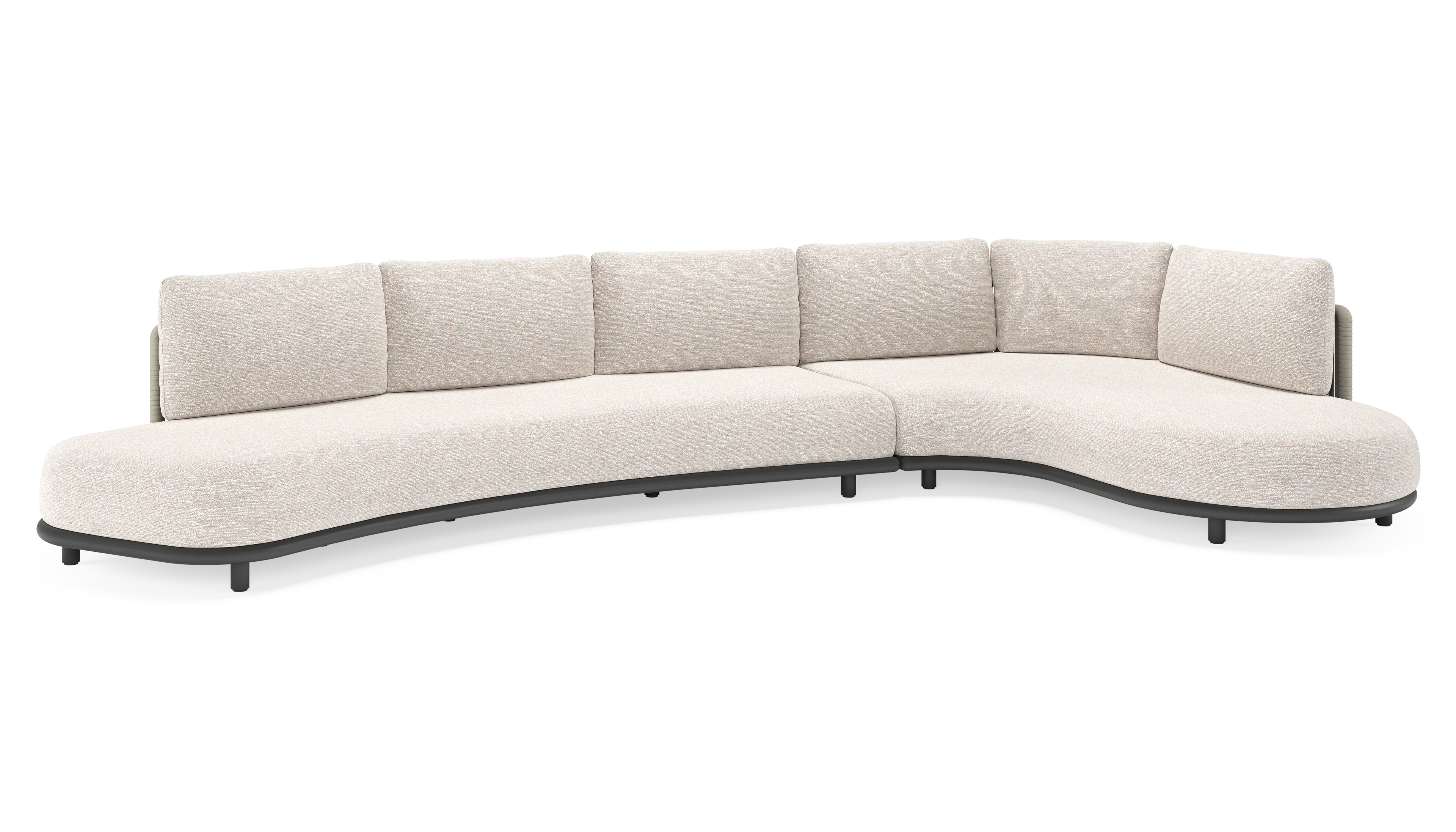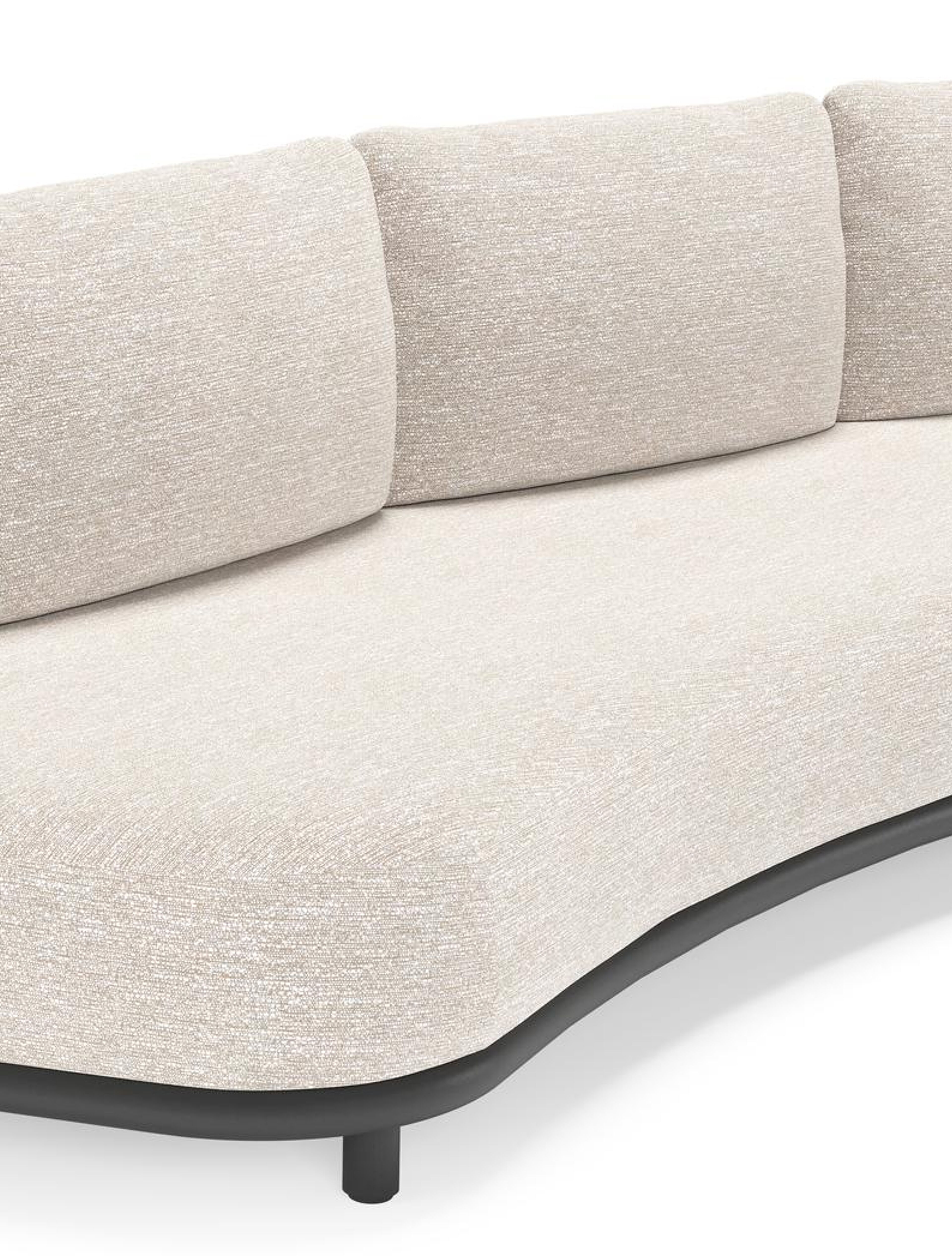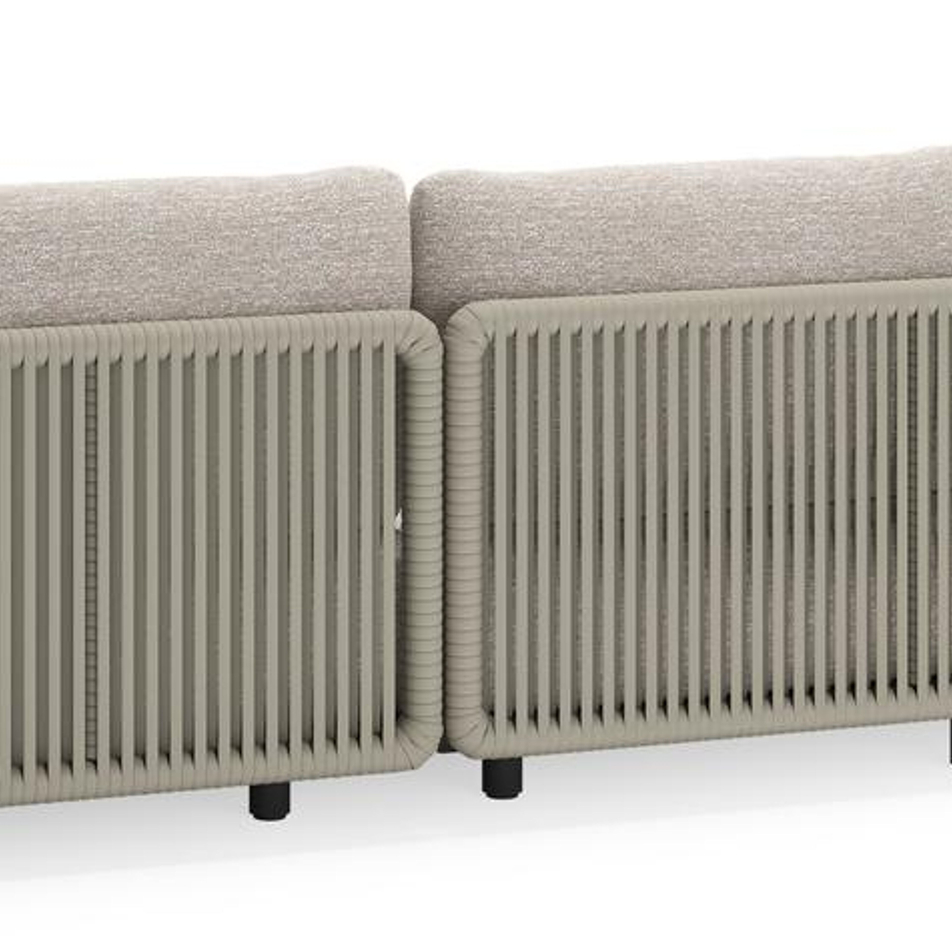 Lomano loungehoek in zwart aluminium en beige verticaal geweven luxe vlakke rope met Tundra Sand all weather sunbrella® luxe | Exterioo tuinmeubelen