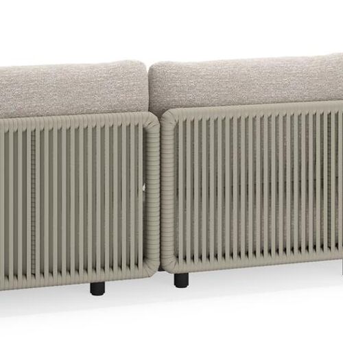 Lomano loungehoek in zwart aluminium en beige verticaal geweven luxe vlakke rope met Tundra Sand all weather sunbrella® luxe | Exterioo