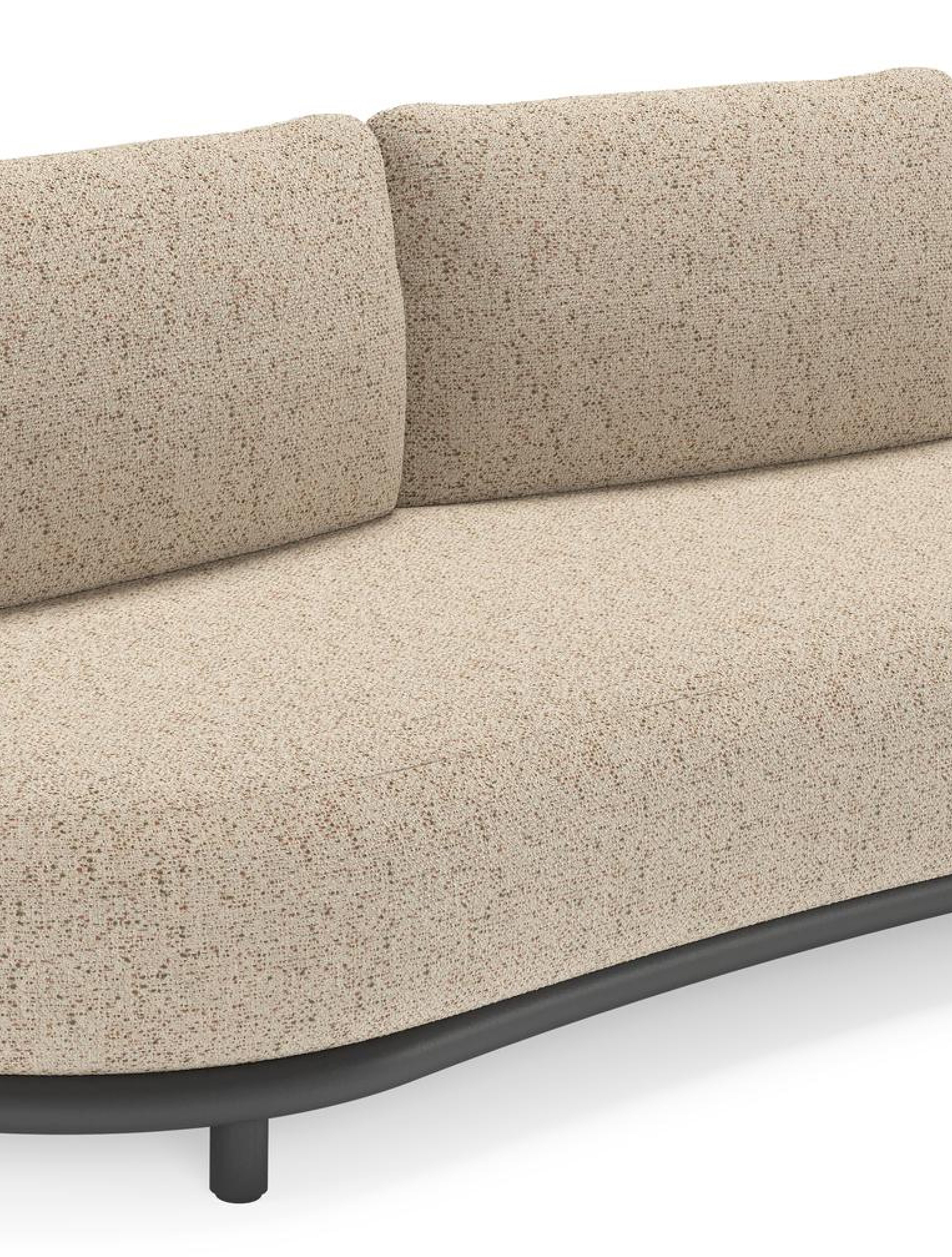 Lomano loungeset in zwart aluminium en beige verticaal geweven luxe vlakke rope met Bora Jungle all weather cosytica | Exterioo tuinmeubelen