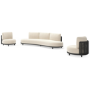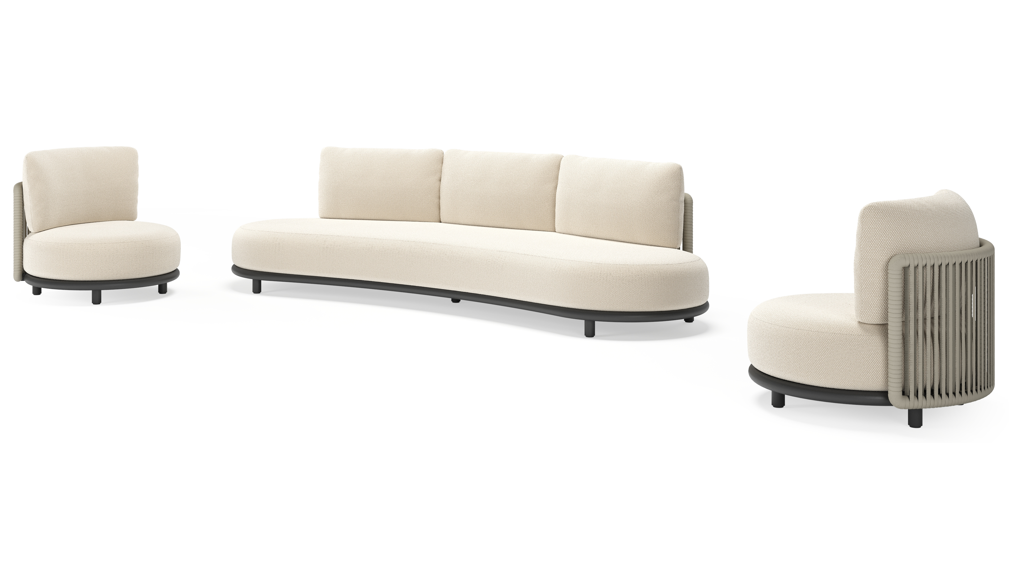 Lomano loungeset in zwart aluminium en beige verticaal geweven luxe vlakke rope met Althea Off White all weather cosytica | Exterioo tuinmeubelen
