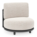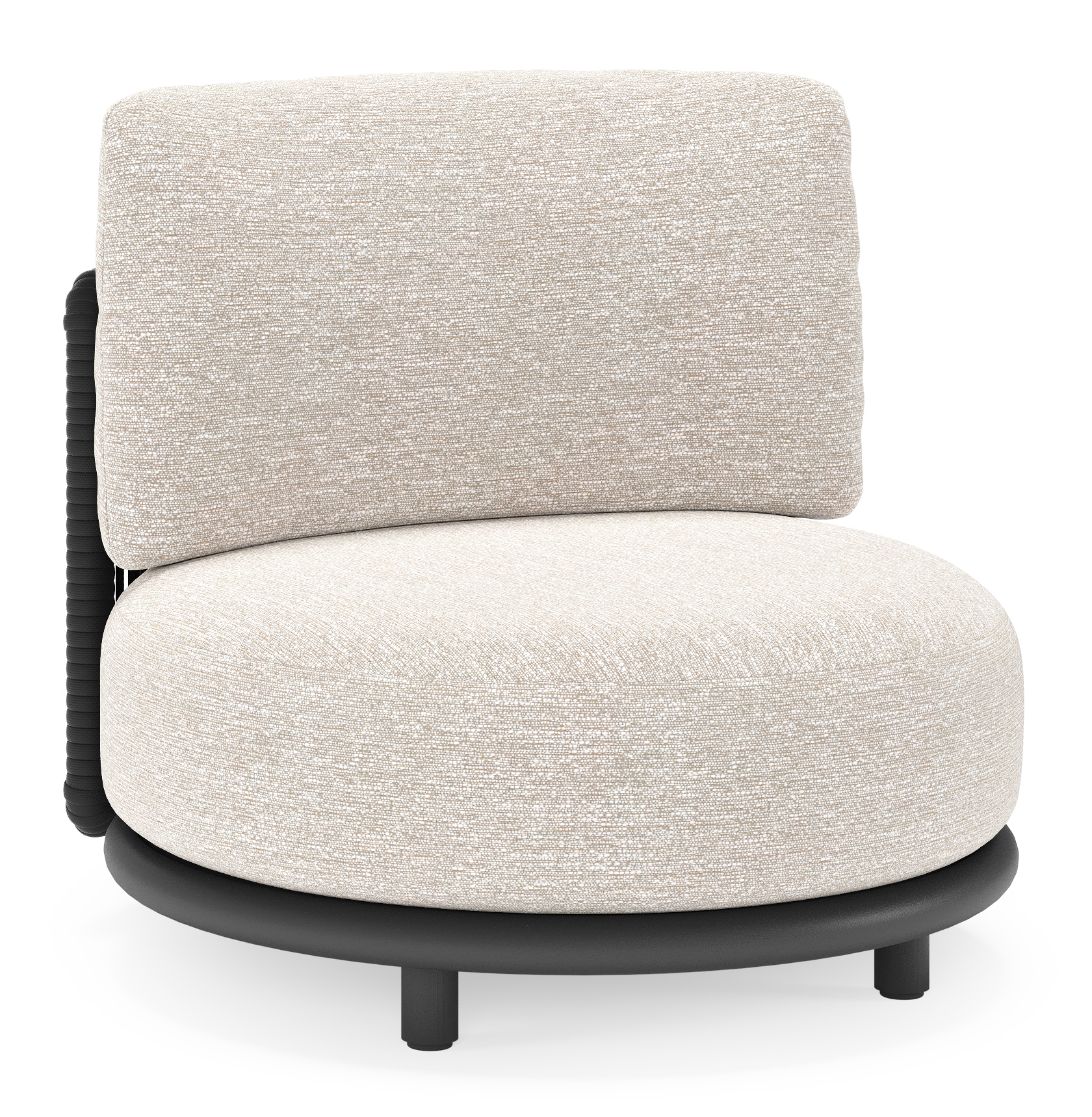 Lomano loungestoel in zwart aluminium en beige verticaal geweven luxe vlakke rope met tundra sand all weather sunbrella® luxe kussen | Exterioo tuinmeubelen