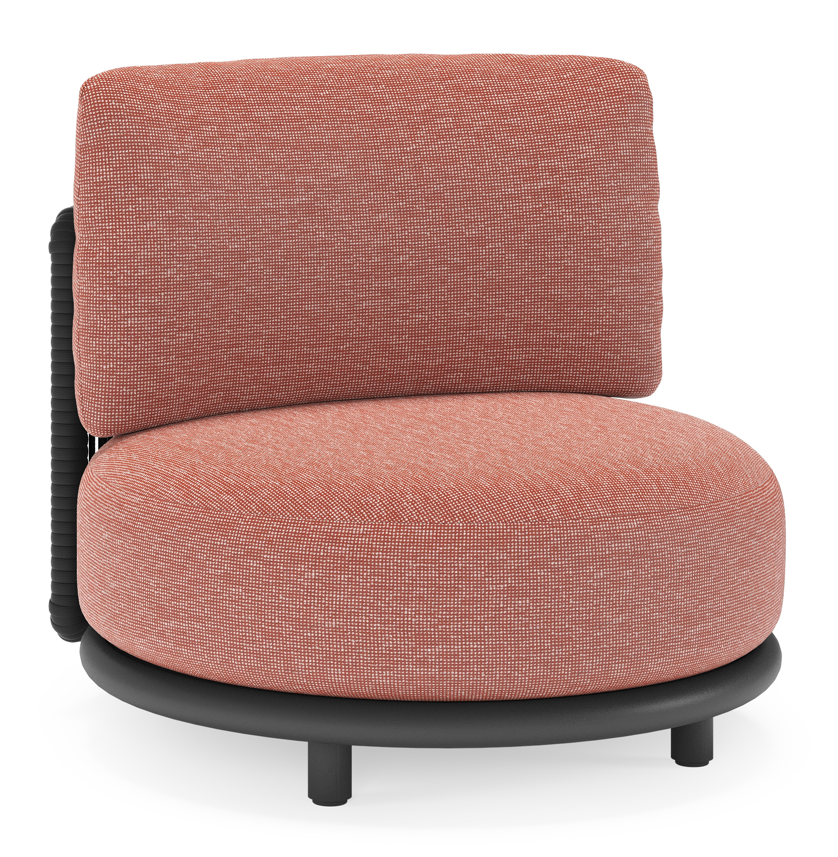 Lomano loungestoel in zwart aluminium en beige verticaal geweven luxe vlakke rope met slow alezan all weather sunbrella® luxe kussen | Exterioo tuinmeubelen