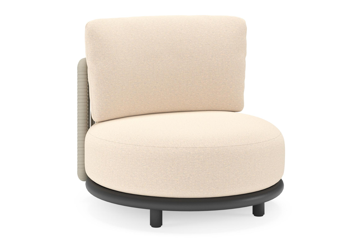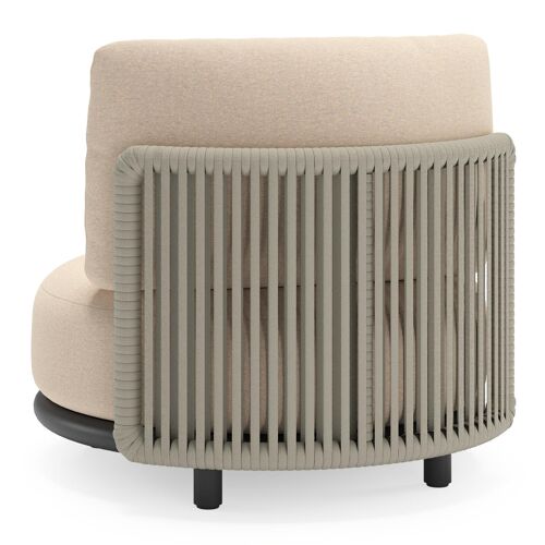 Lomano loungestoel in zwart aluminium en beige verticaal geweven luxe vlakke rope met Heritage Papyrus all weather sunbrella® luxe | Exterioo