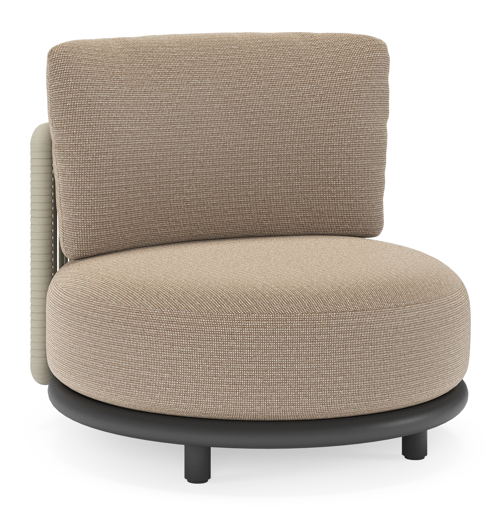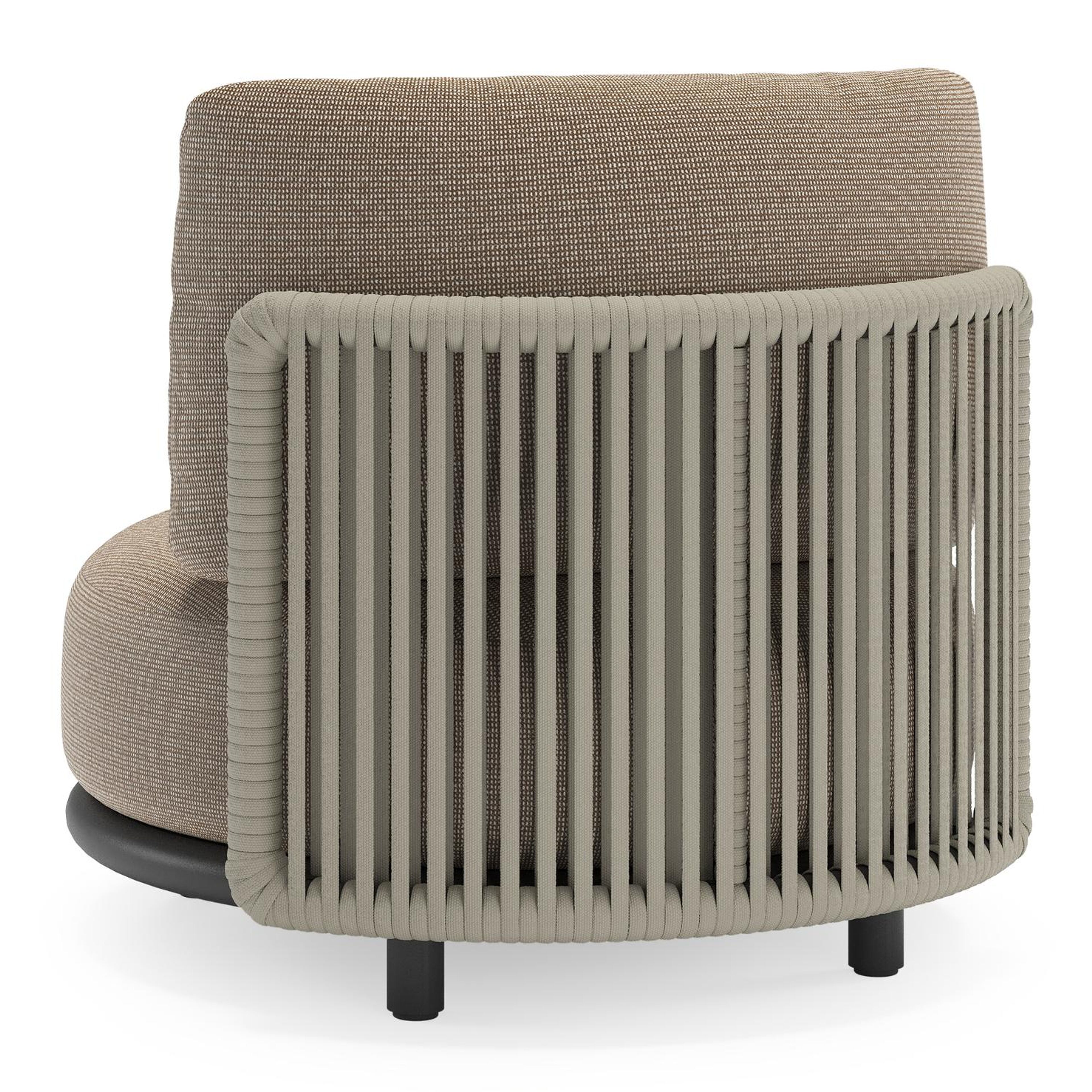 Lomano loungestoel in zwart aluminium en beige verticaal geweven luxe vlakke rope met Firenze Earth all weather solica | Exterioo tuinmeubelen