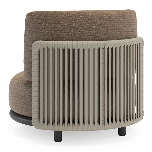 Lomano loungestoel in zwart aluminium en beige verticaal geweven luxe vlakke rope met Firenze Bamboe all weather solica | Exterioo