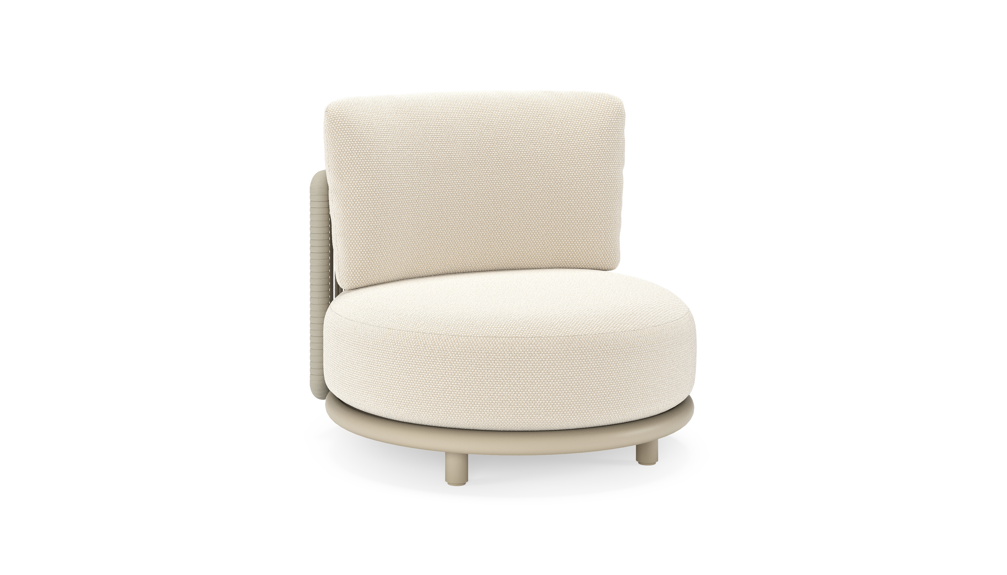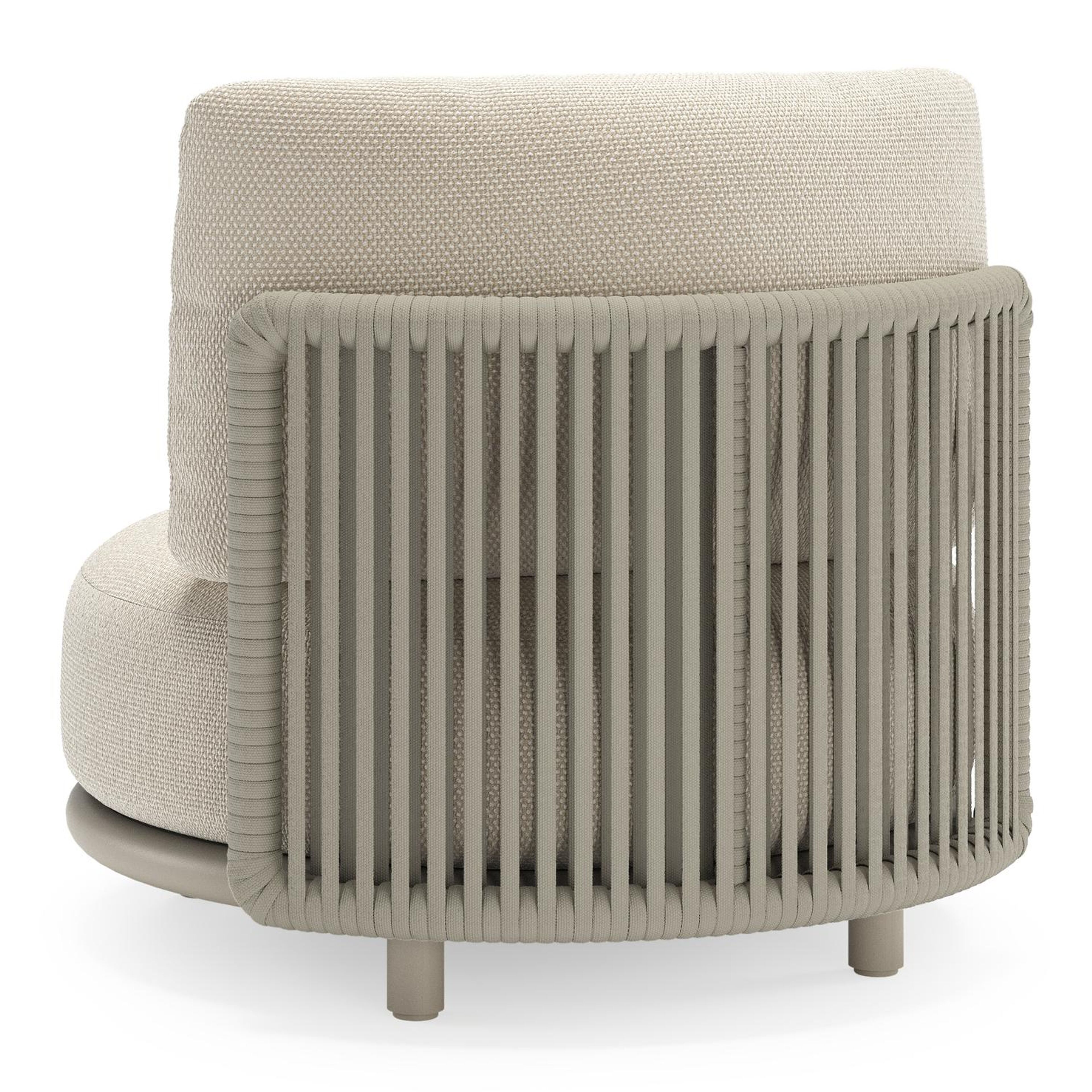 Lomano loungestoel in beige aluminium en beige verticaal geweven luxe vlakke rope met Althea Off White all weather cosytica | Exterioo tuinmeubelen