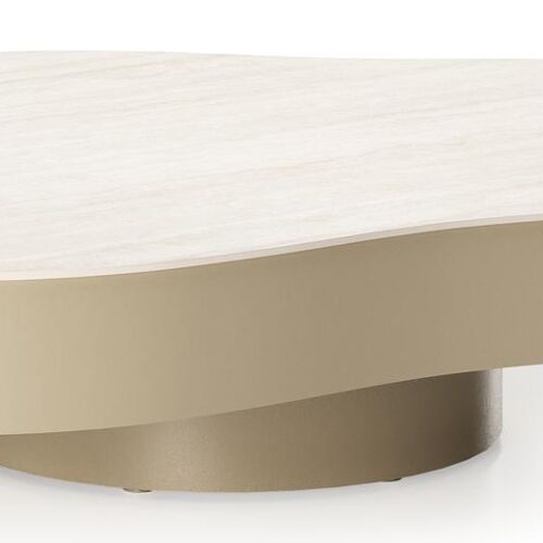 Lomano loungetafel cloud in beige aluminium en volkeramiek Travertino Bianco - L 131 x B 108 x H 25 cm | Exterioo