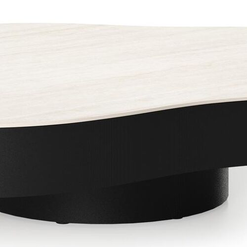 Lomano loungetafel cloud in zwart aluminium en volkeramiek Travertino Bianco - L 131 x B 108 x H 25 cm | Exterioo