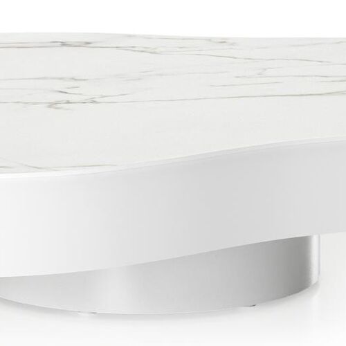 Lomano loungetafel in wit aluminium en volkeramiek Calacatta- L 131 x B 108 x H 8 cm | Exterioo